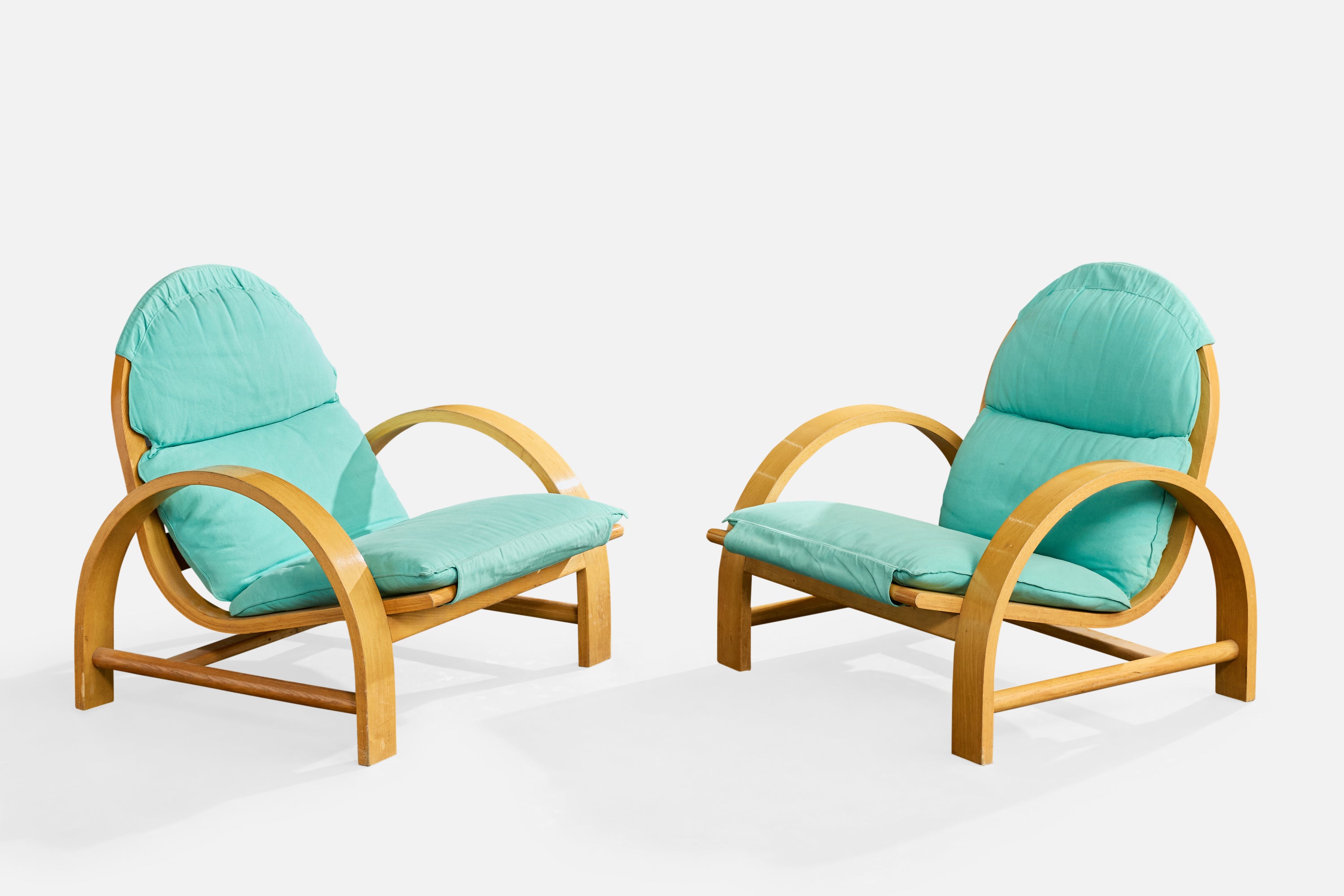 Adalberto Dal Lago, Lounge Chairs, Wood, Fabric, Italy, 1970s