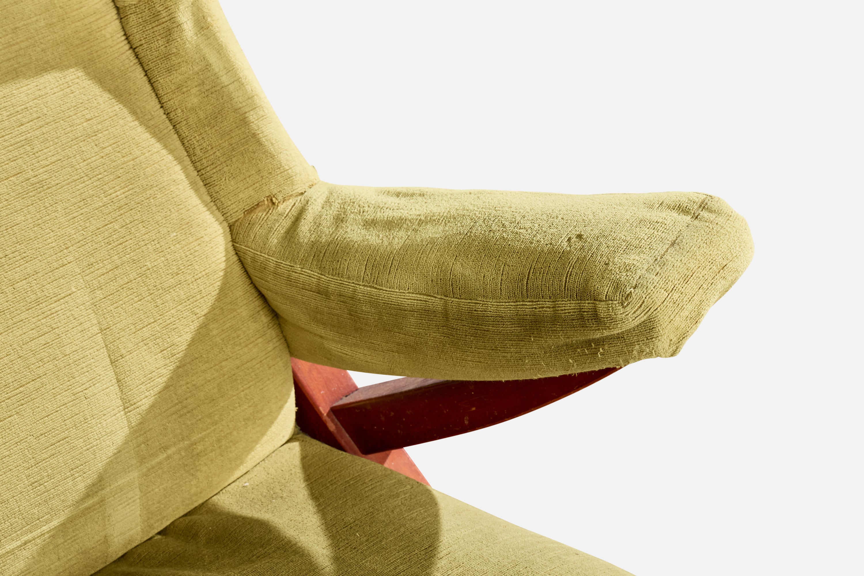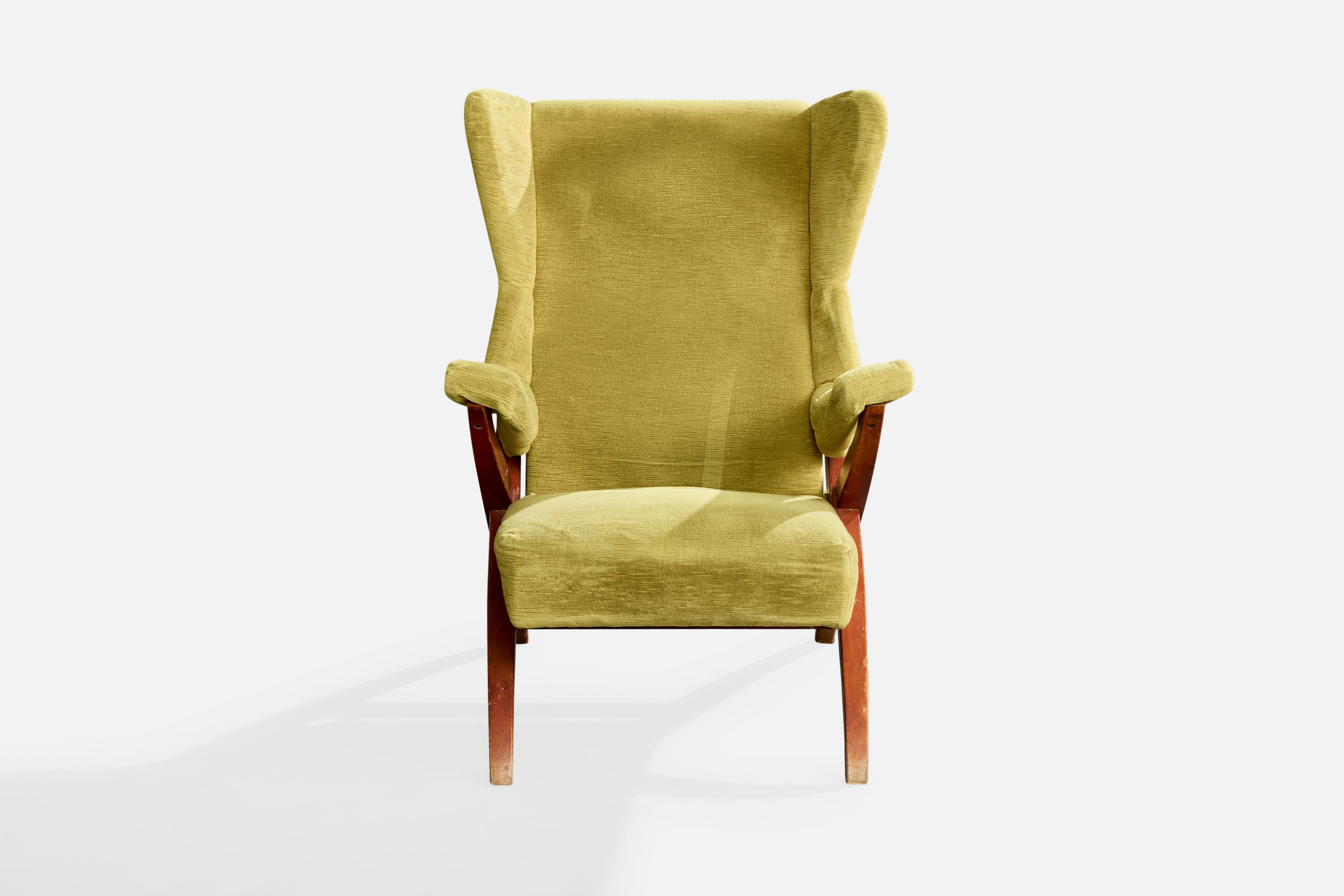 A green velvet and wood lounge chair, Model Fiorenza, designed by Franco Albini and produced by Arflex, Italy, c. 1950s.