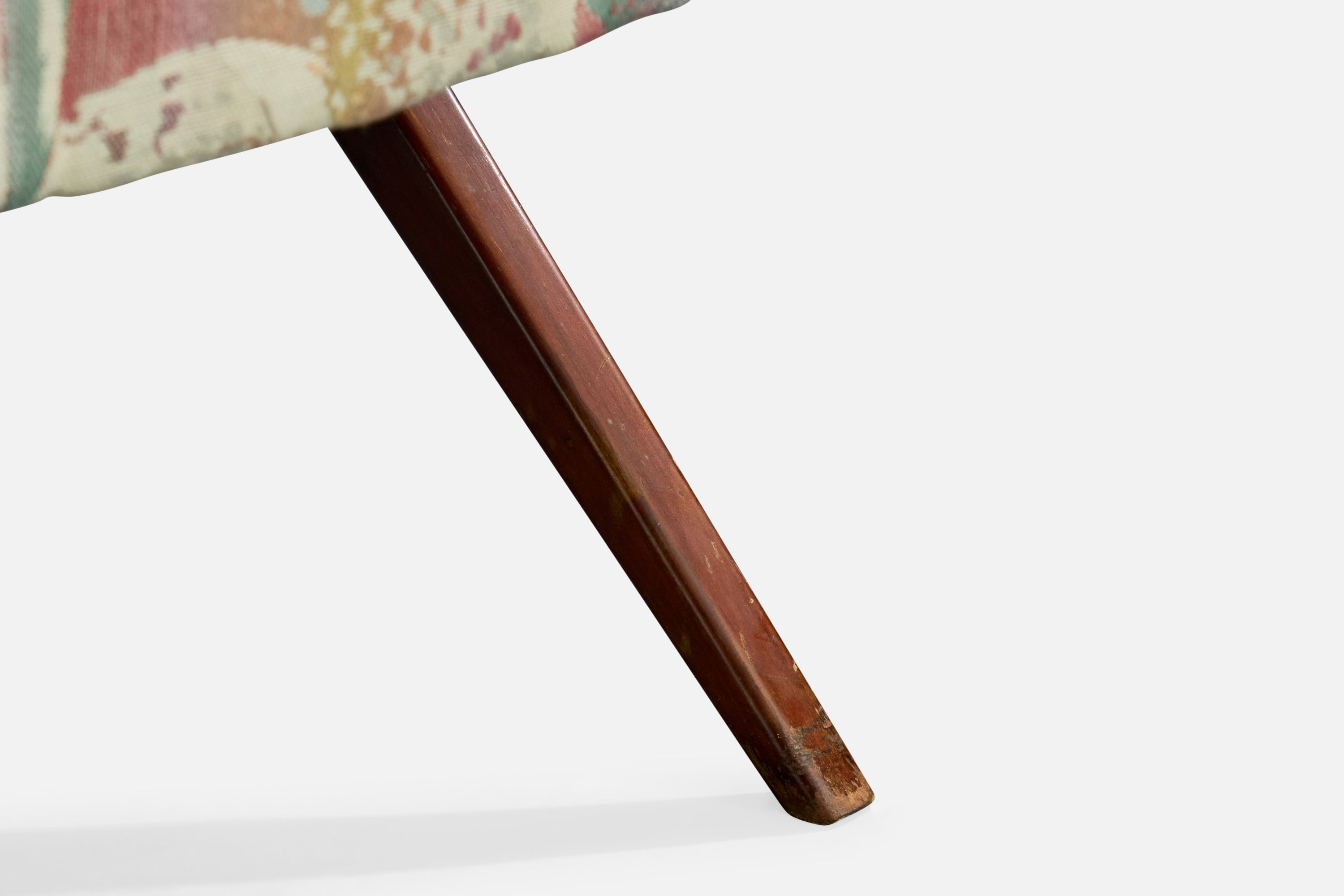 A wood and fabric lounge chair, model 432, designed by Franco Albini and produced by Cassina, Italy, c. 1950s.