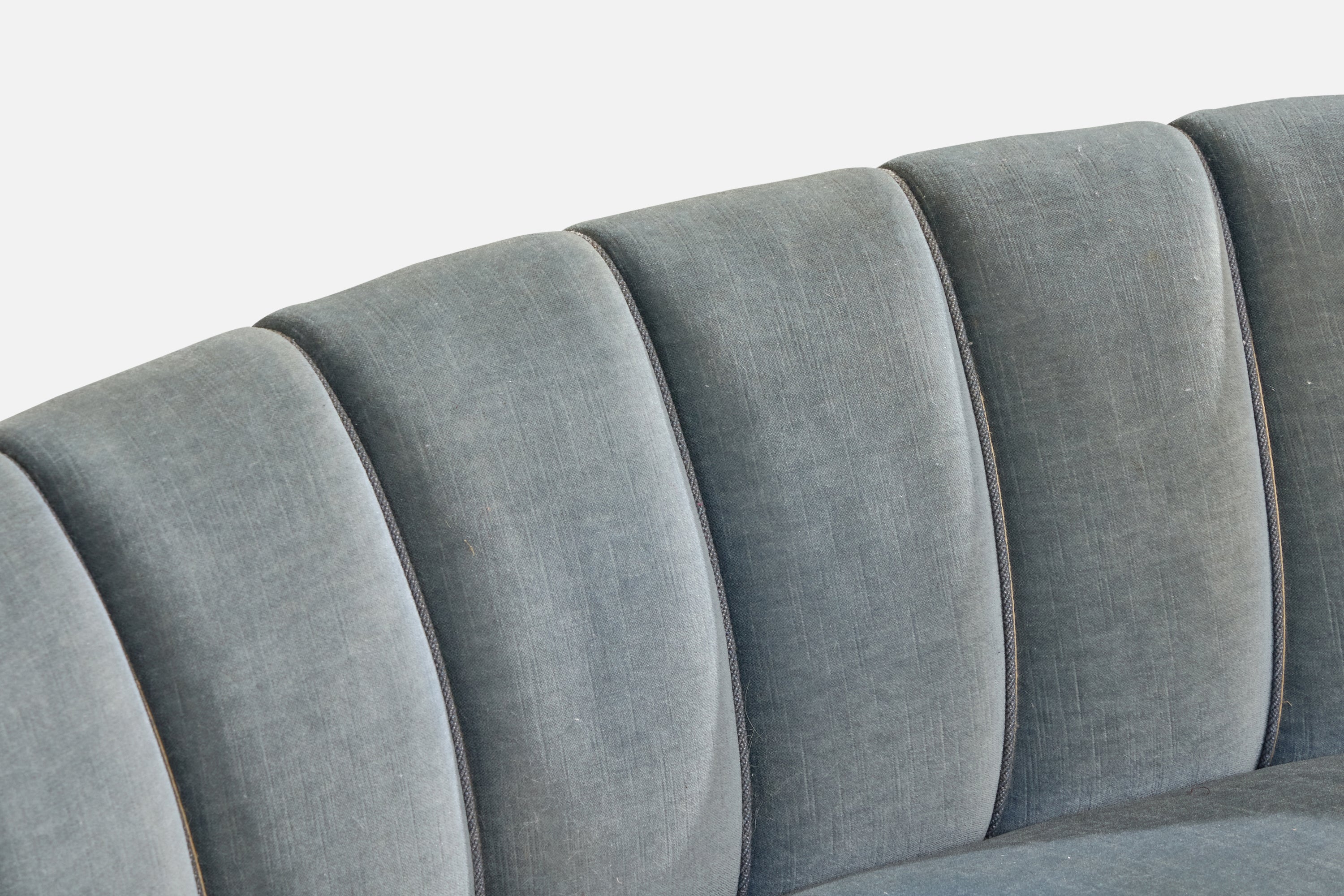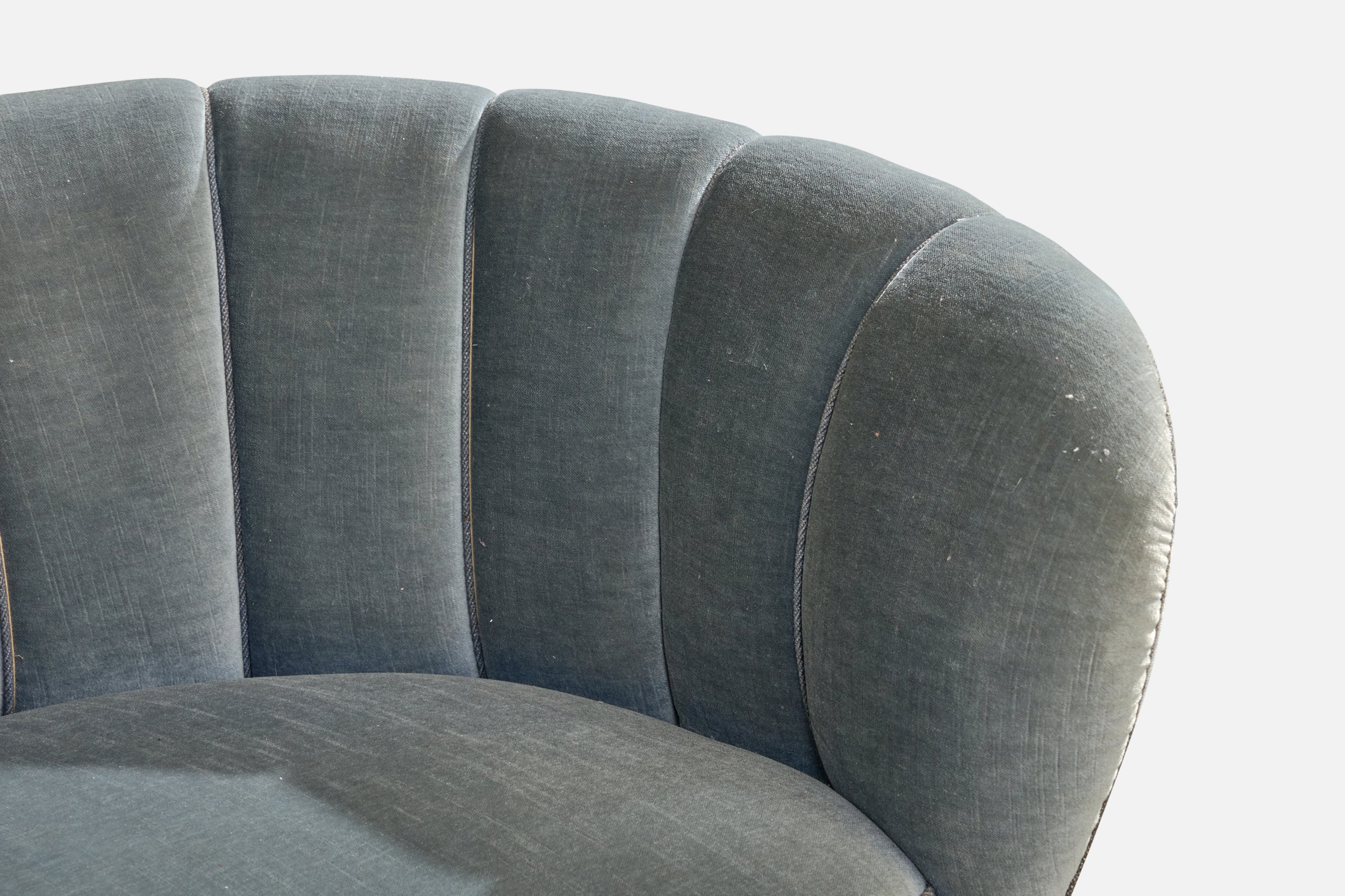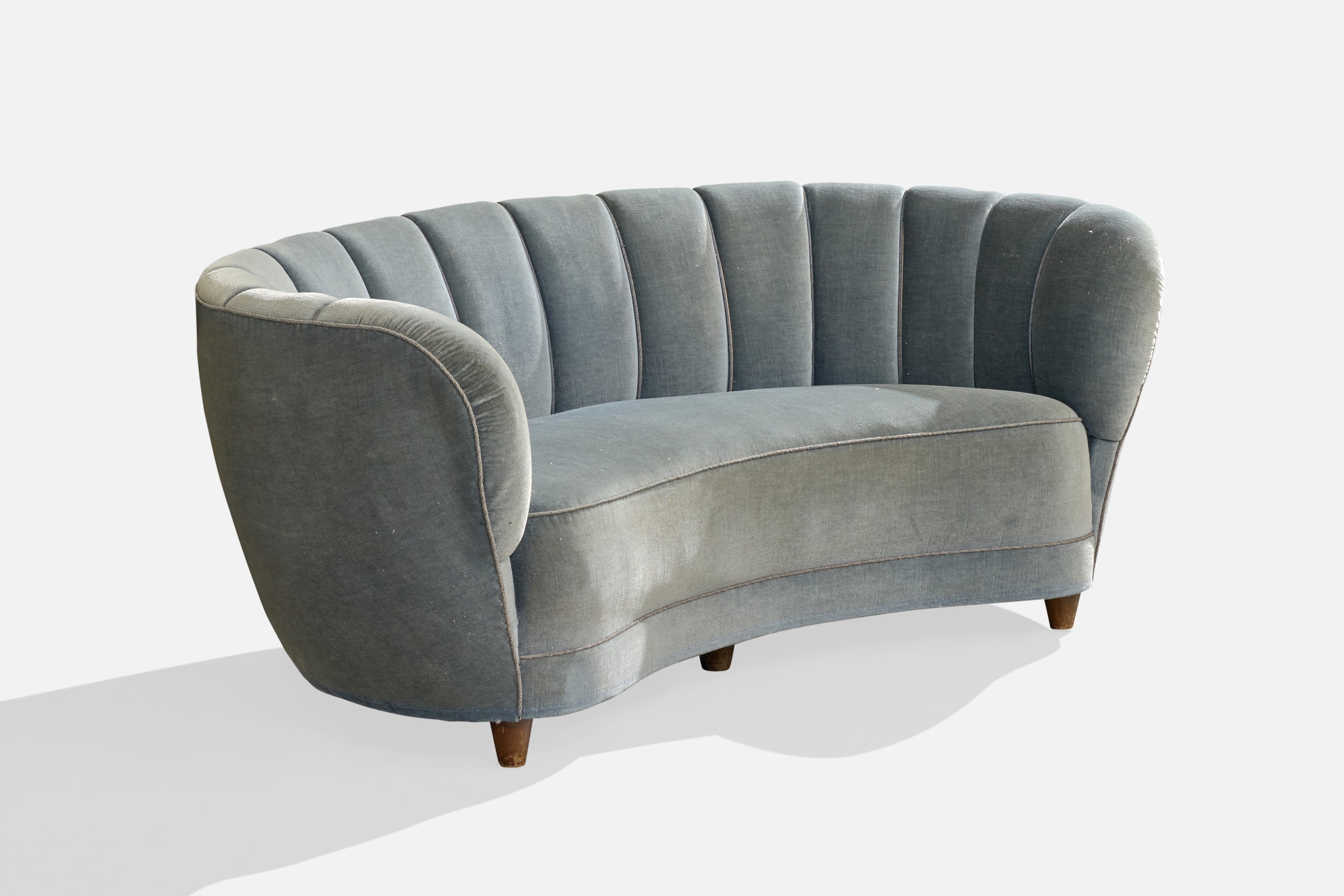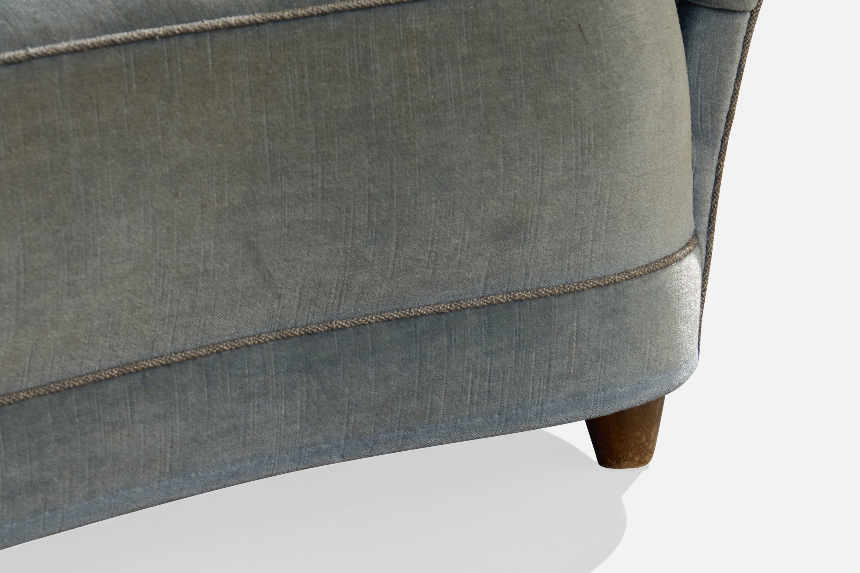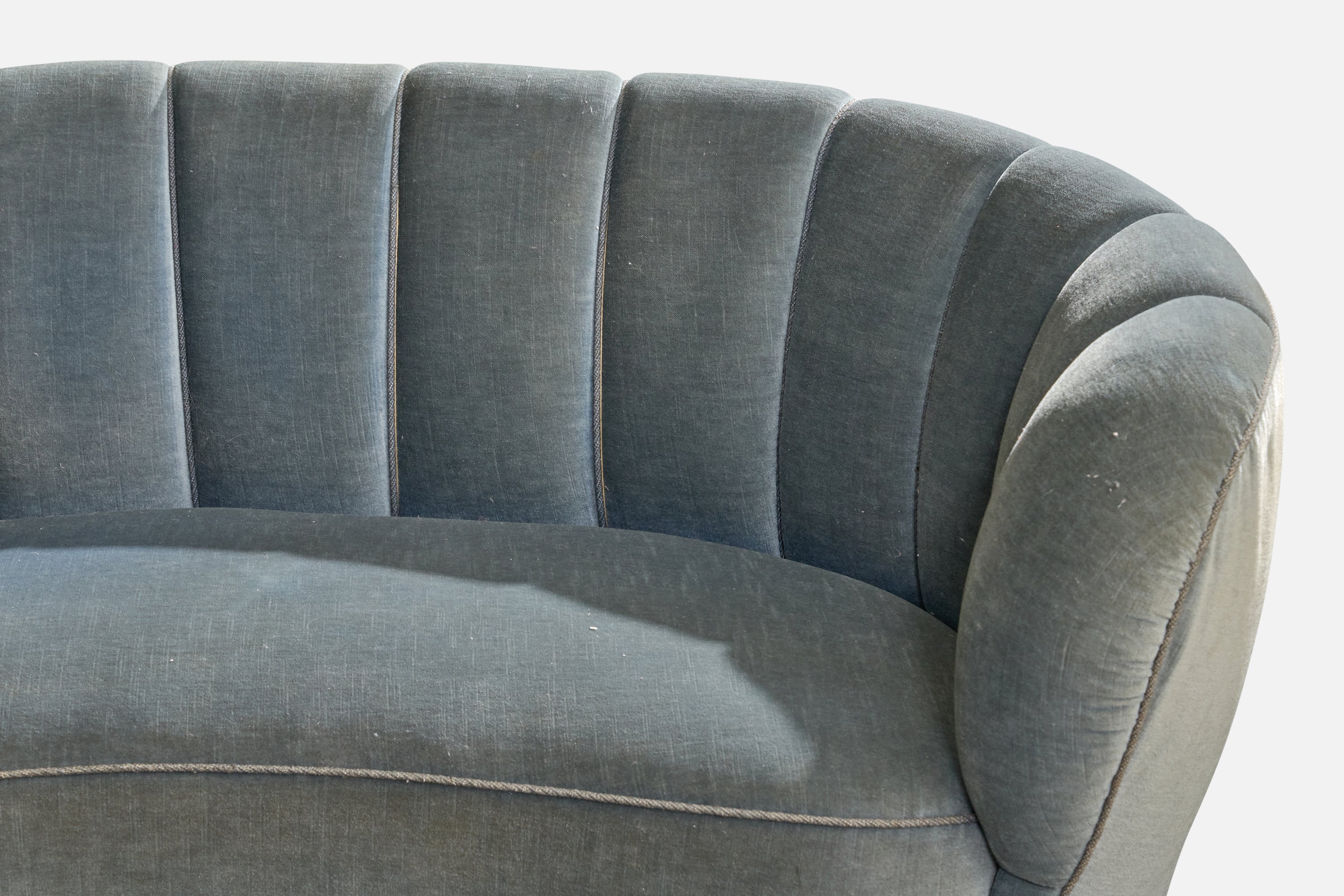 A blue velvet and wood sofa designed and produced in Denmark, c. 1940s.
