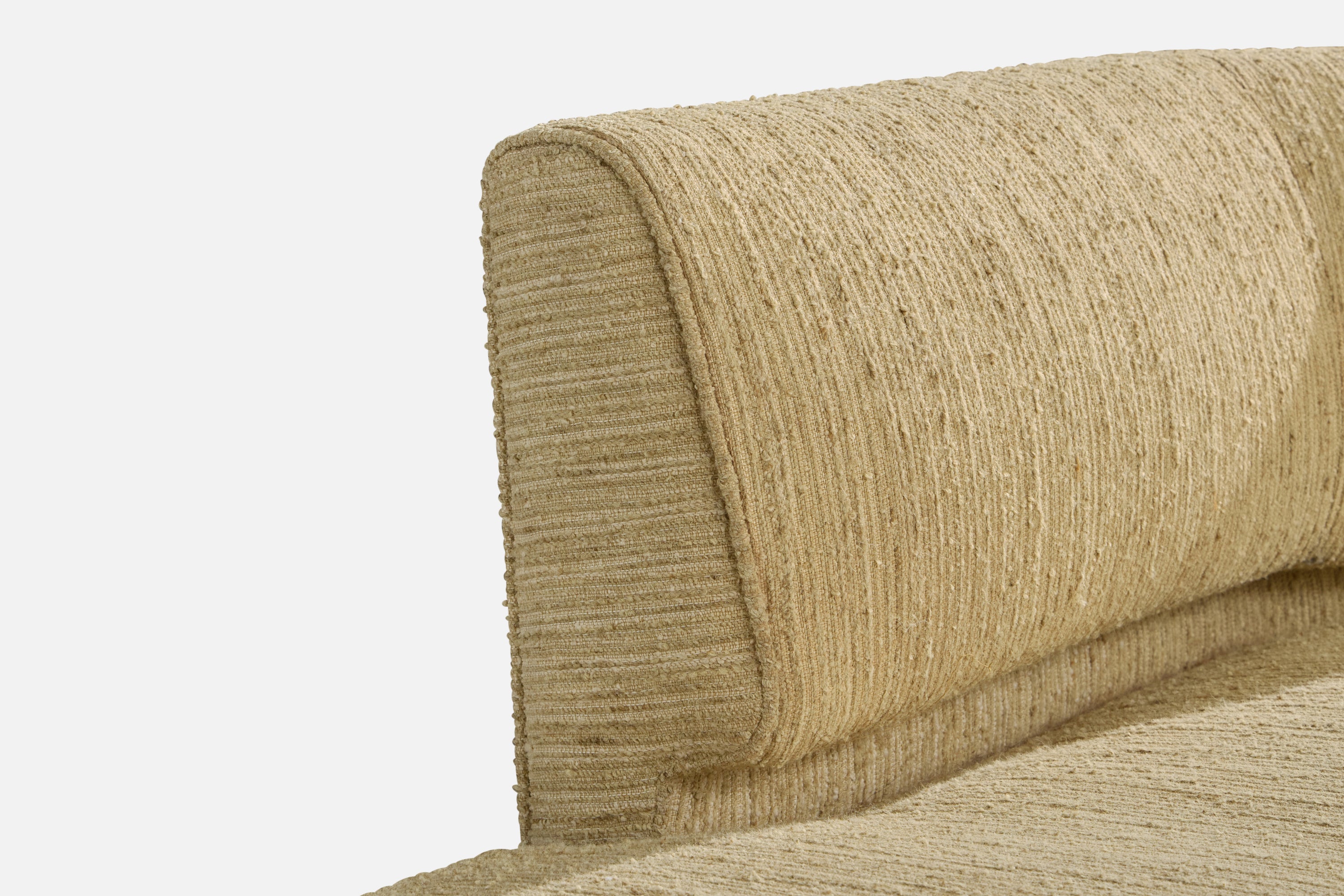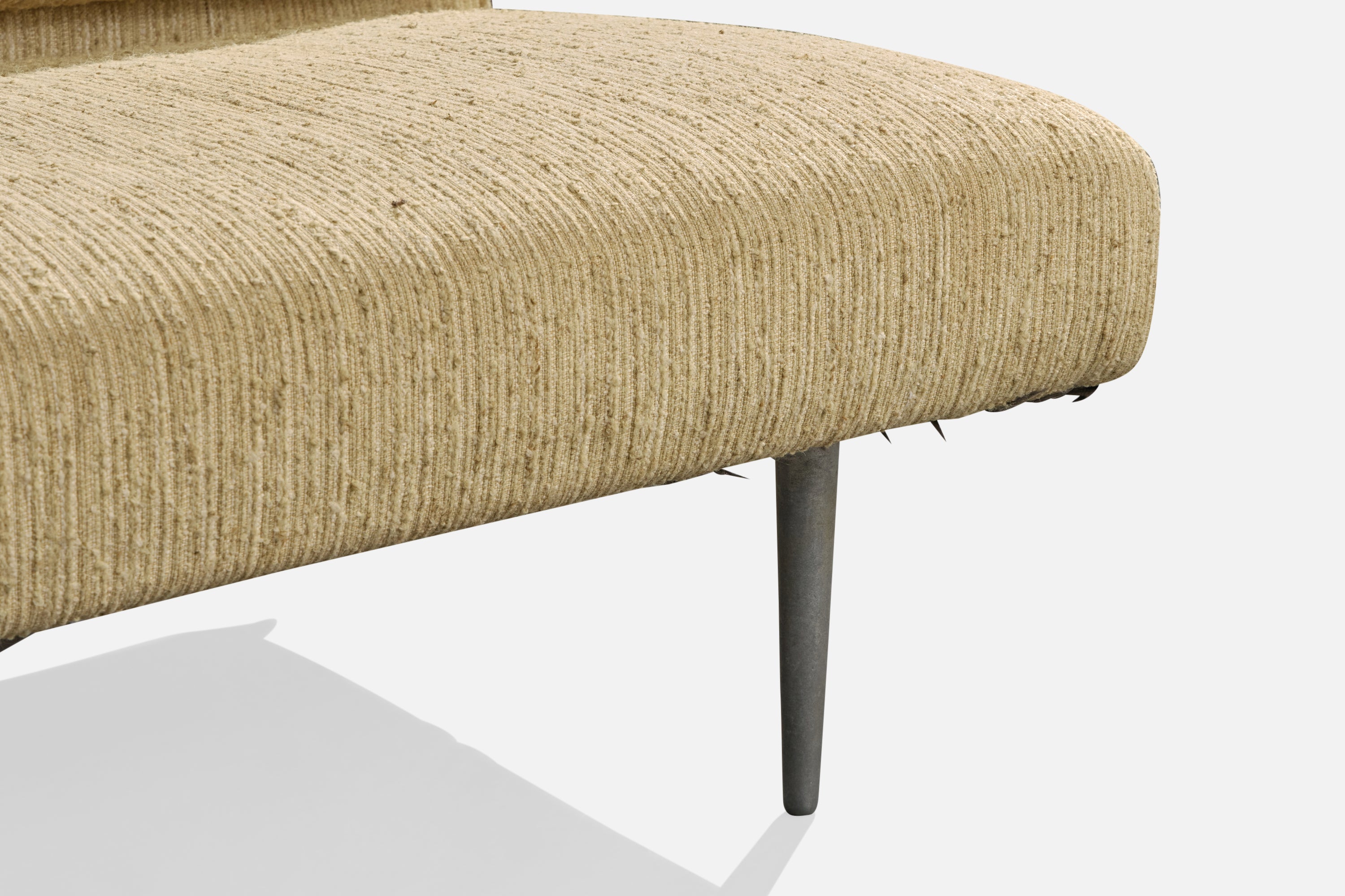 A beige fabric and aluminum sofa designed by Edward Wormley and produced by Dunbar, USA, c. 1950s.