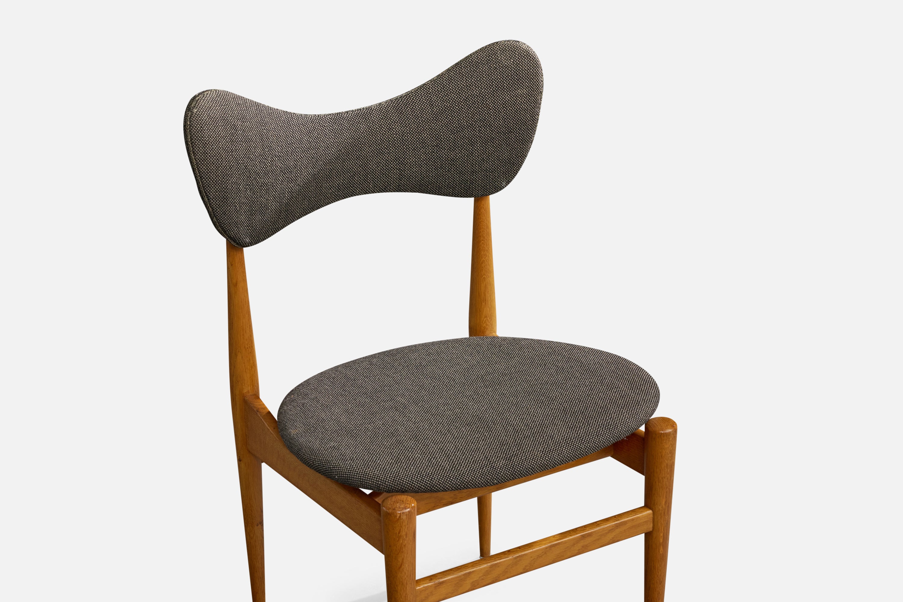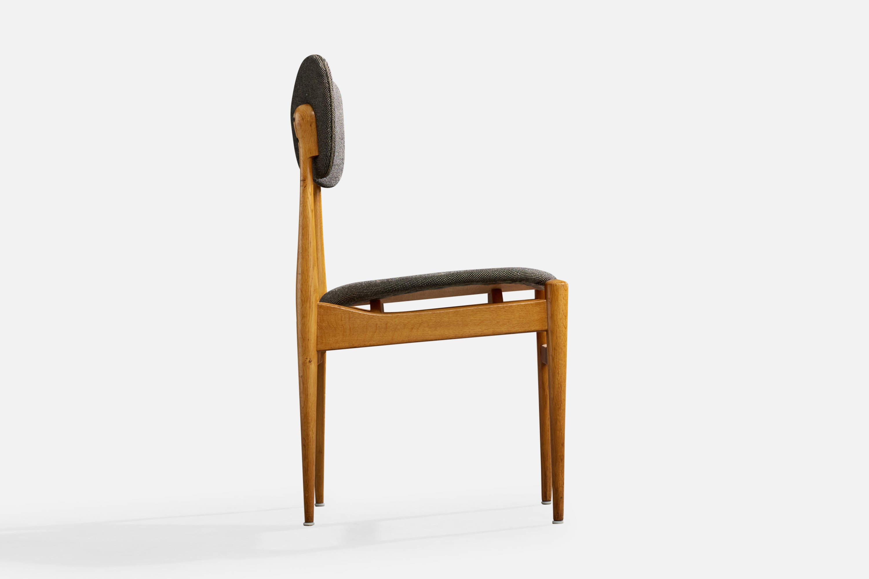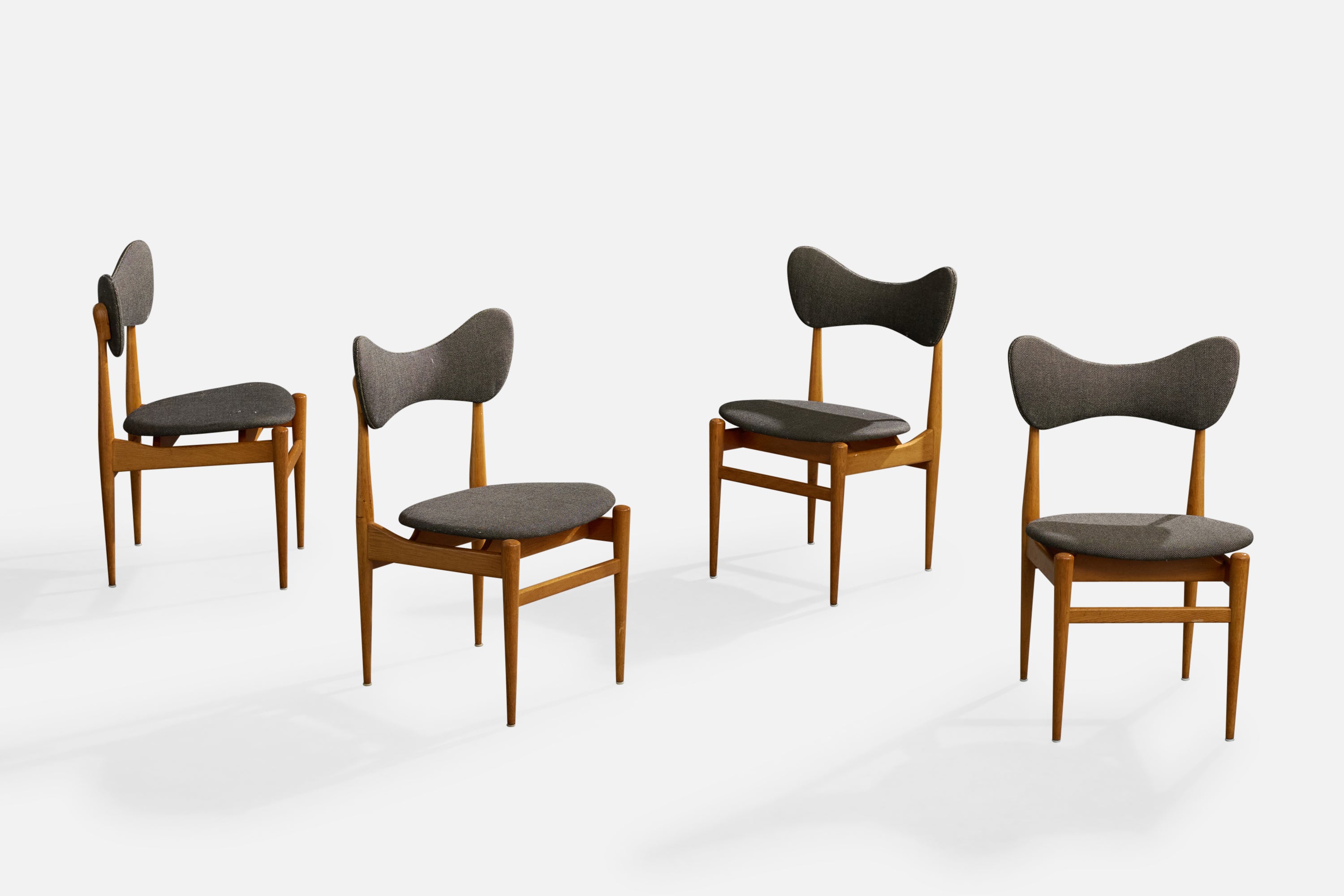 A set of four oak and dark-grey fabric dining room chairs or side chairs designed by Inge & Luciano Rubino and produced by Sorø Stolefabrik, Denmark, 1960s.