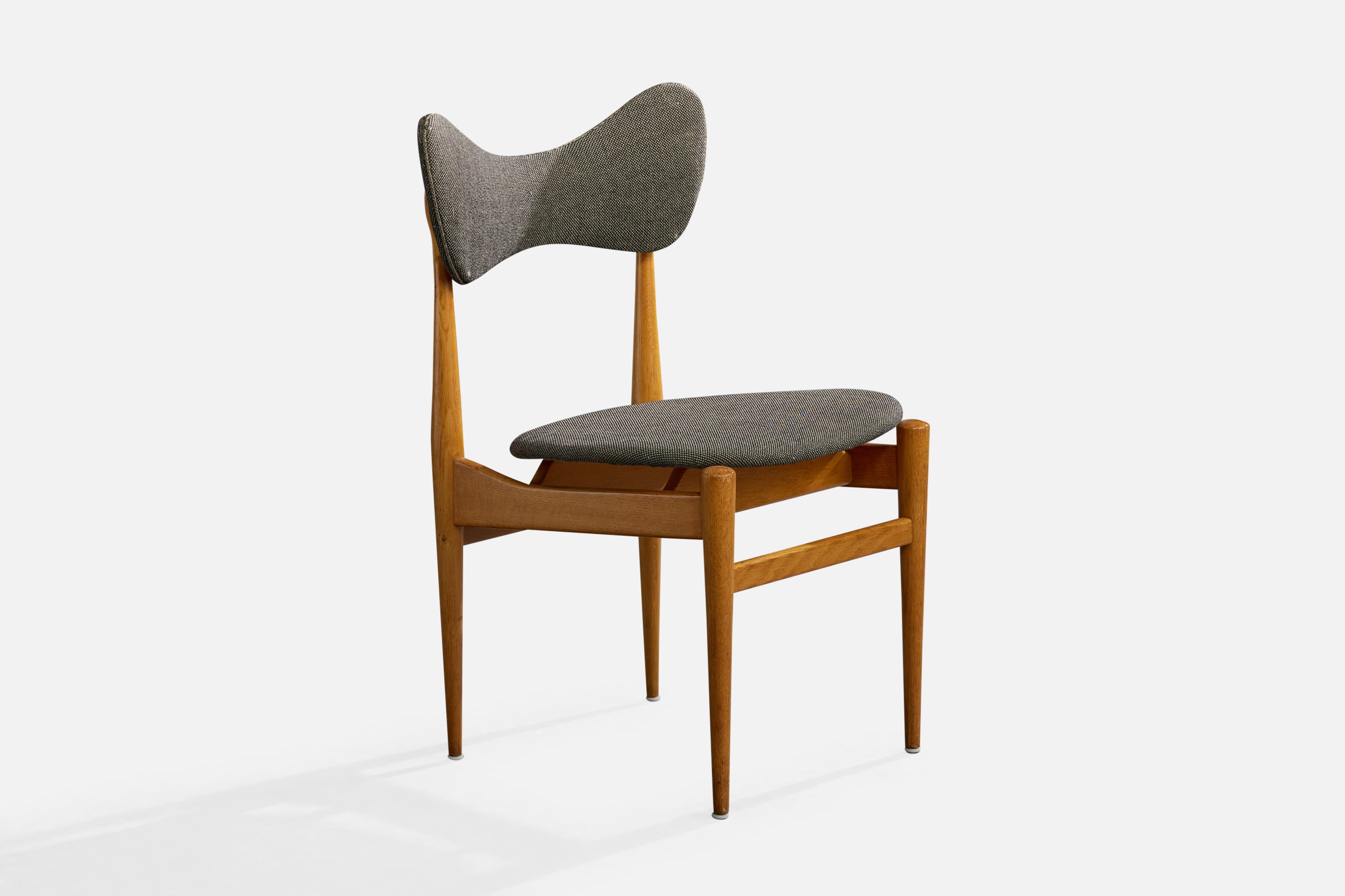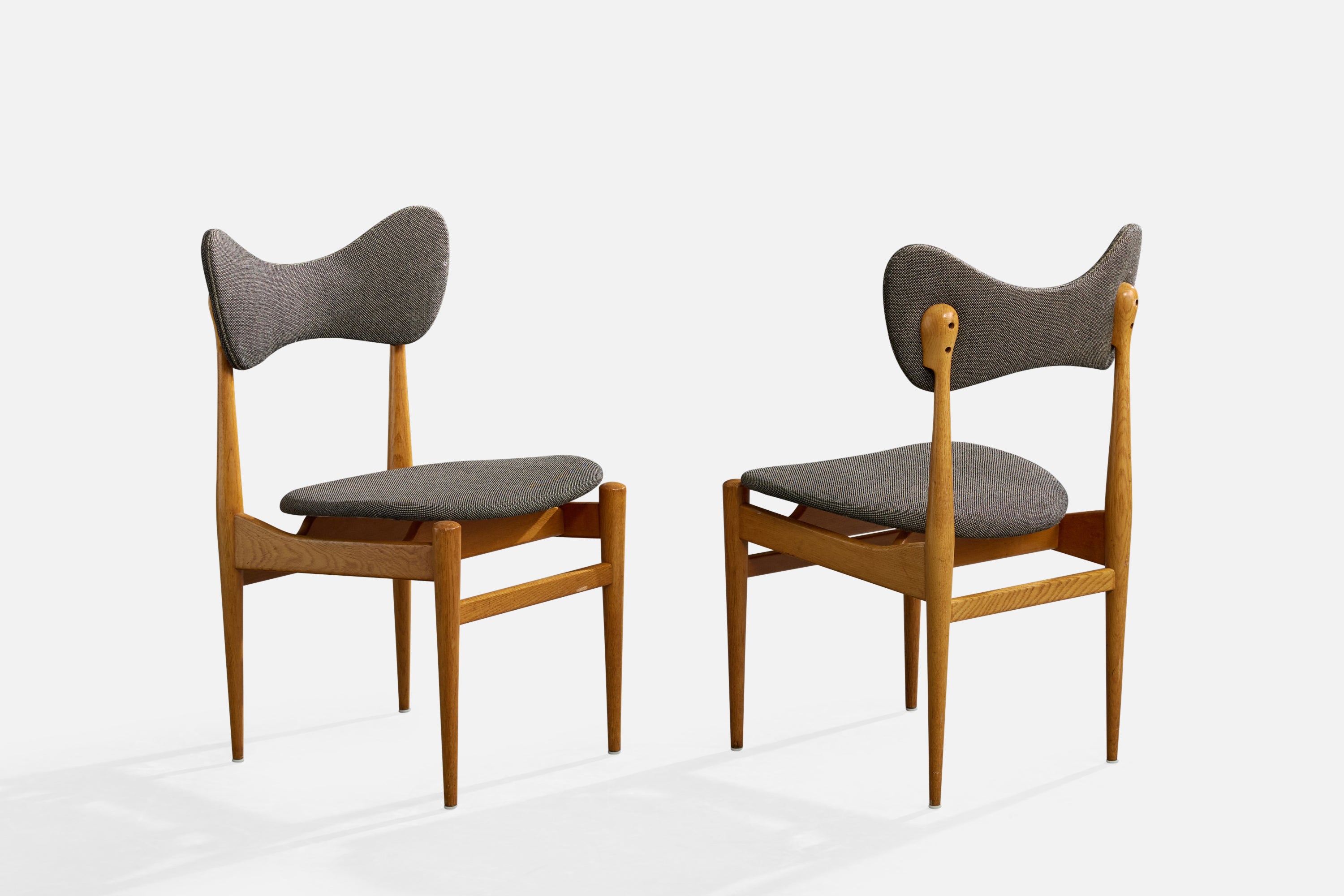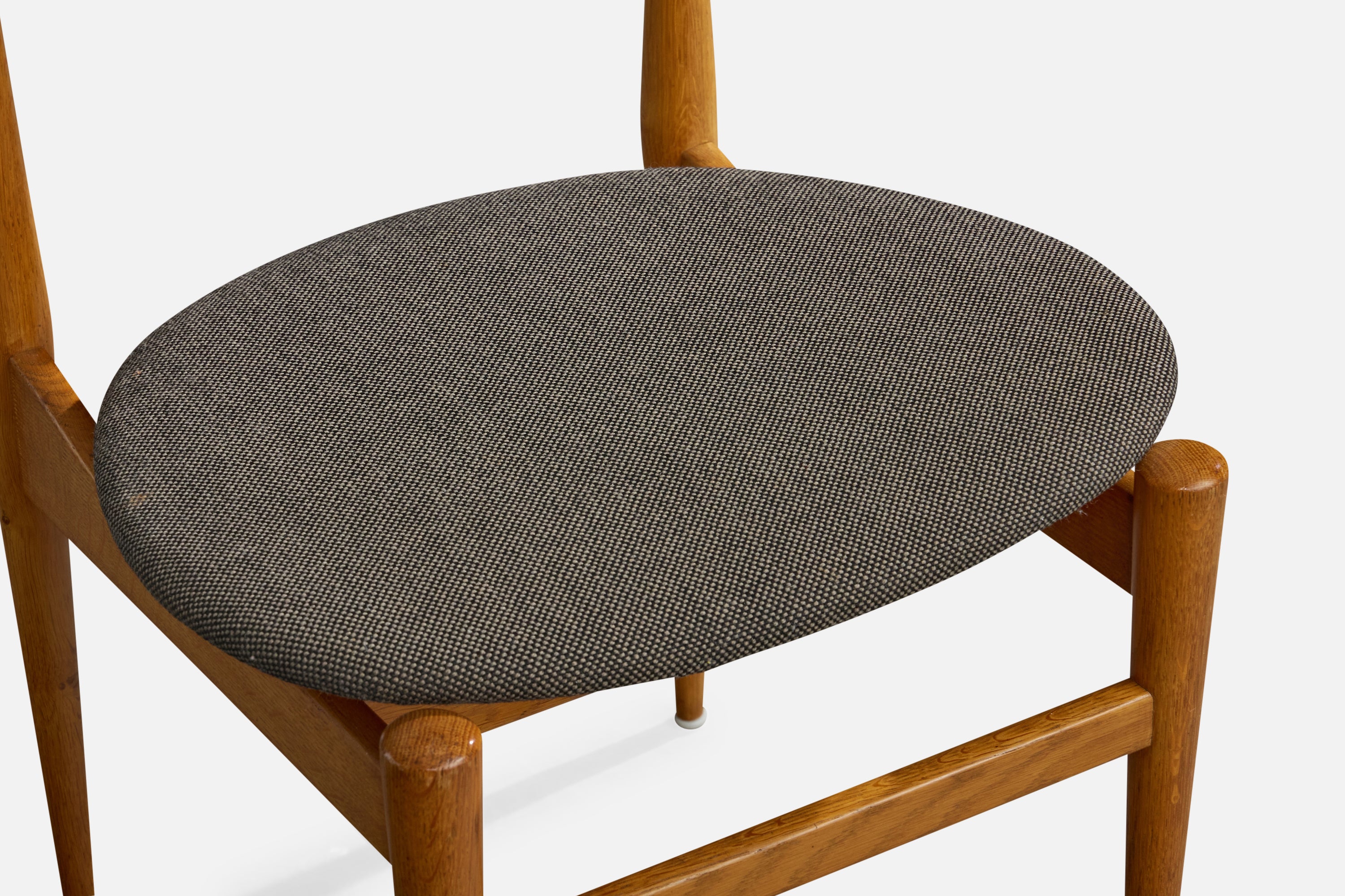 A set of four oak and dark-grey fabric dining room chairs or side chairs designed by Inge & Luciano Rubino and produced by Sorø Stolefabrik, Denmark, 1960s.