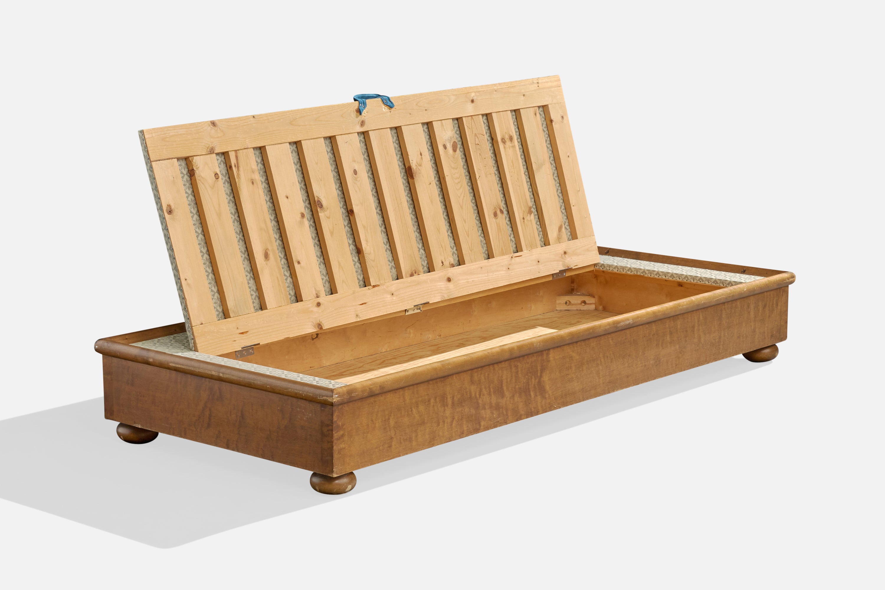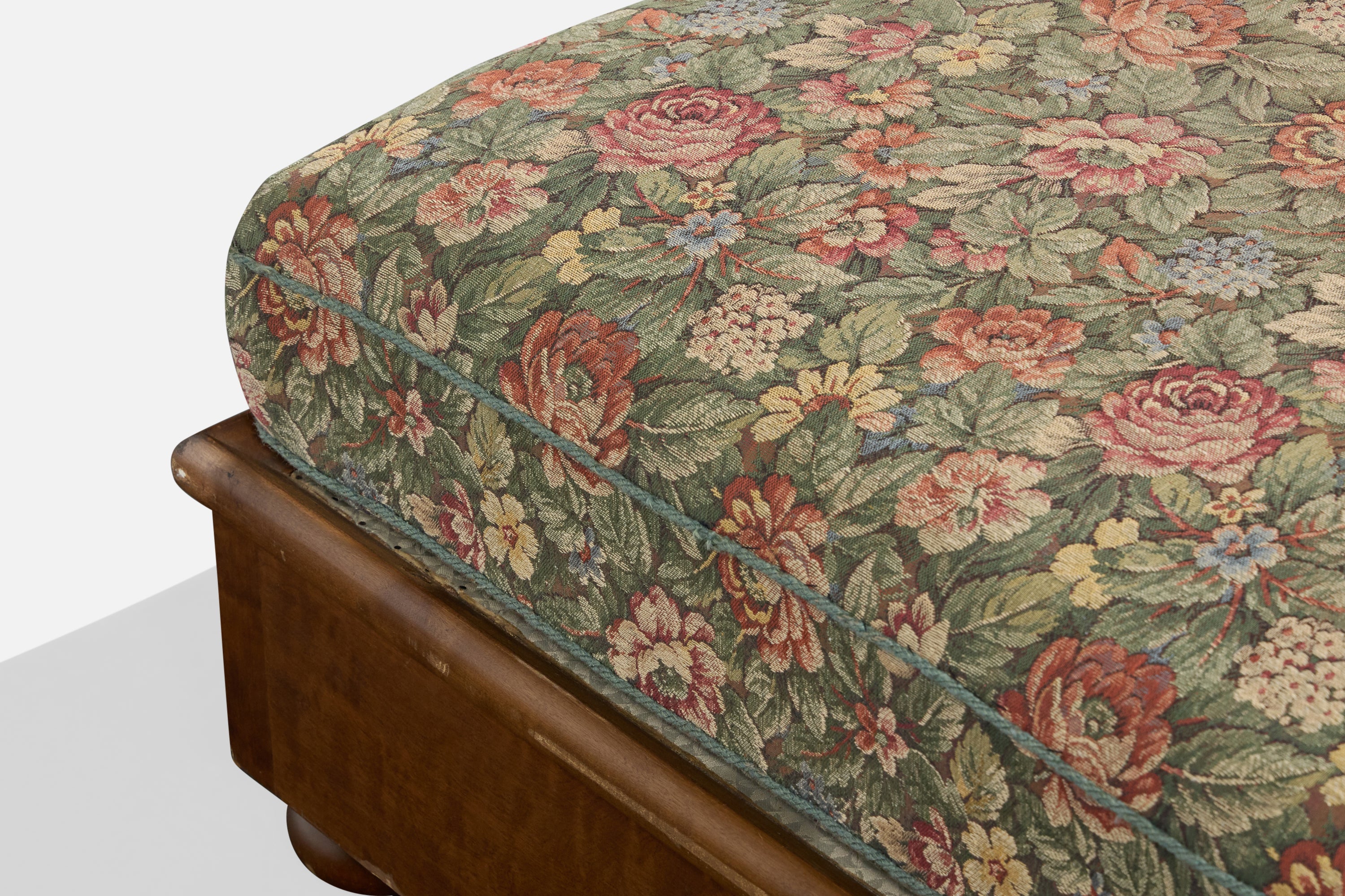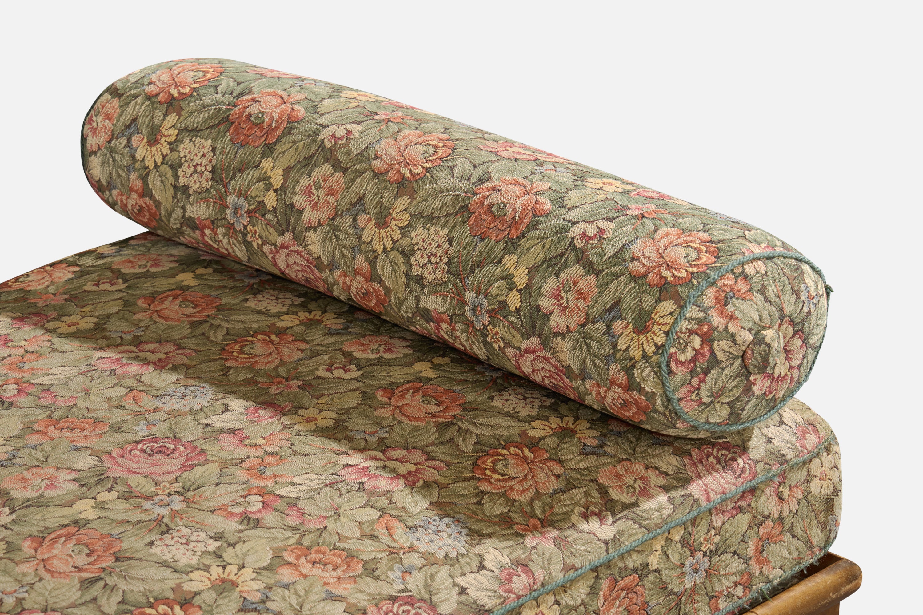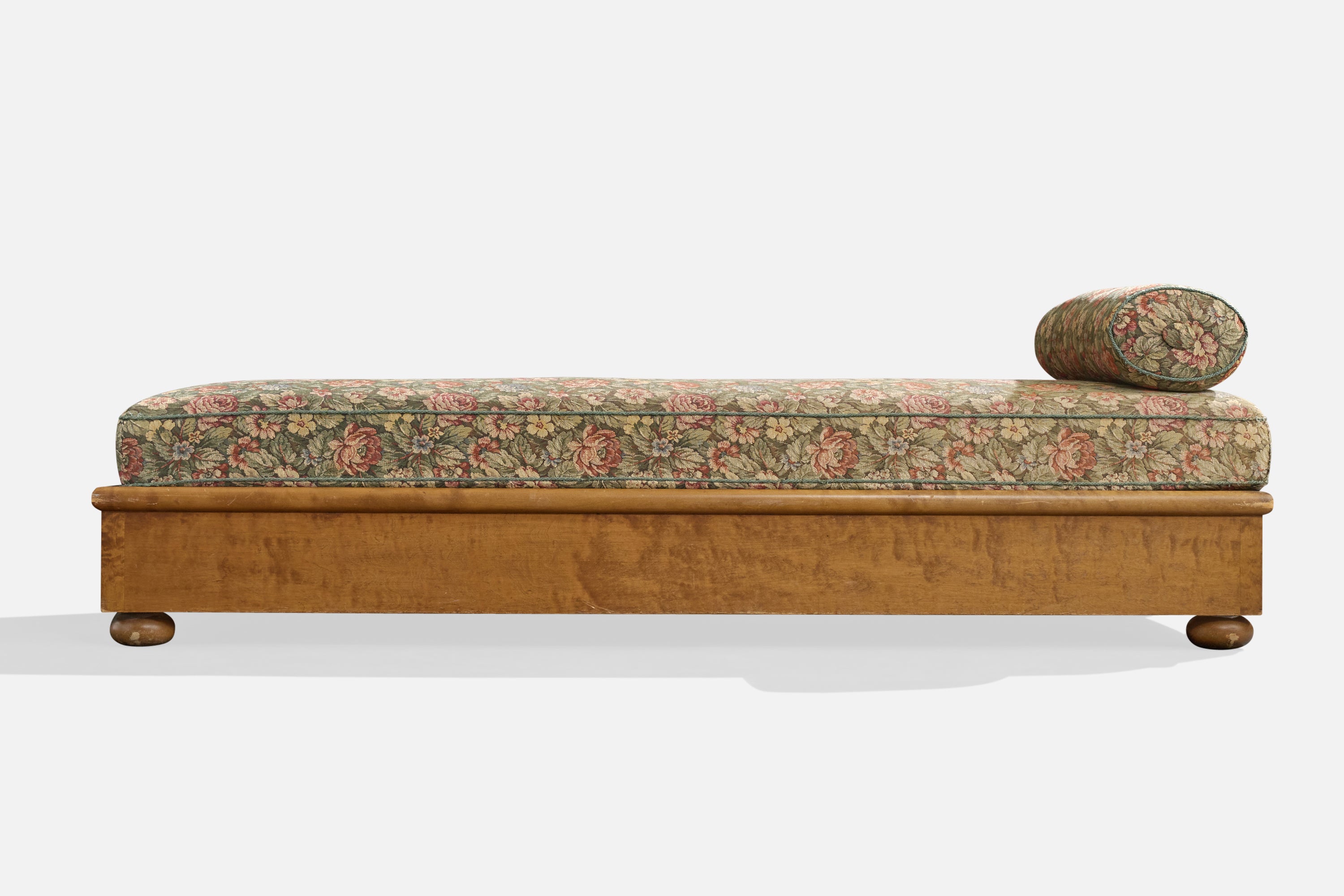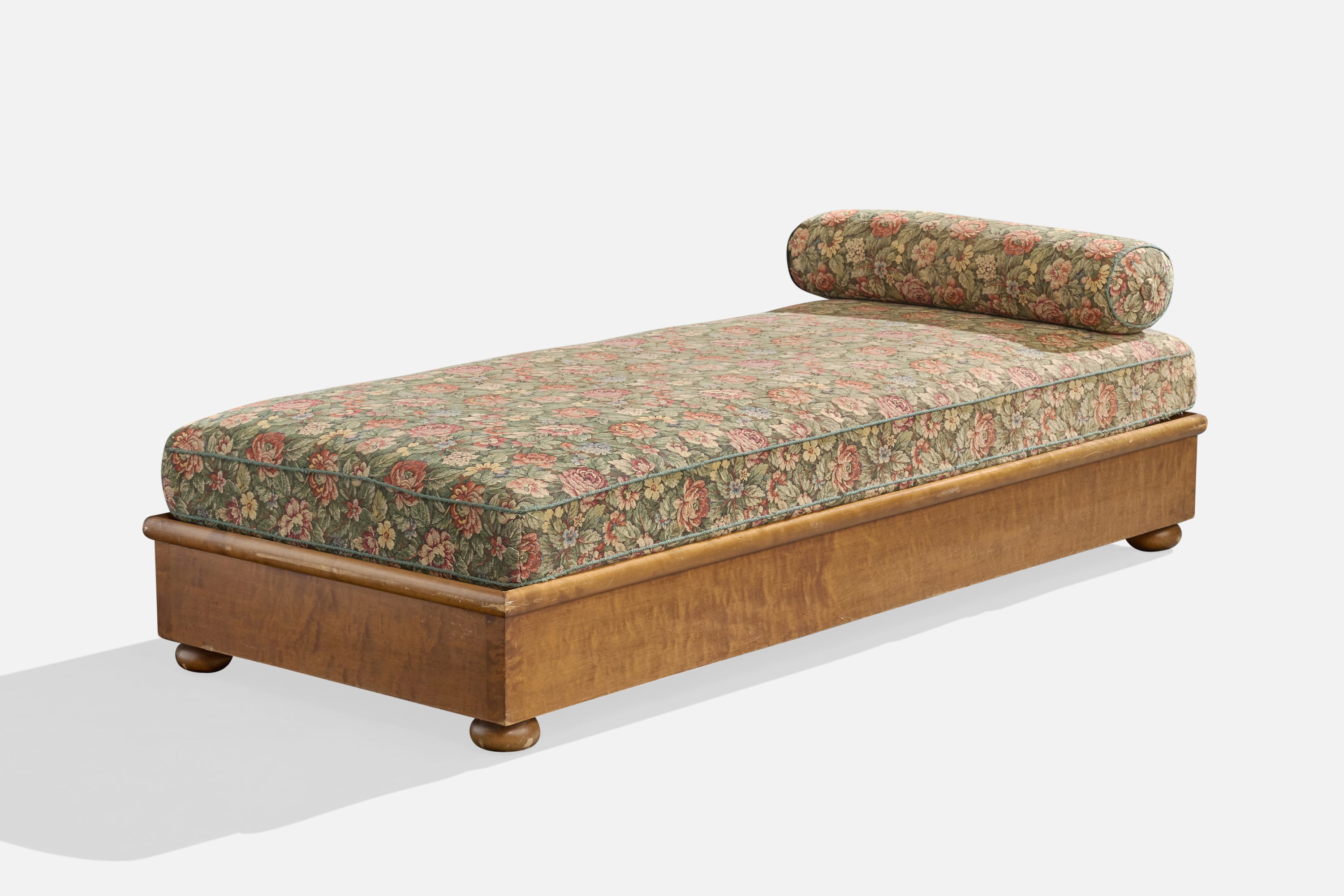 A floral-printed fabric and stained birch daybed designed and produced in Sweden, c. 1930s.