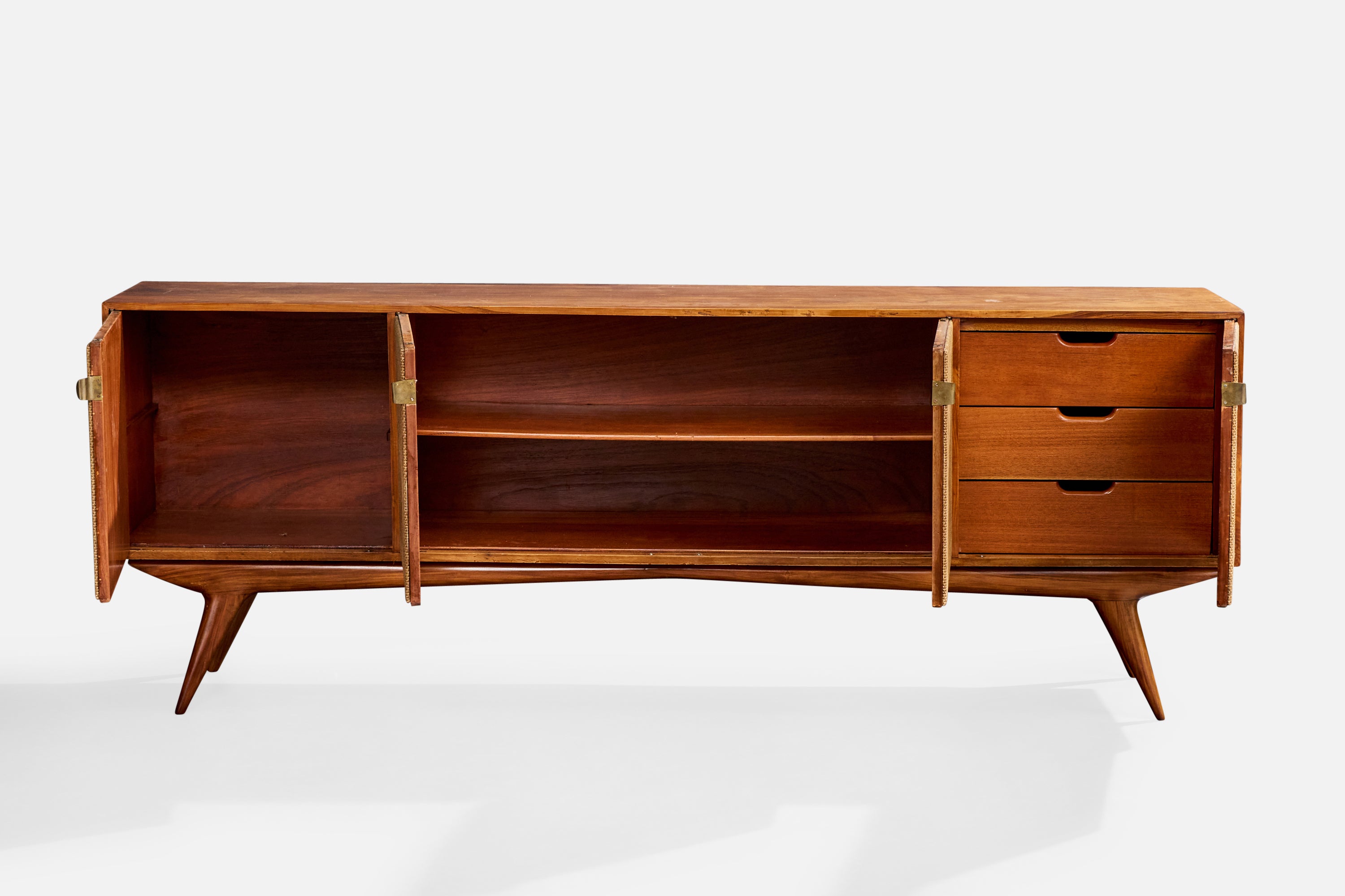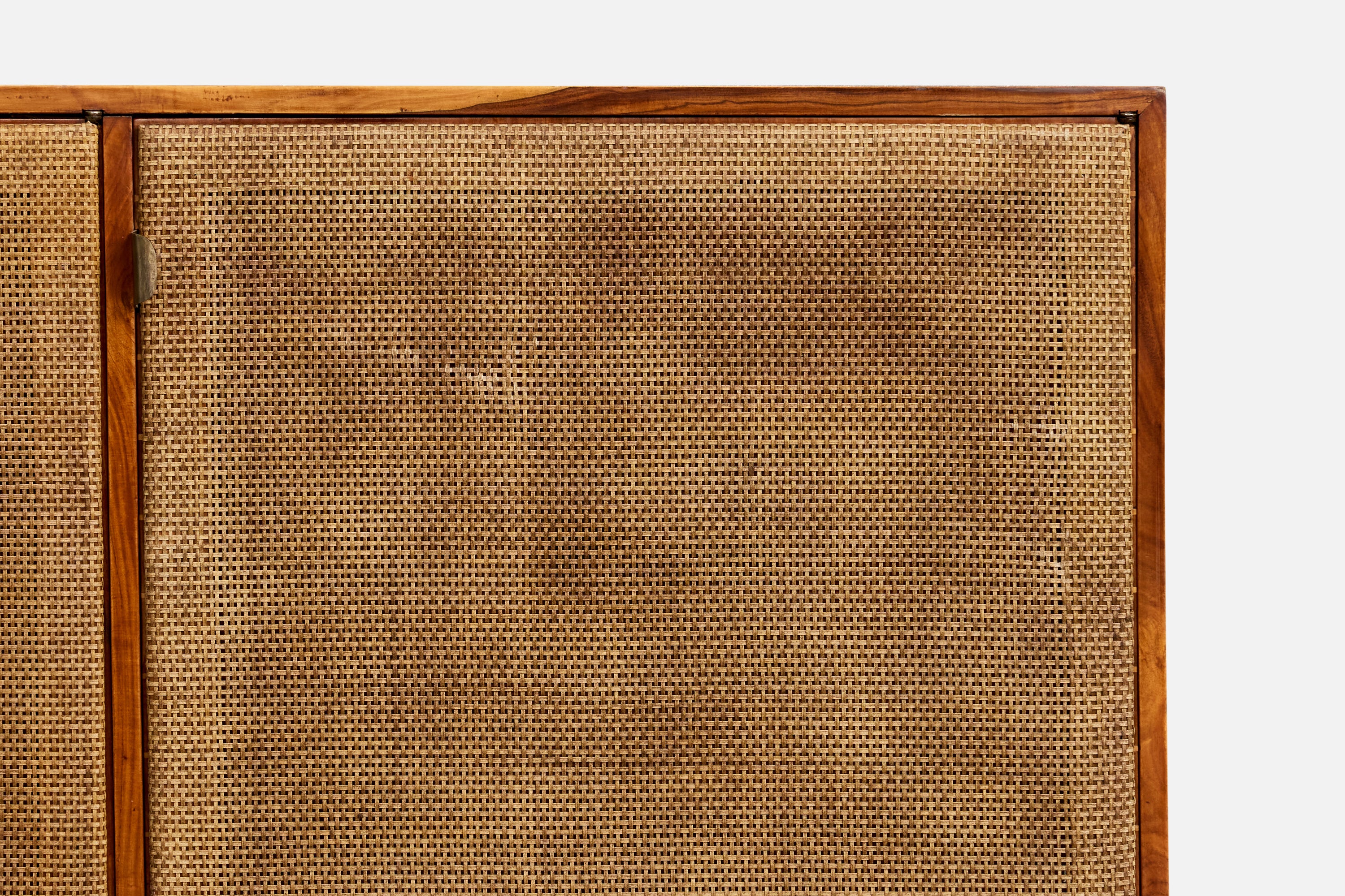 A sizable wood, cane and brass sideboard or cabinet designed and produced in Brazil, c. 1950s.