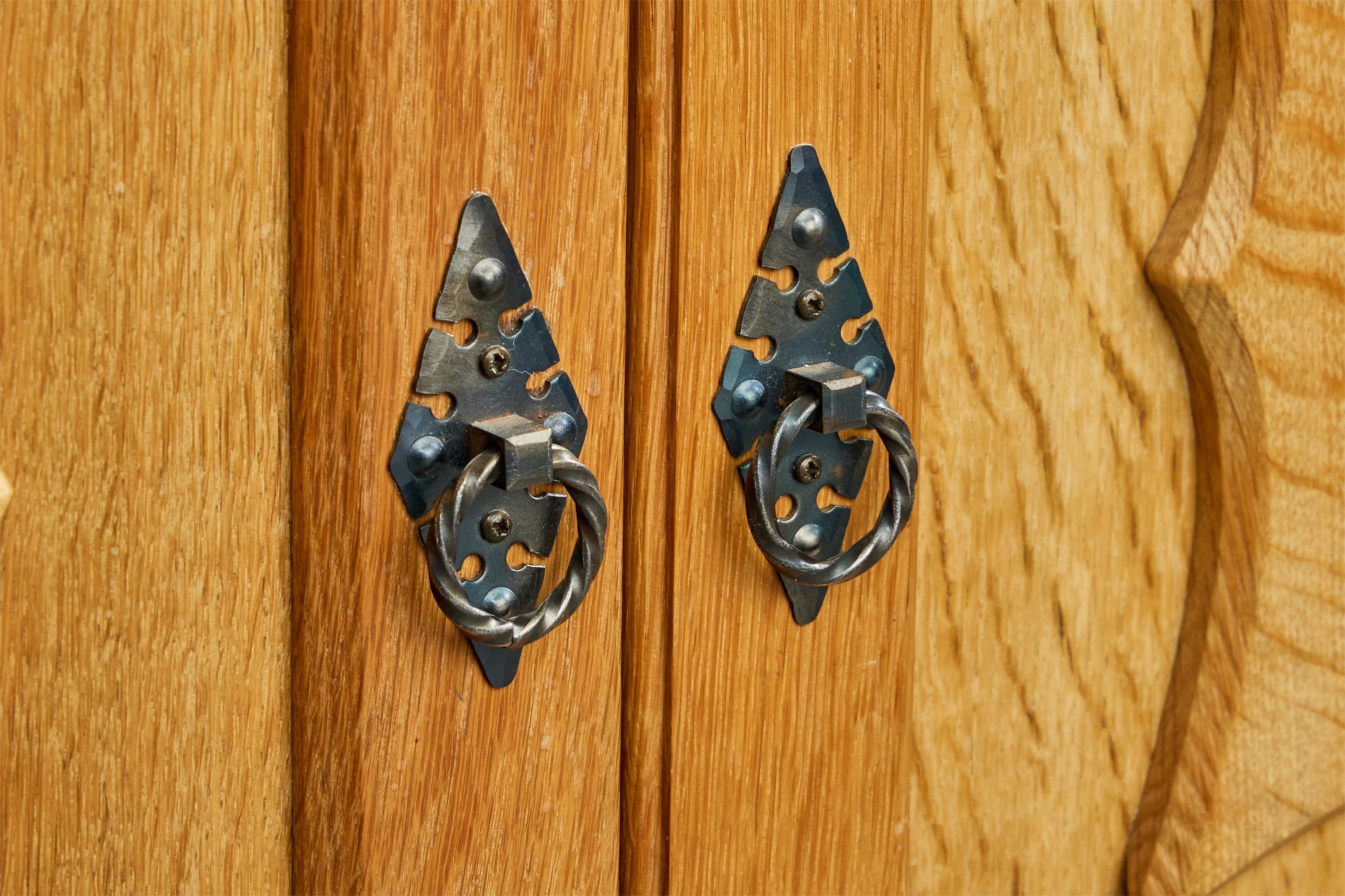 Danish Designer, Cabinets, Oak, Iron, Denmark, 1960s