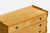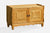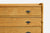 Mild natural wood cracking on top surfaces of two with doors. Other one with drawers has moderate natural wood cracking on top surface; drawer face edges have moderate imperfections. Minor interior wear in all three pieces. Nailheads visible in top back trim.