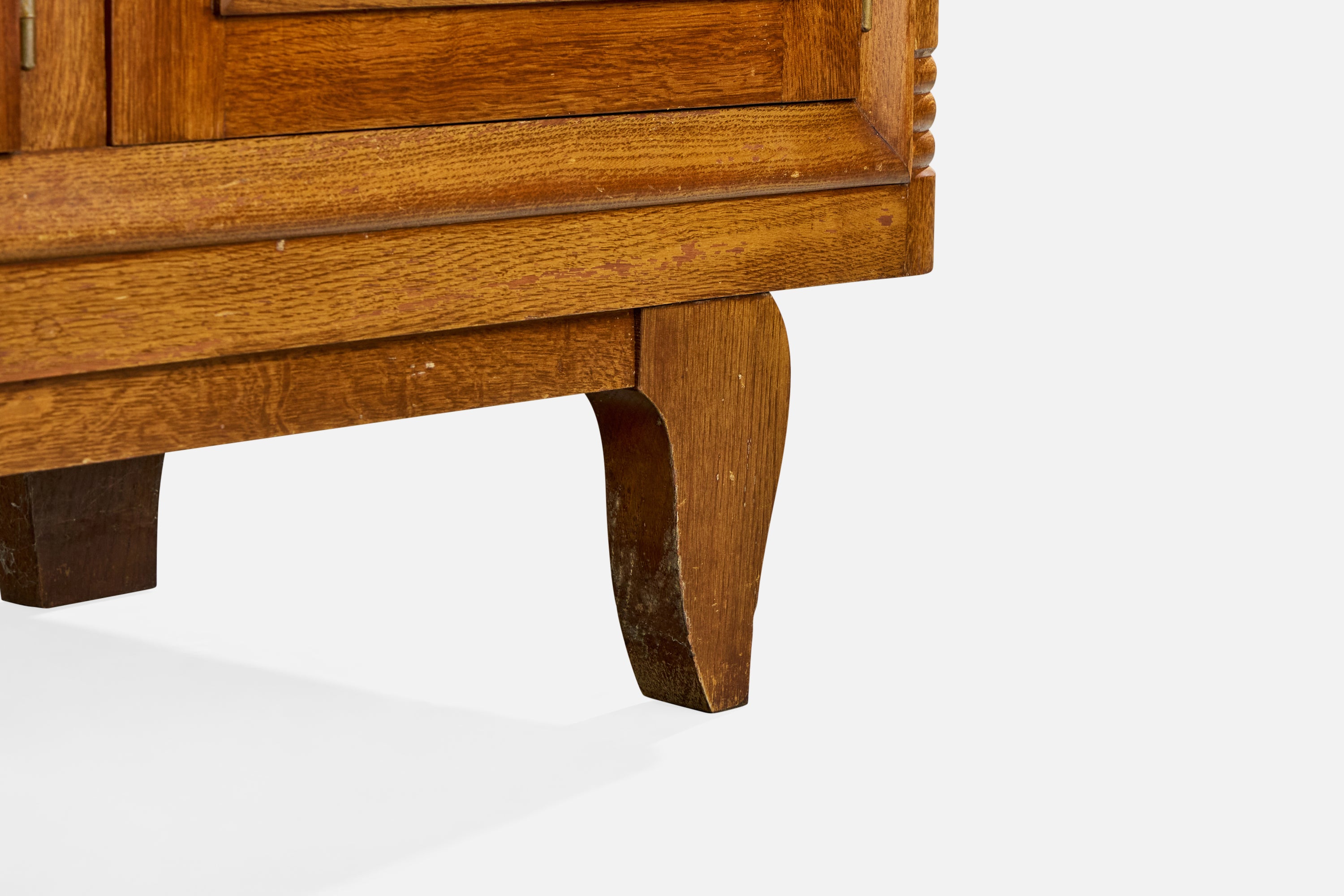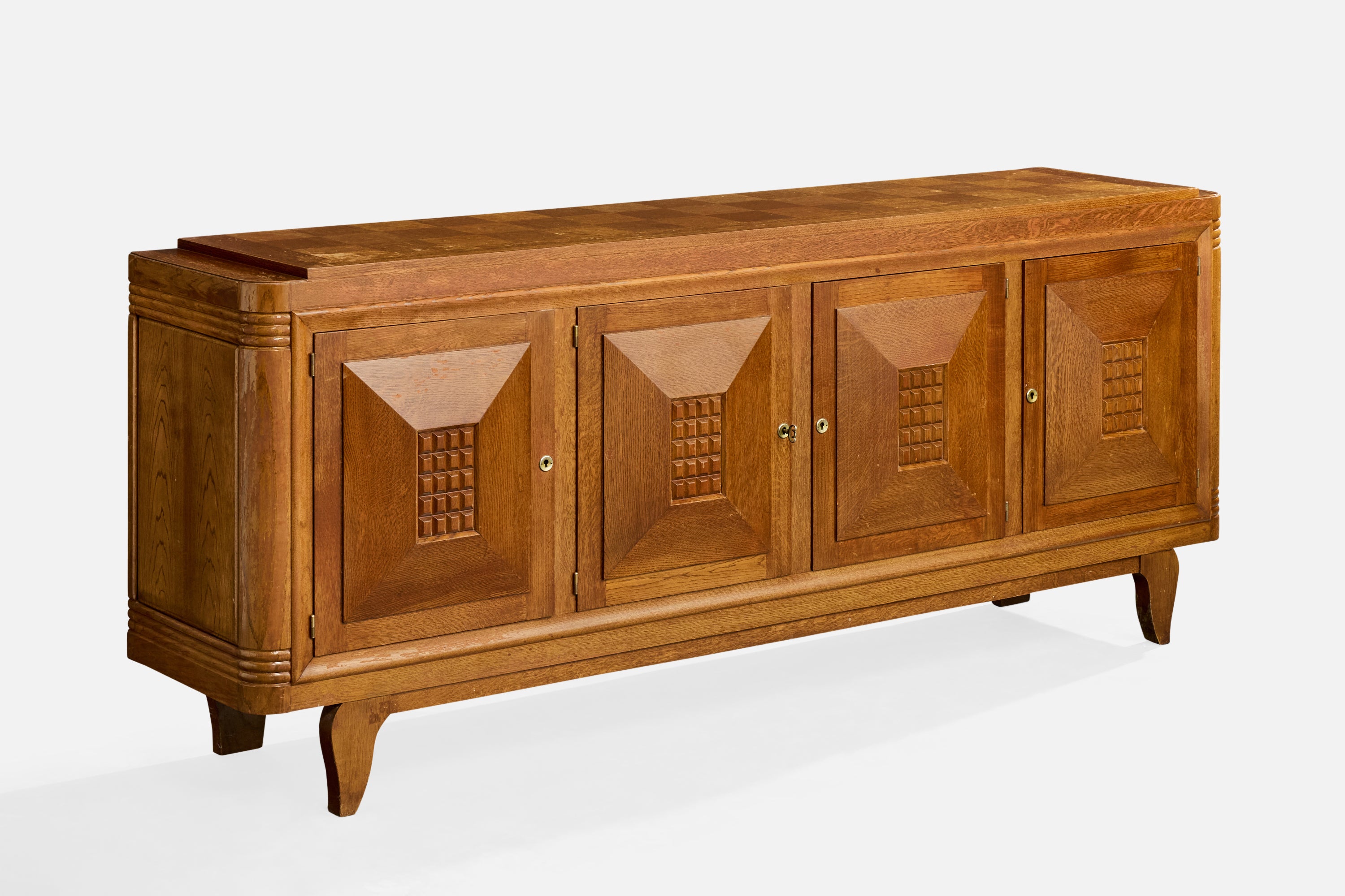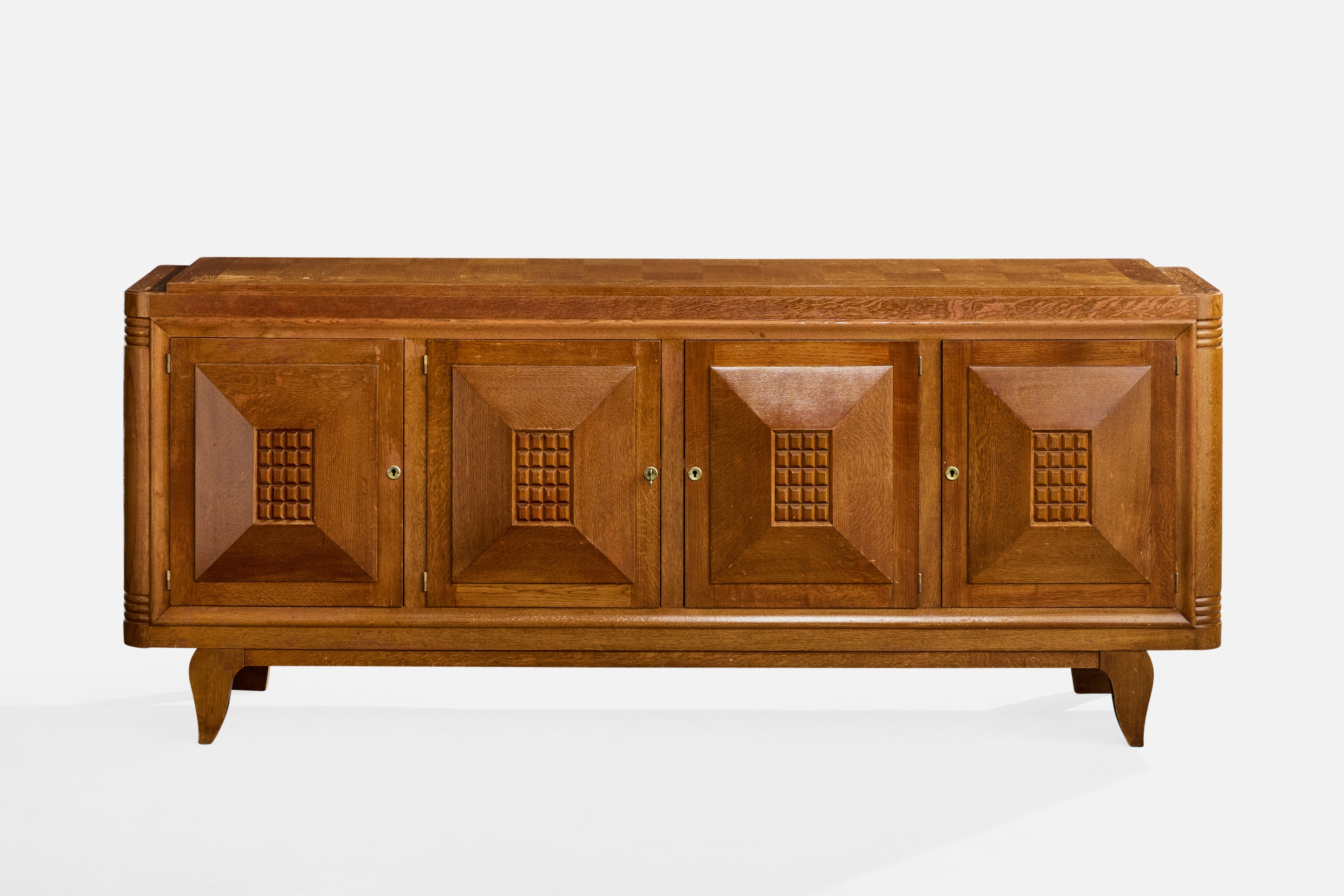 An oak and brass sideboard or cabinet designed and produced in France, c. 1940s.