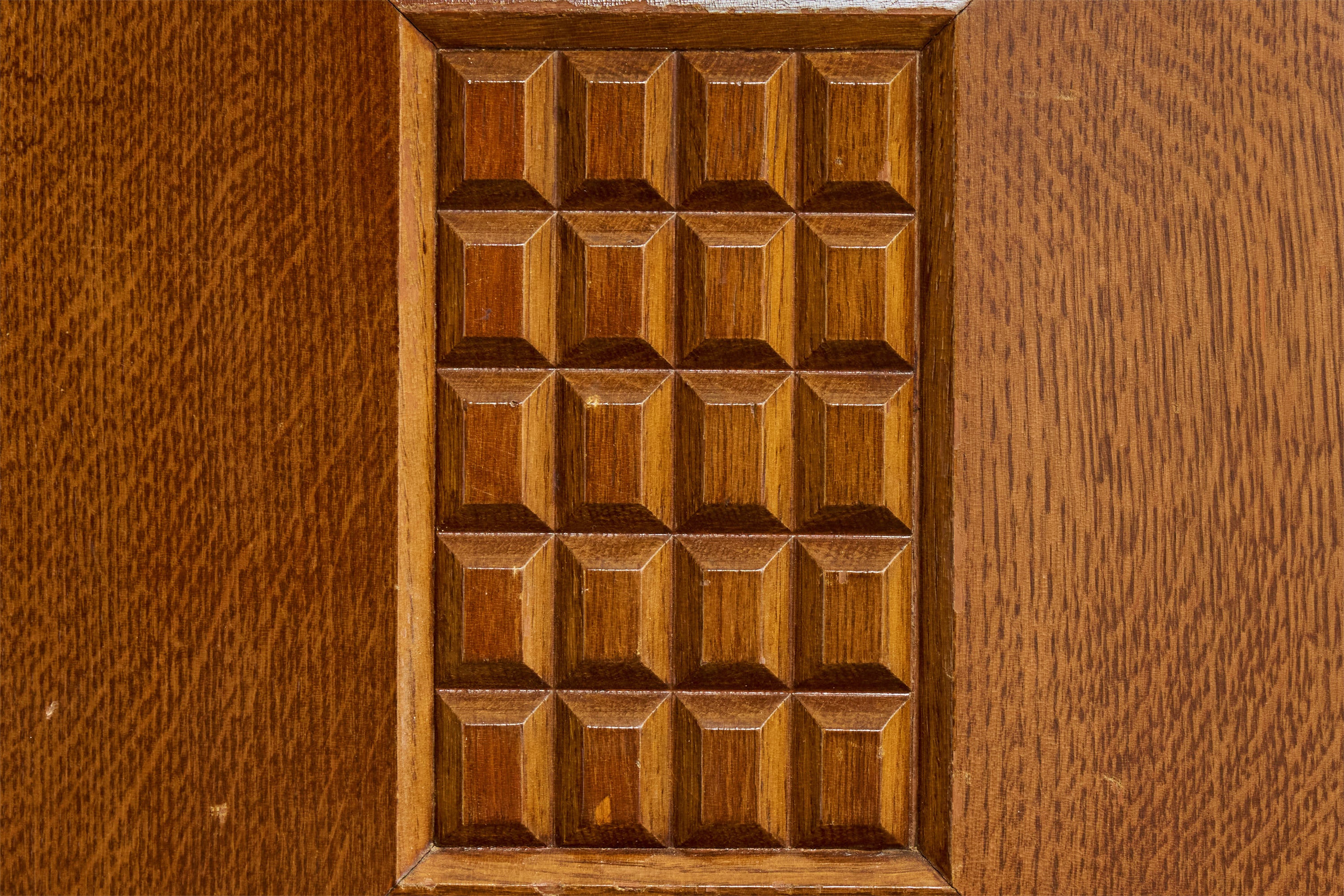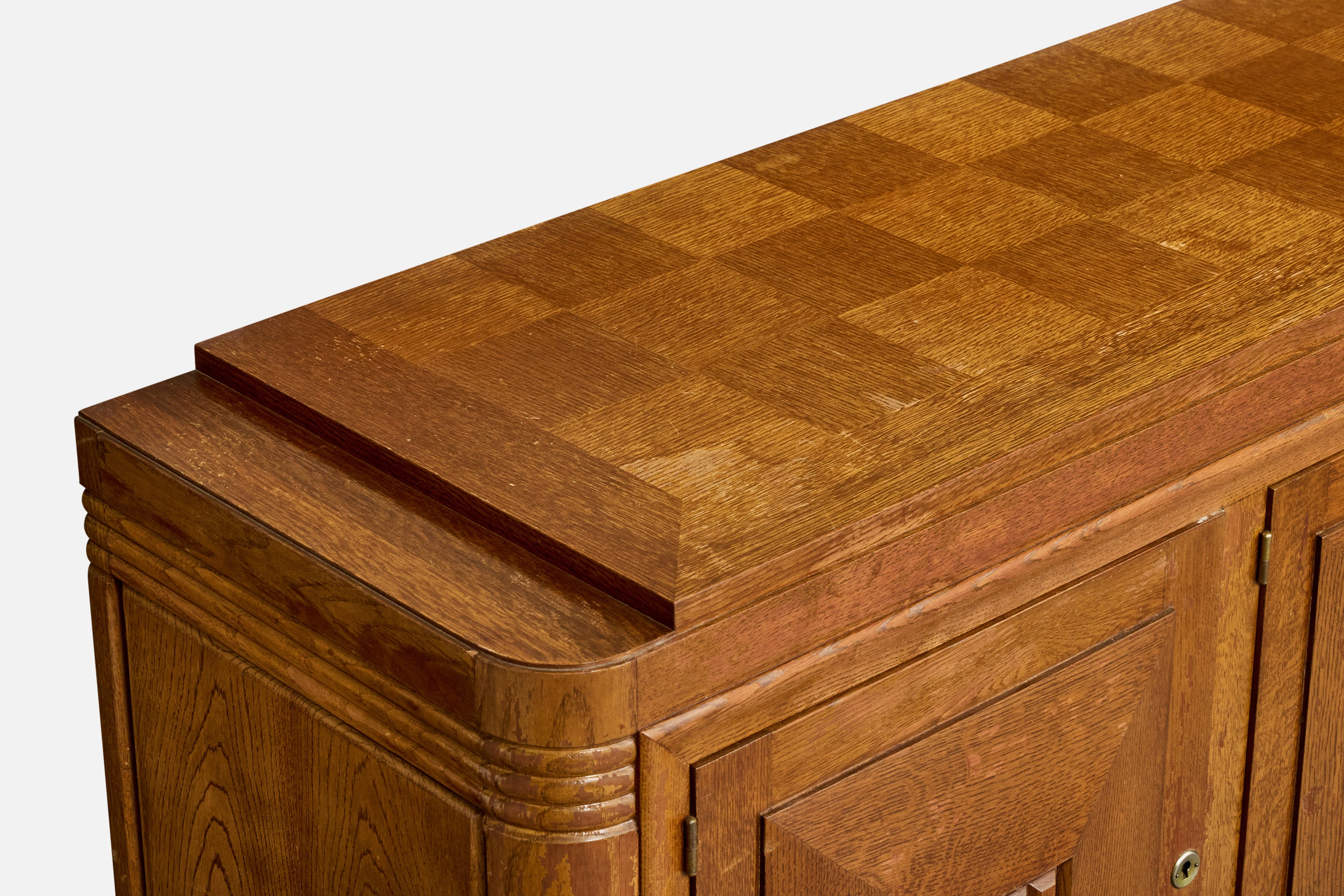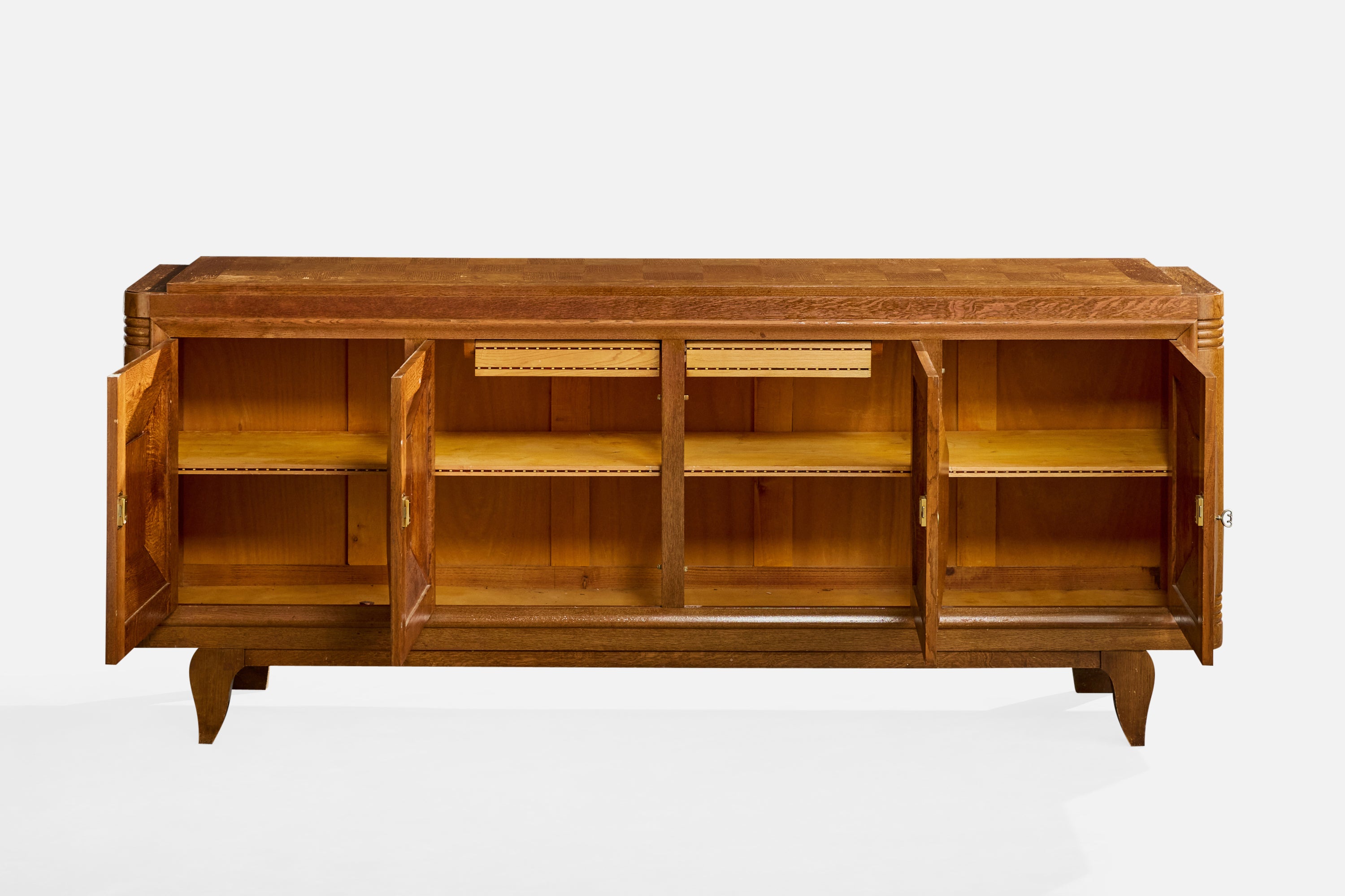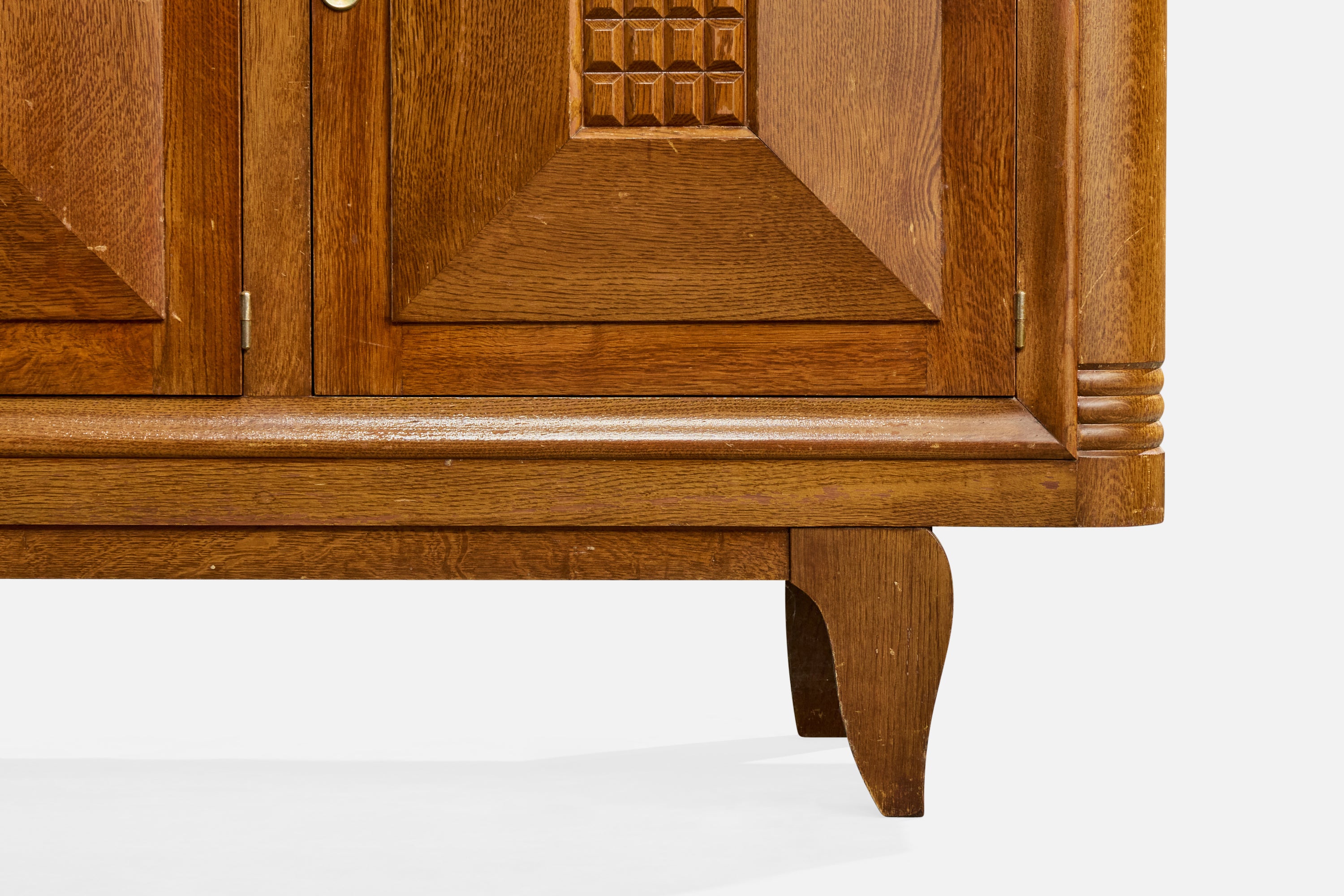 An oak and brass sideboard or cabinet designed and produced in France, c. 1940s.
