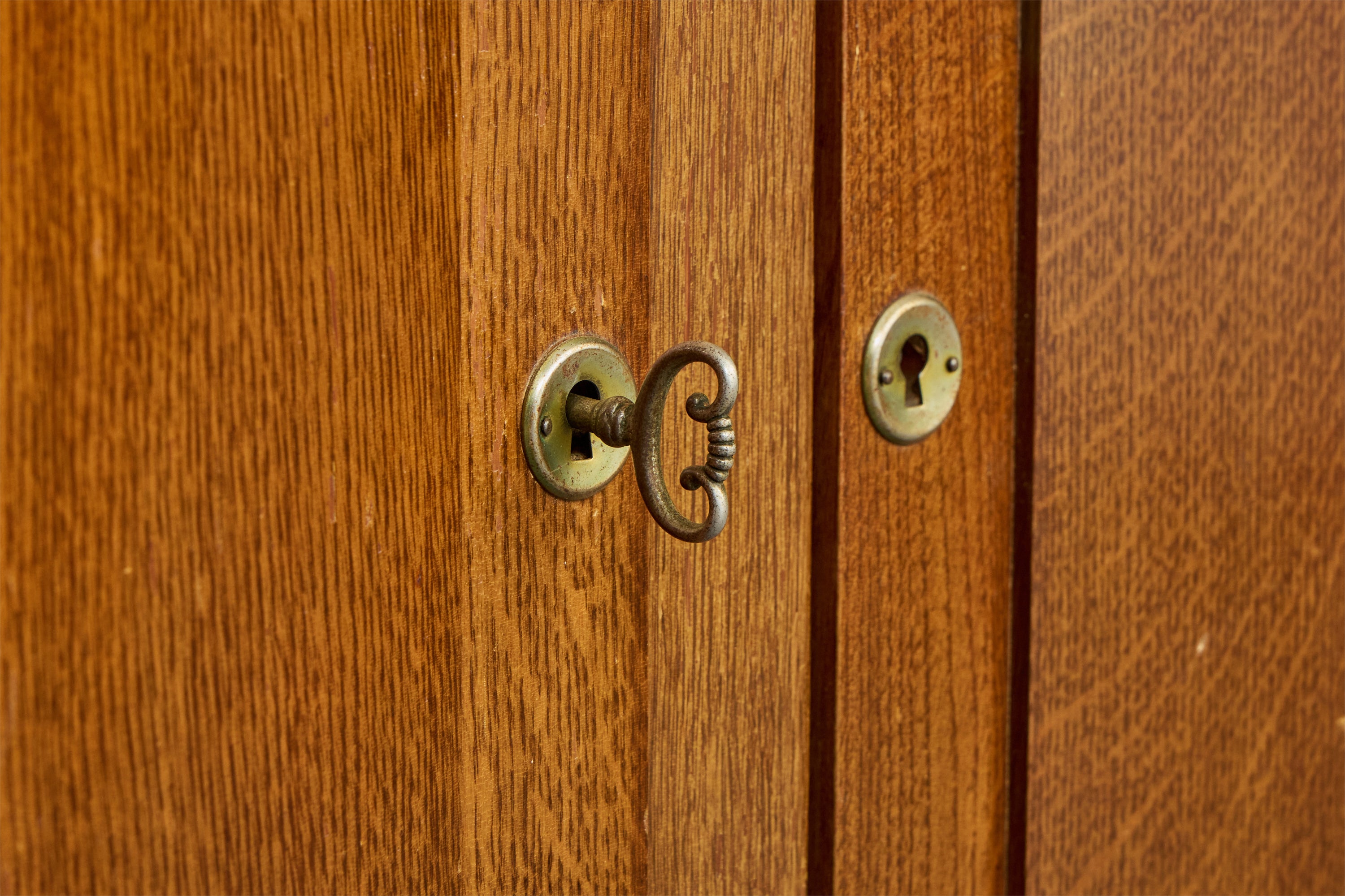French Designer, Sideboard, Oak, Brass, France, 1940s