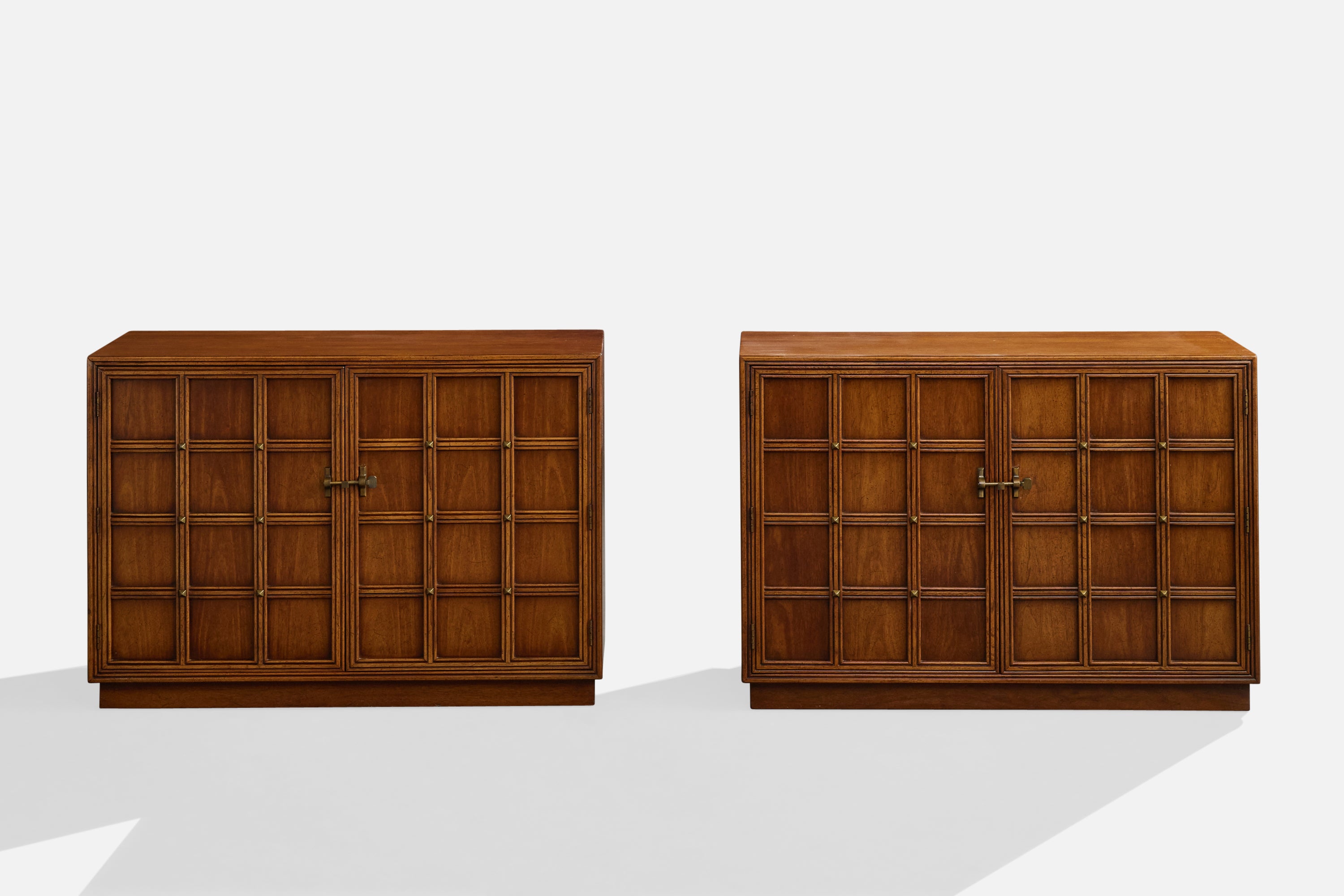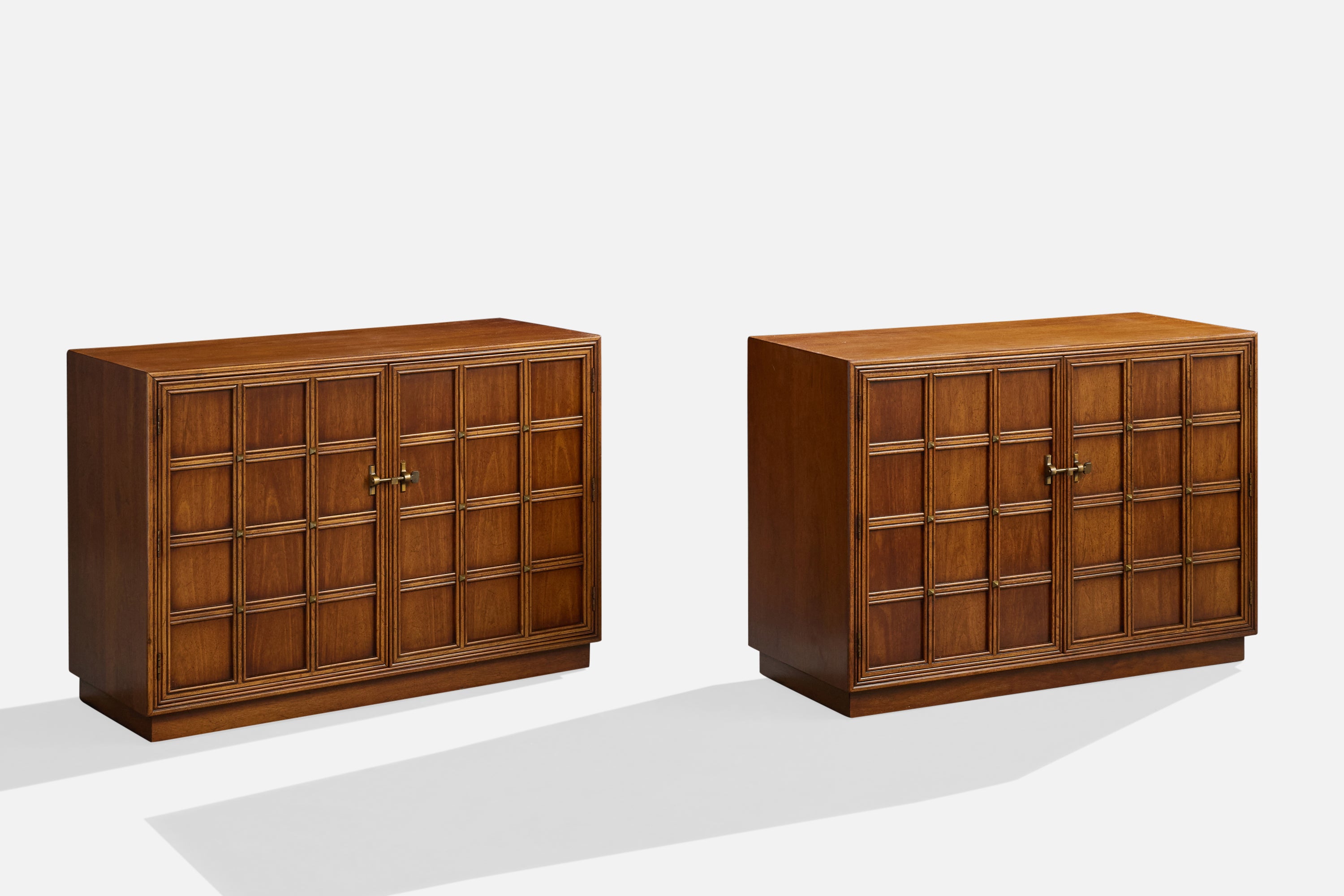 A pair of wood and brass cabinets designed and produced in the US, c. 1950s.