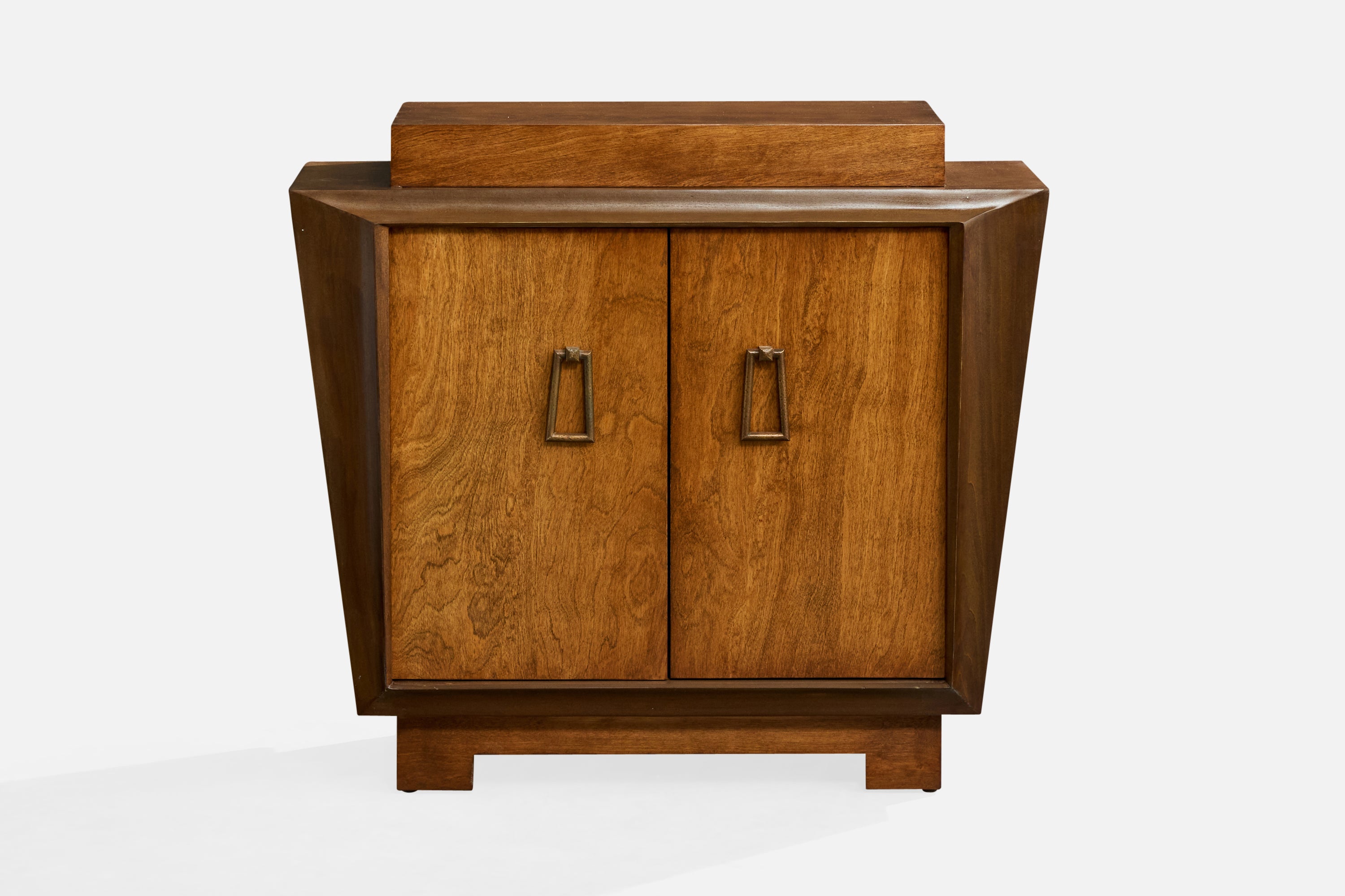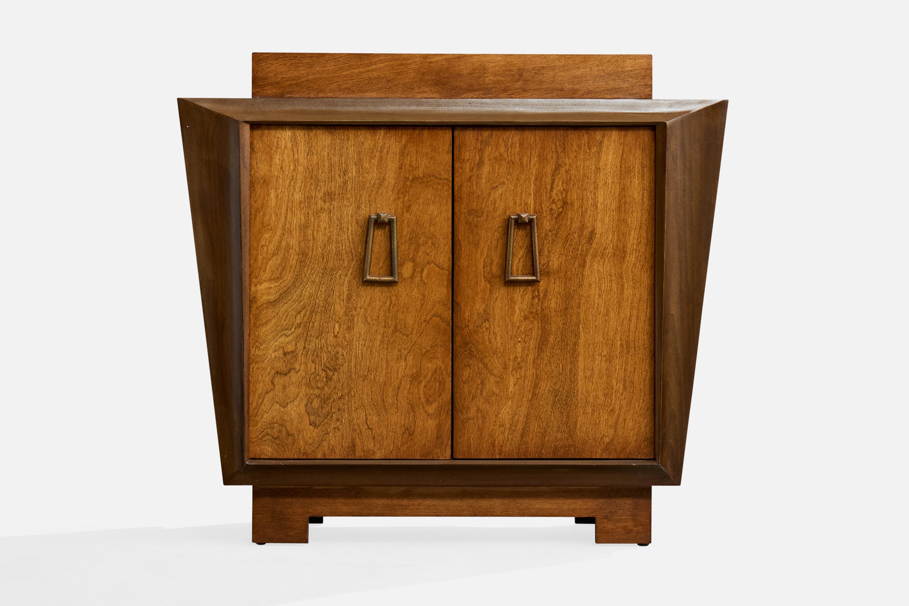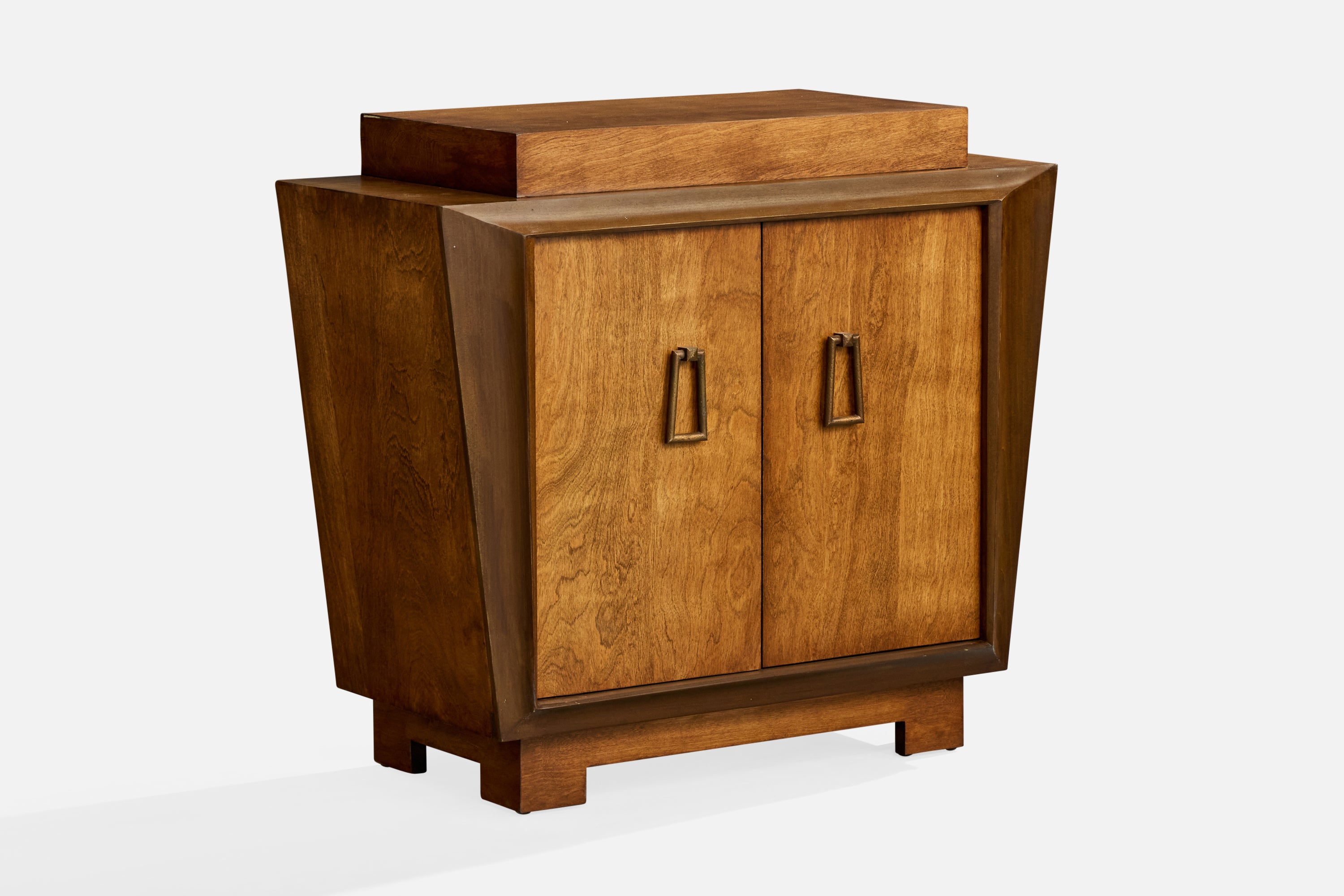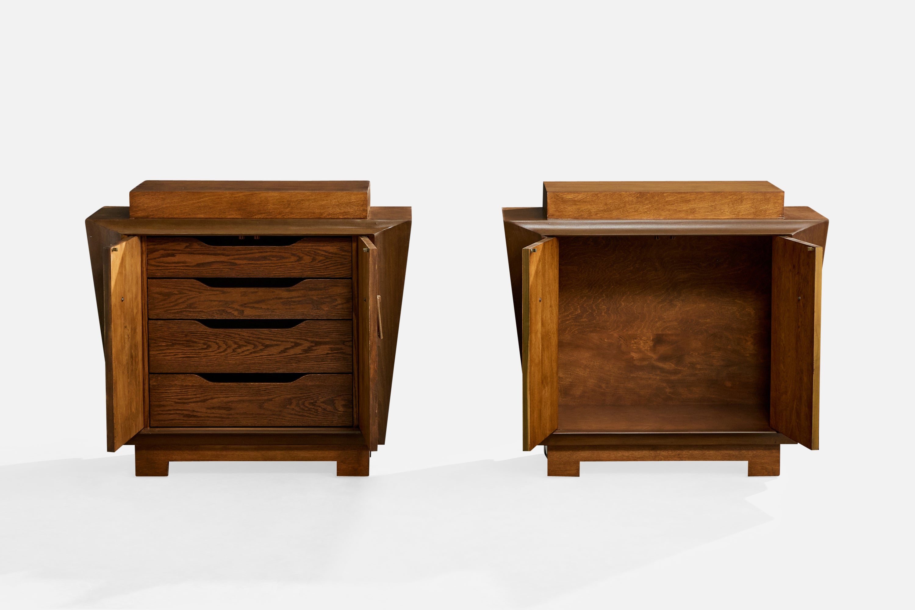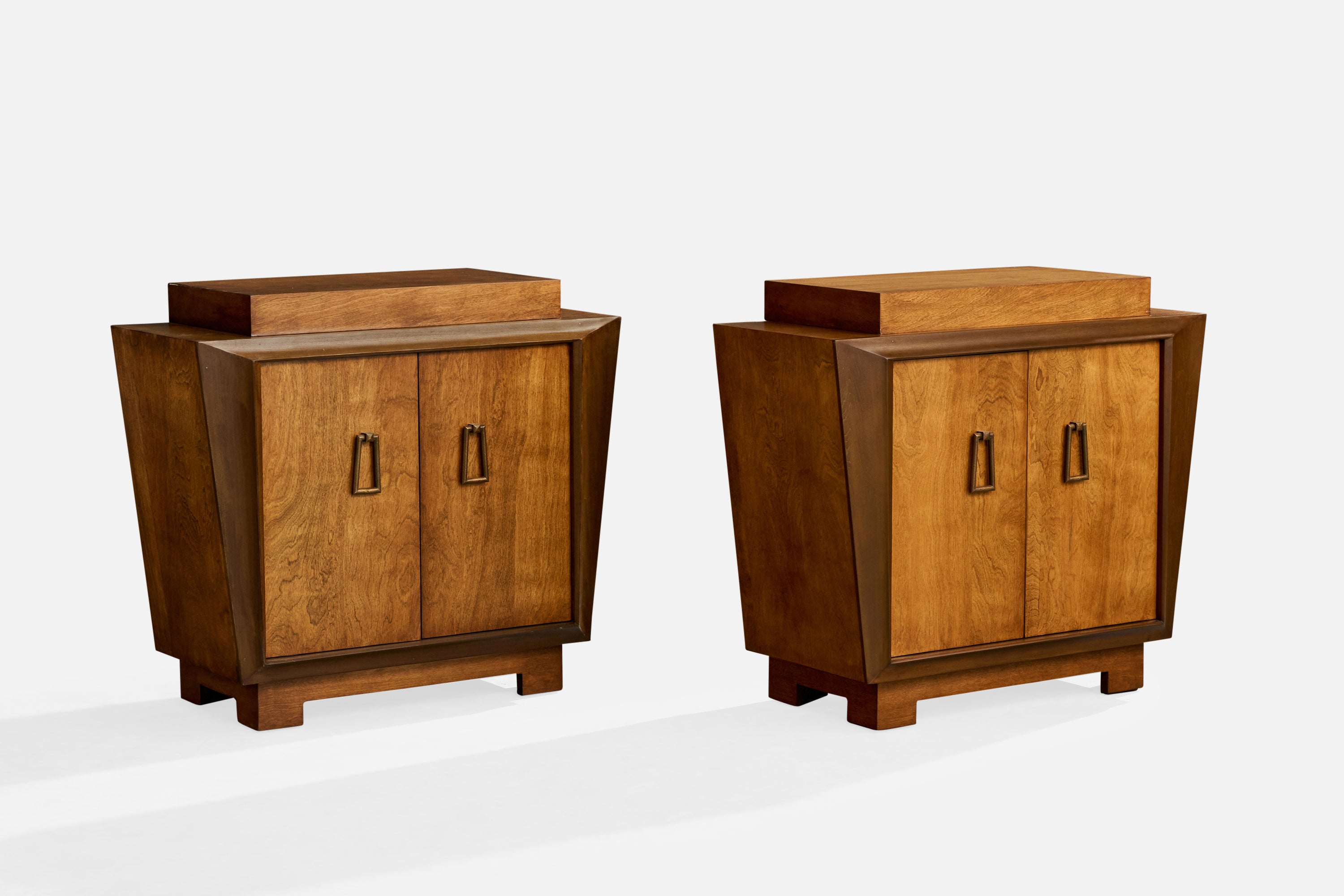A pair of maple, wood and brass nightstands designed and produced by James Mont, USA, c. 1950s.