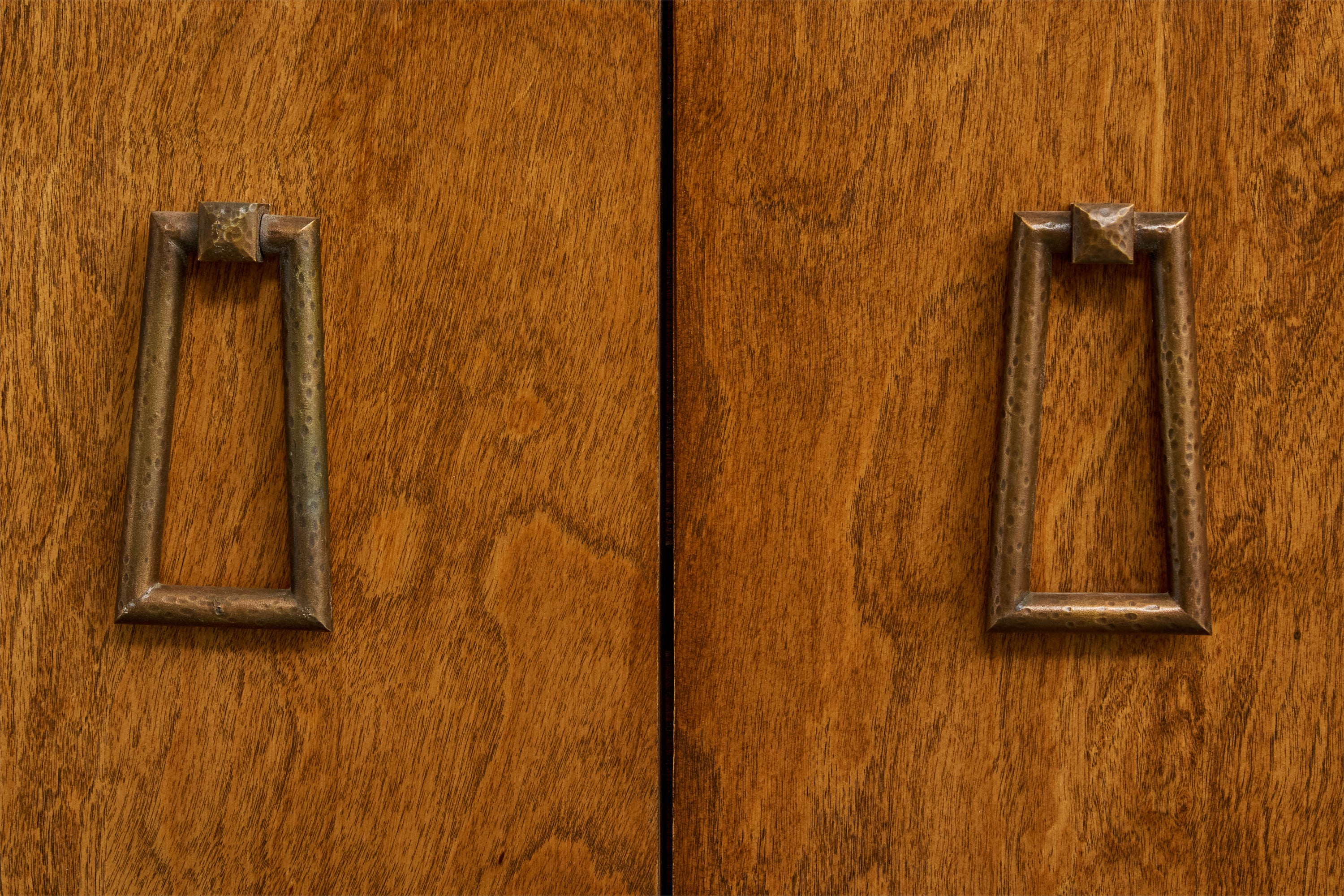 Refinished. Heavy patina brass handles. Minor imperfections to exterior.