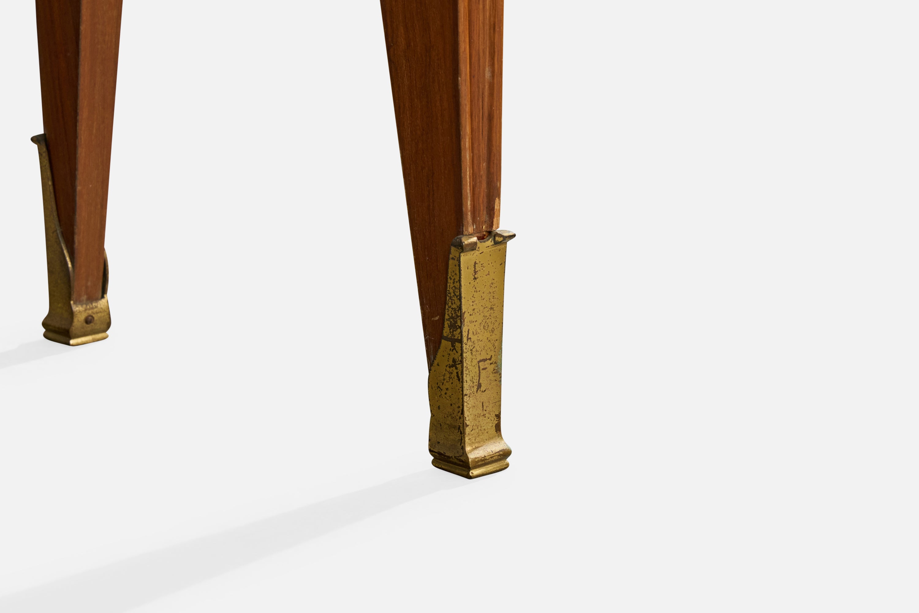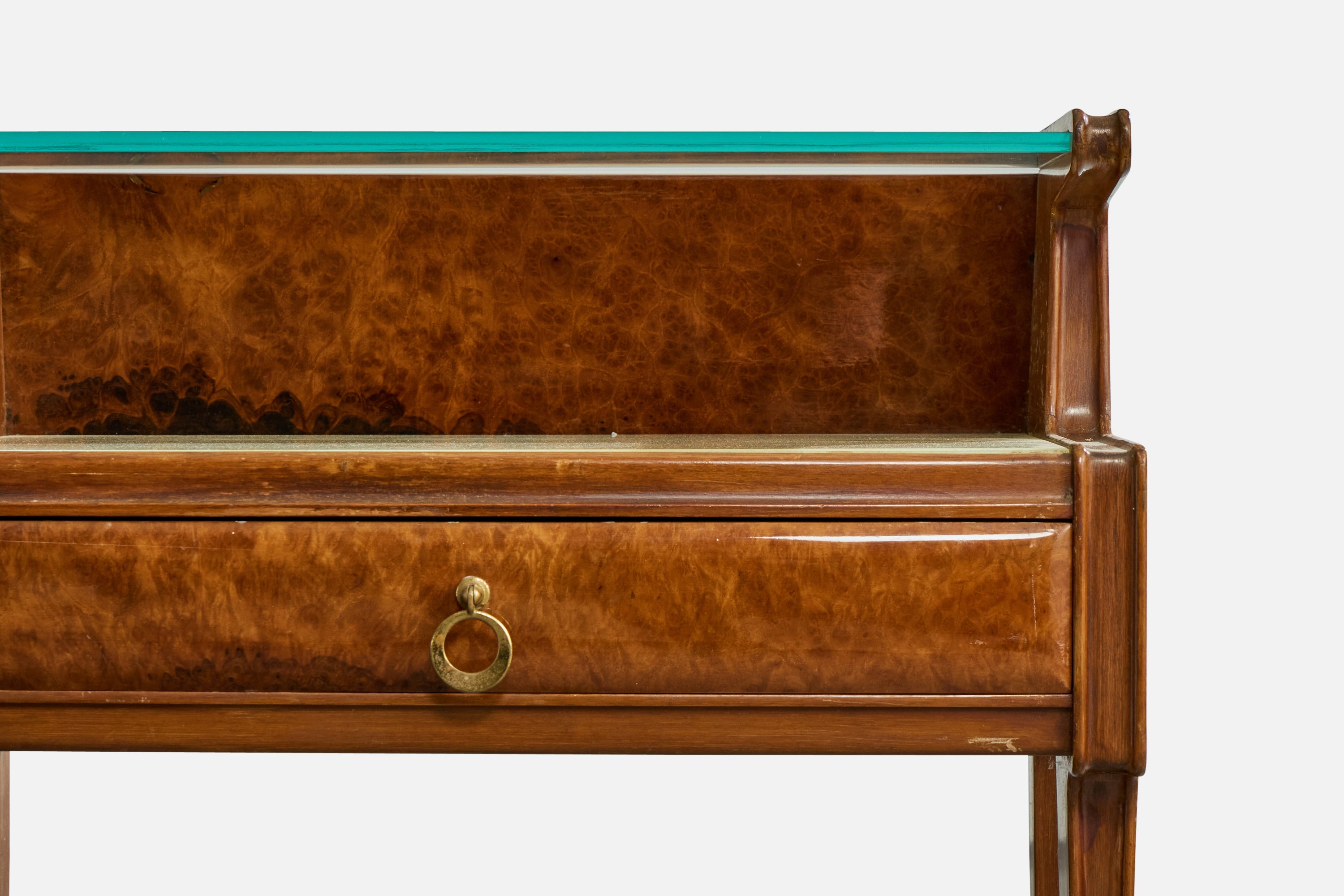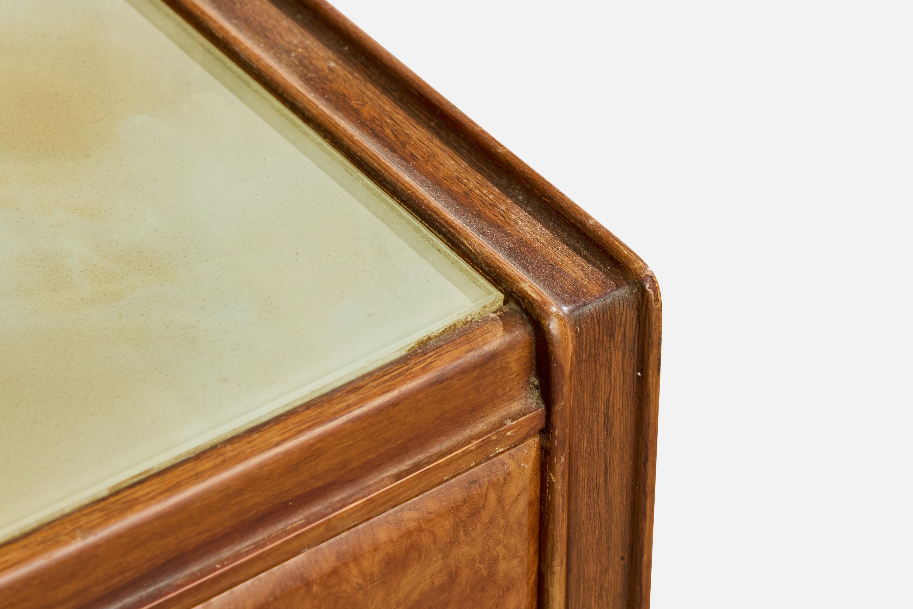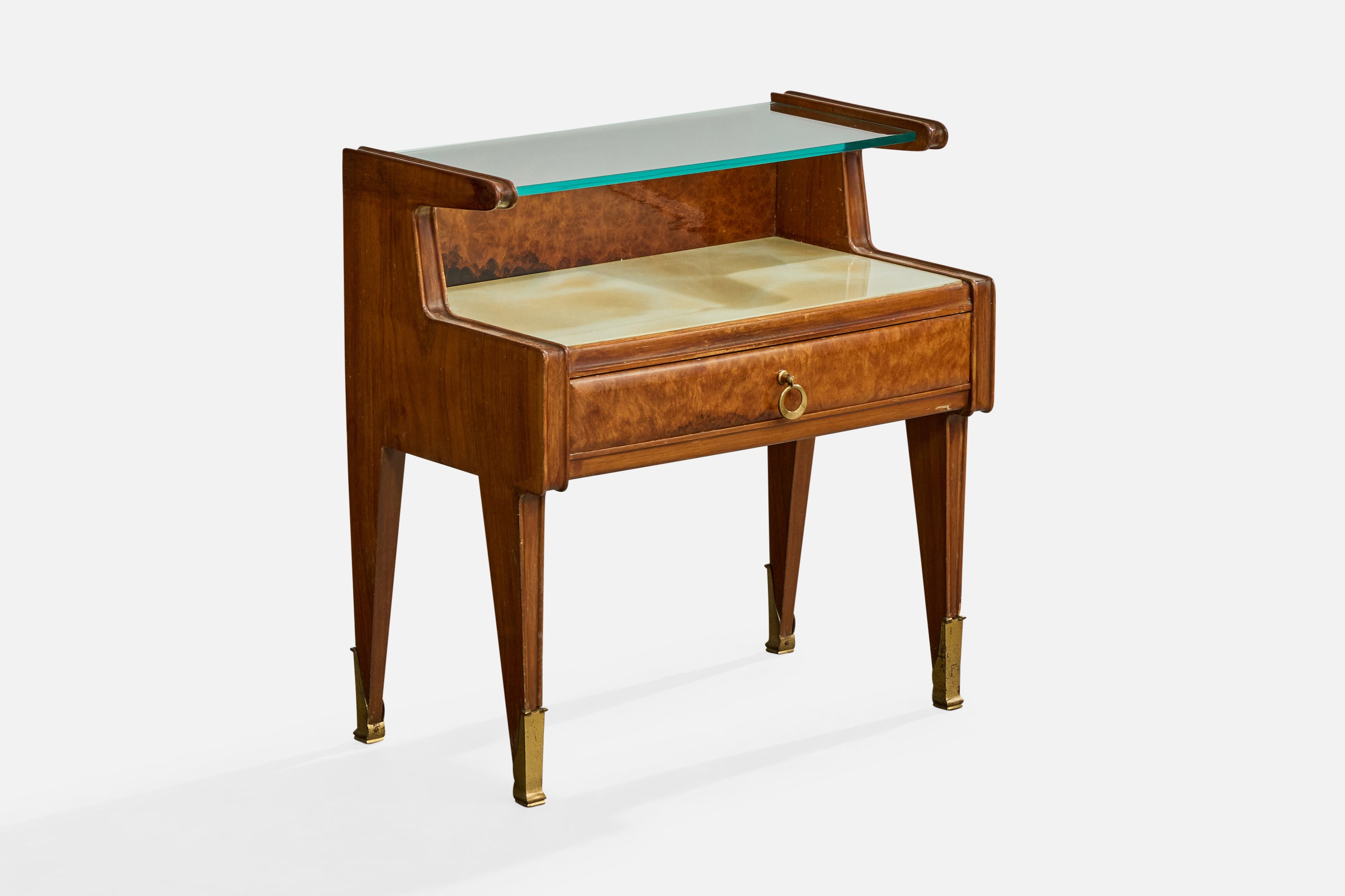 A pair of wood, glass, brass and onyx or onyx colored glass nightstands produced by Dassi, Italy, c. 1950s.