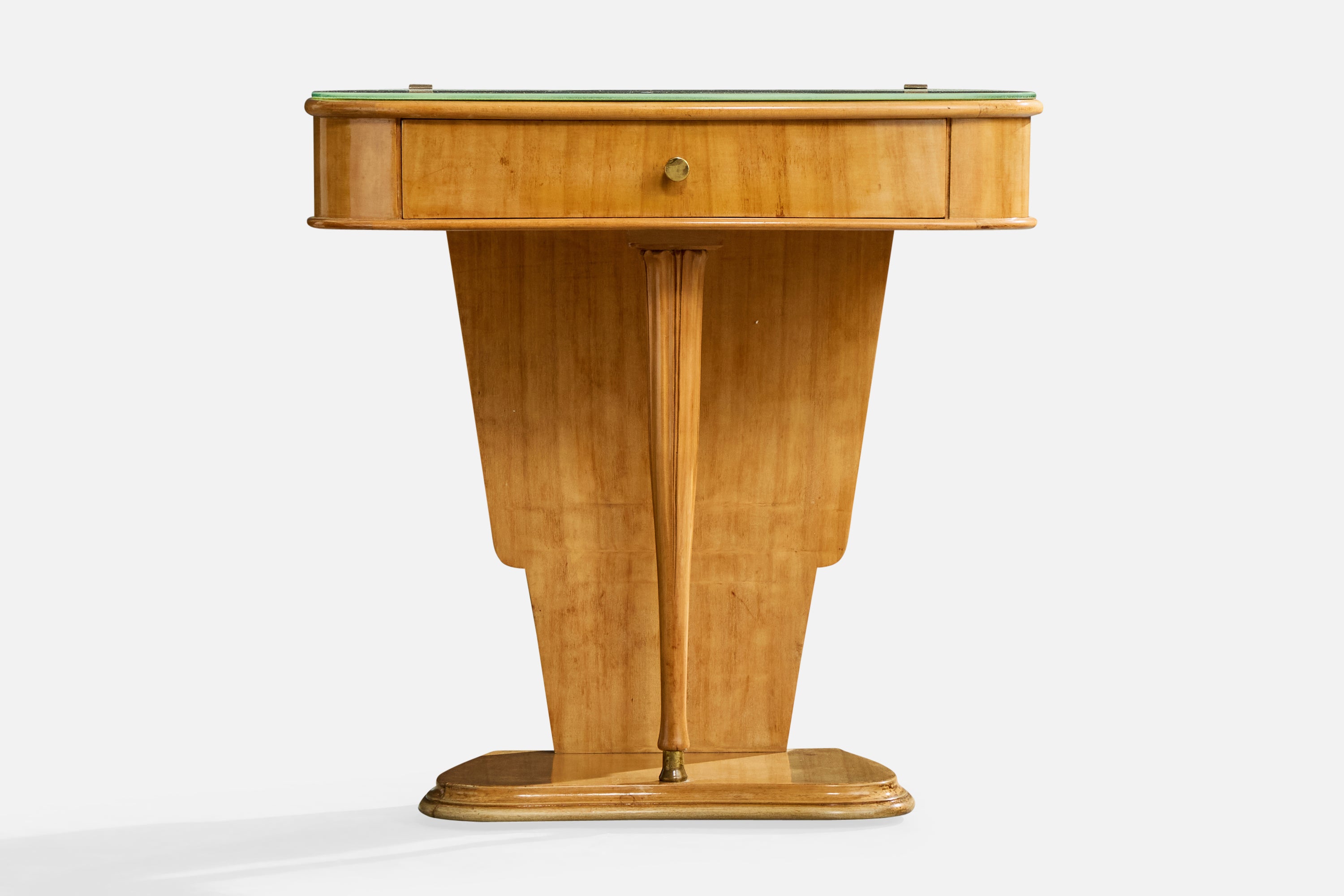 Italian Designer, Nightstands, Wood, Brass, Glass, Italy, 1950s