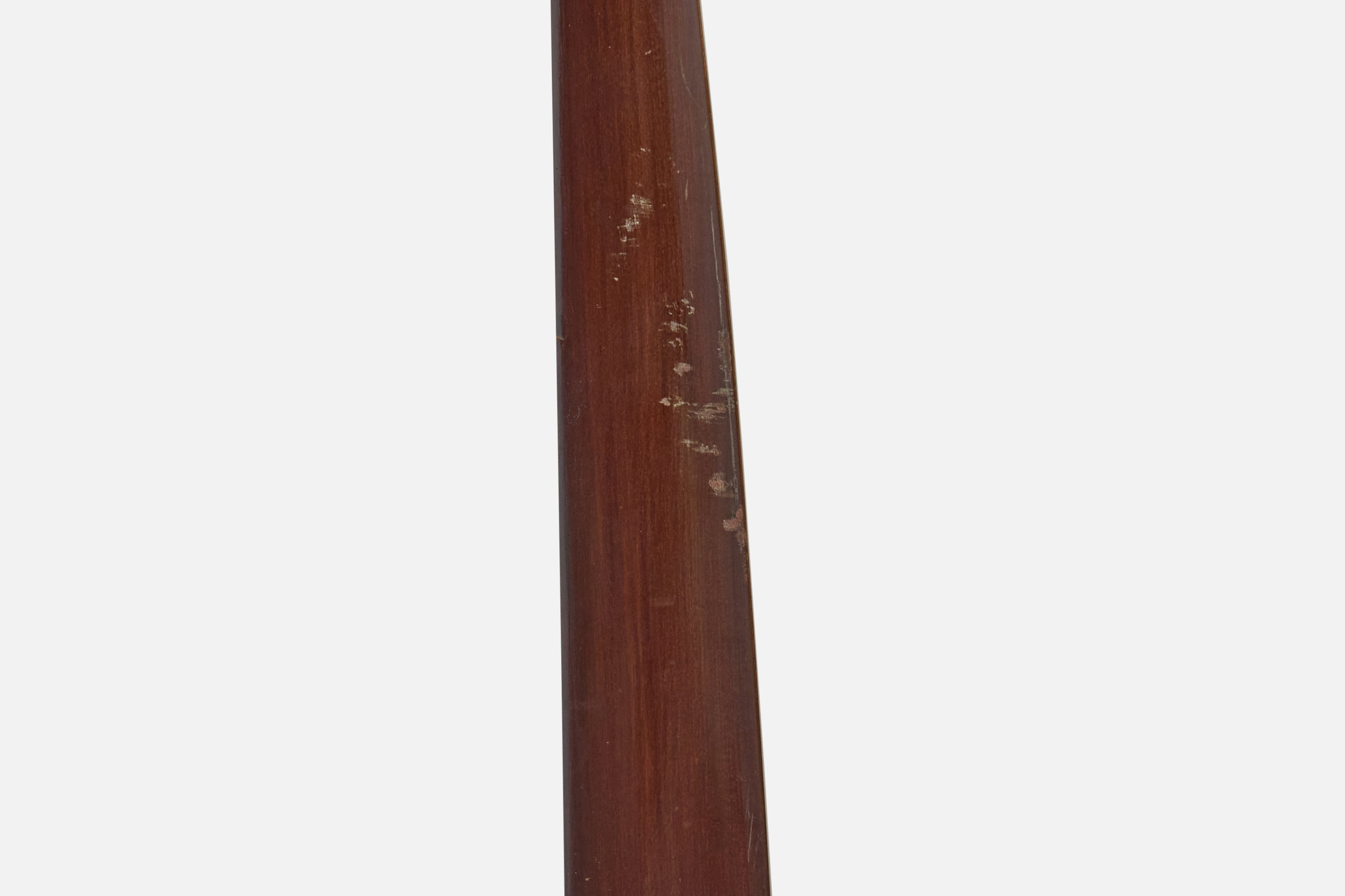 Minor chip in glass along brass support (one on each table). One has minor staining on bottom shelf. Wear consistent with age and use including natural wood surface cracking.