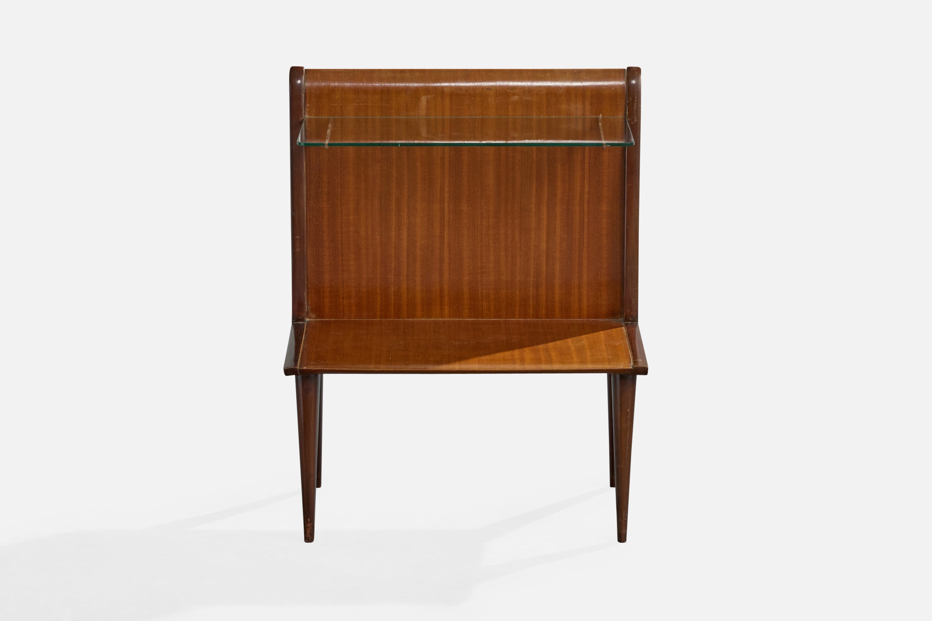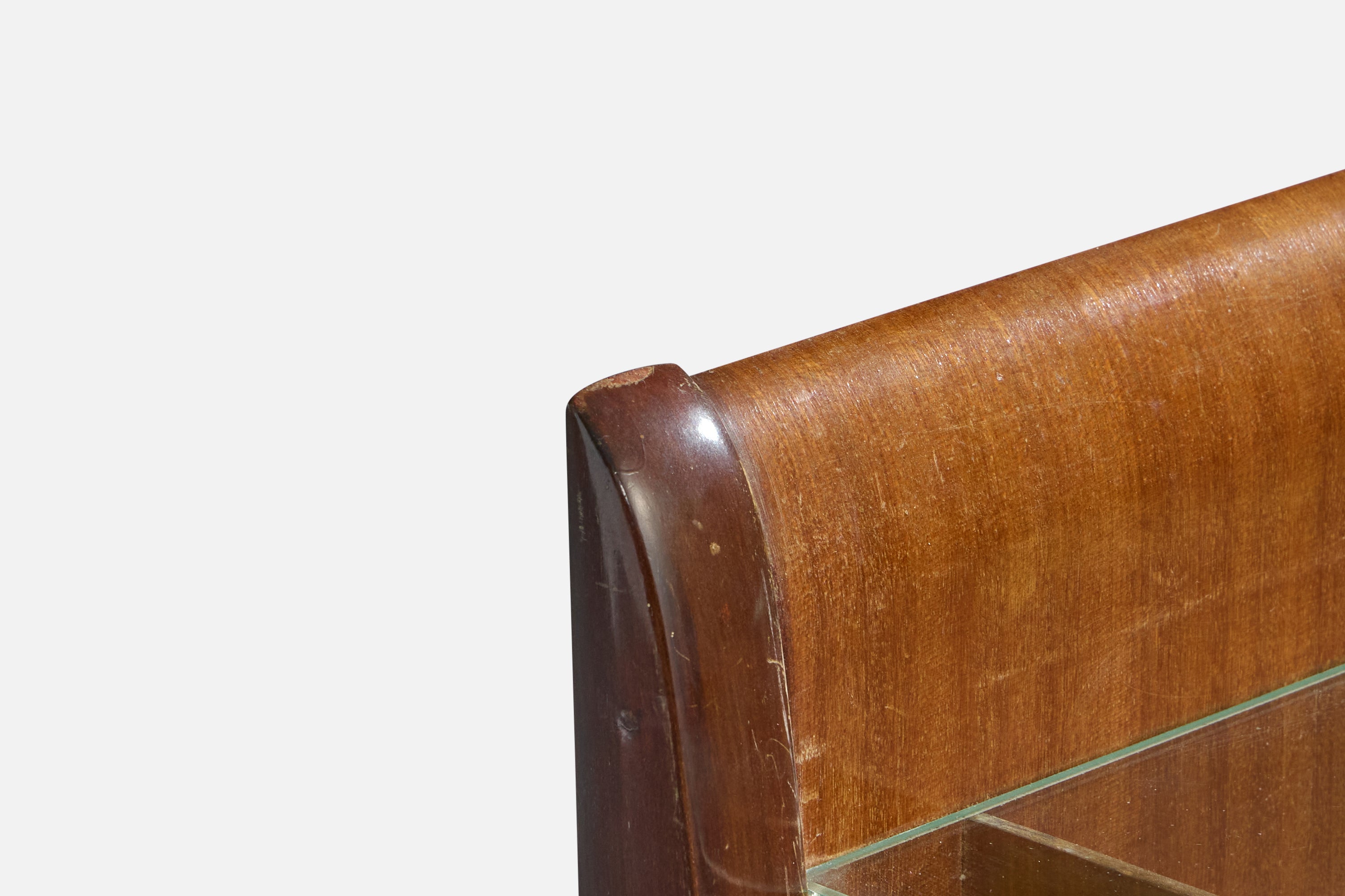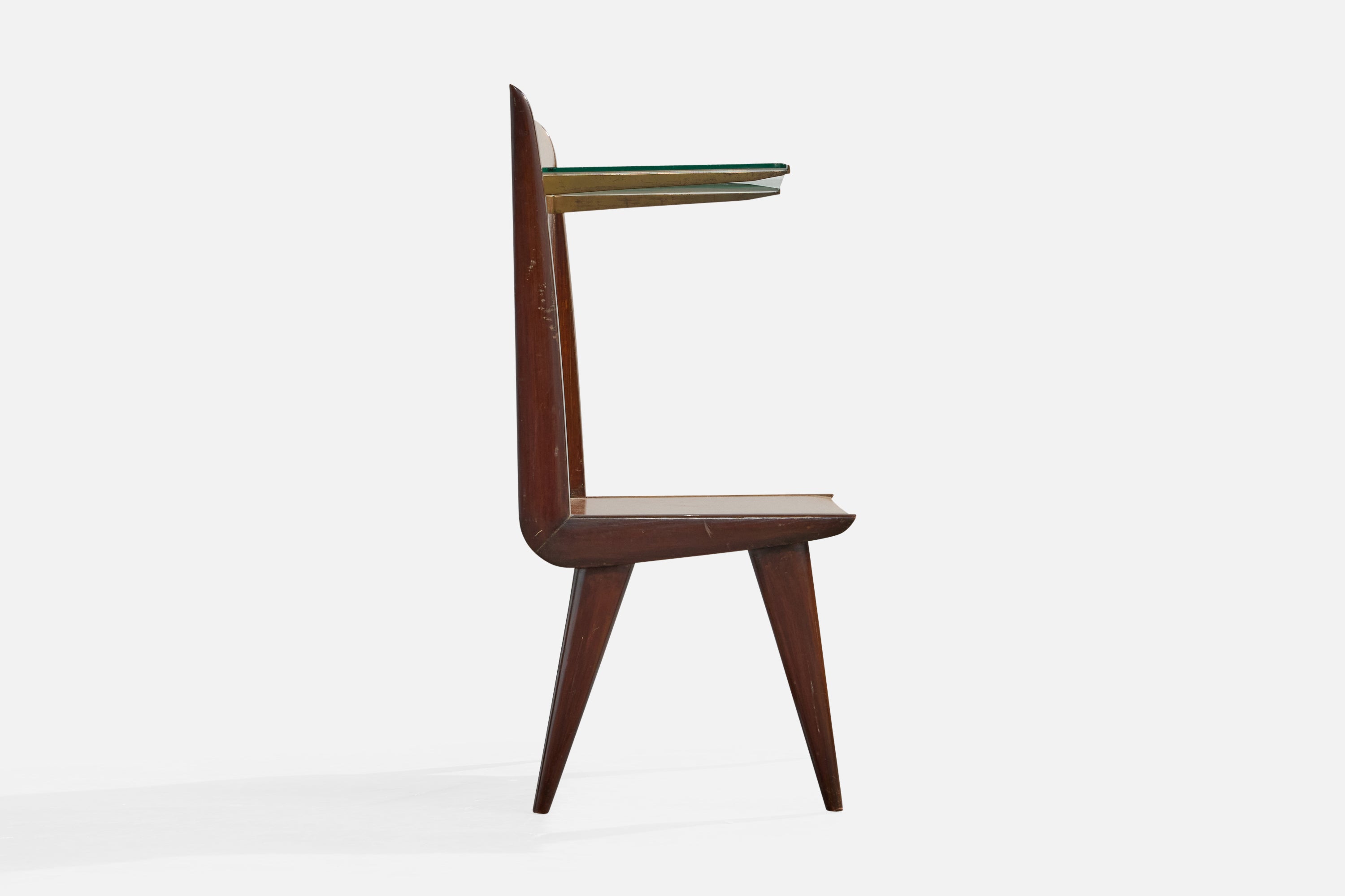 Italian Designer, Nightstands, Wood, Brass, Glass, Italy, 1950s