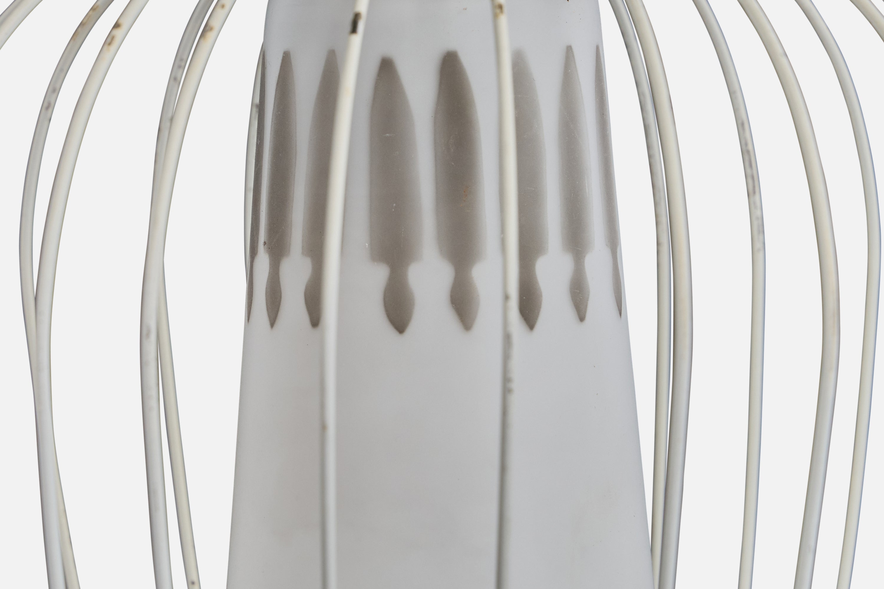 Swedish Designer, Pendant Light, Metal, Glass, Sweden, 1950s