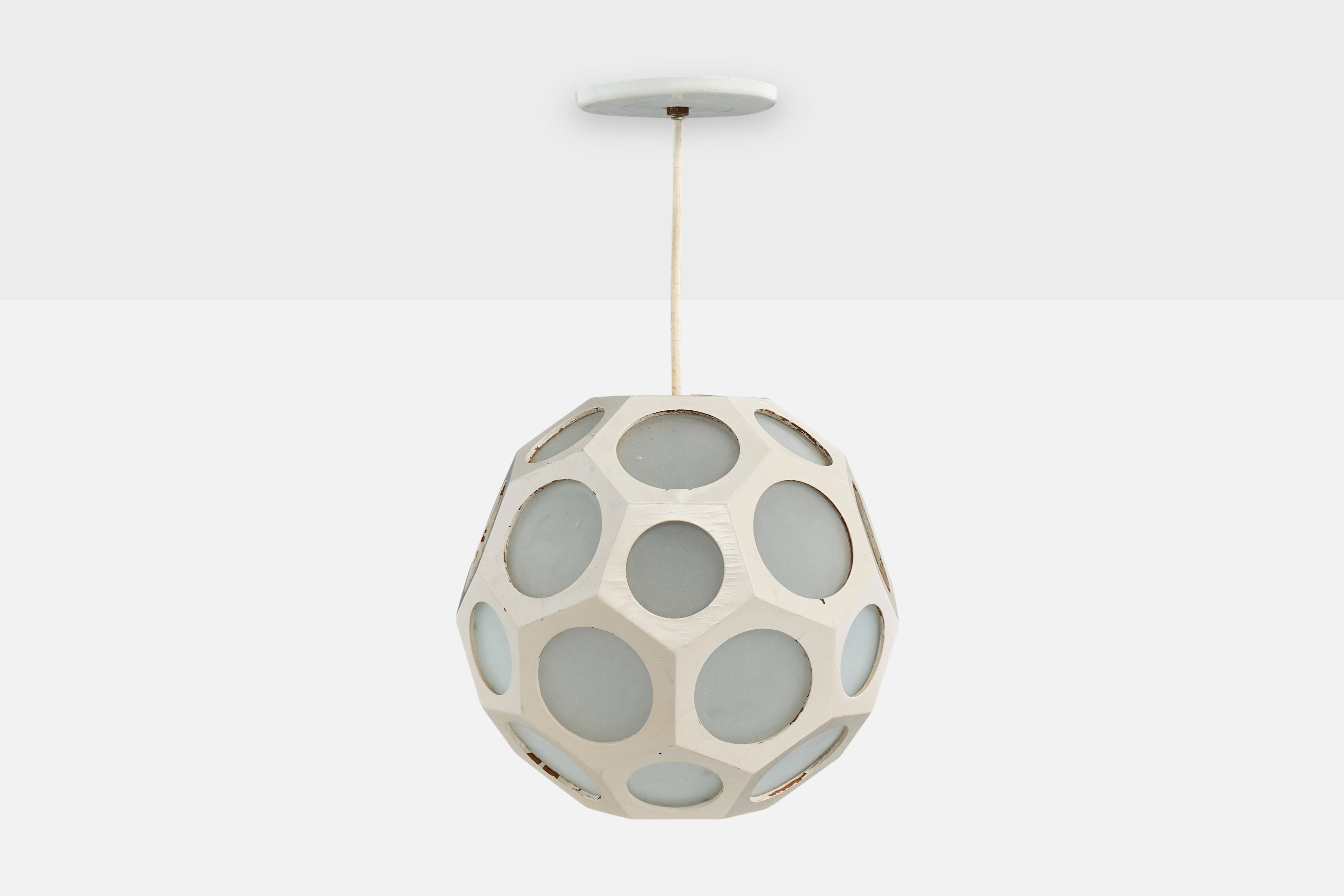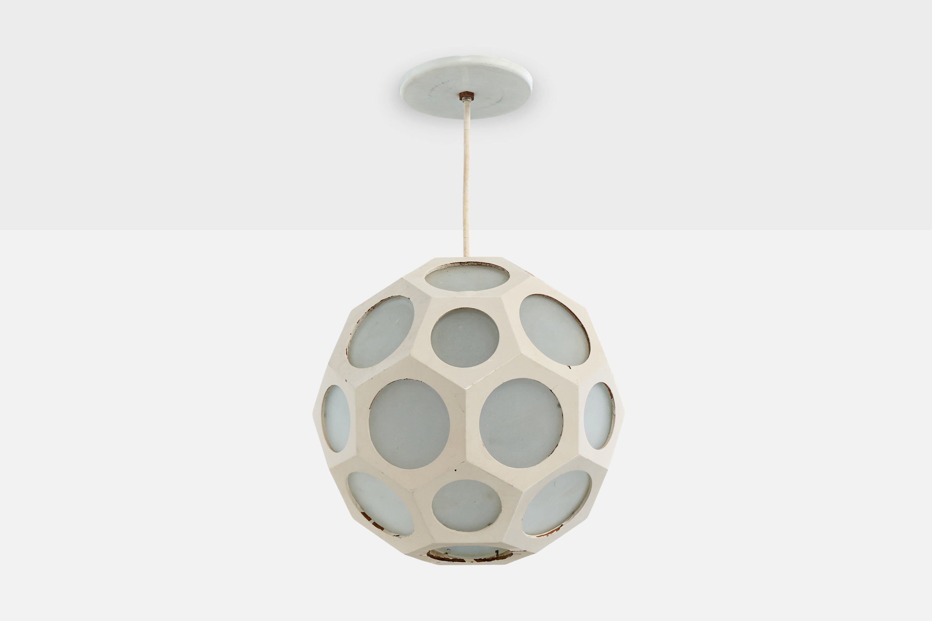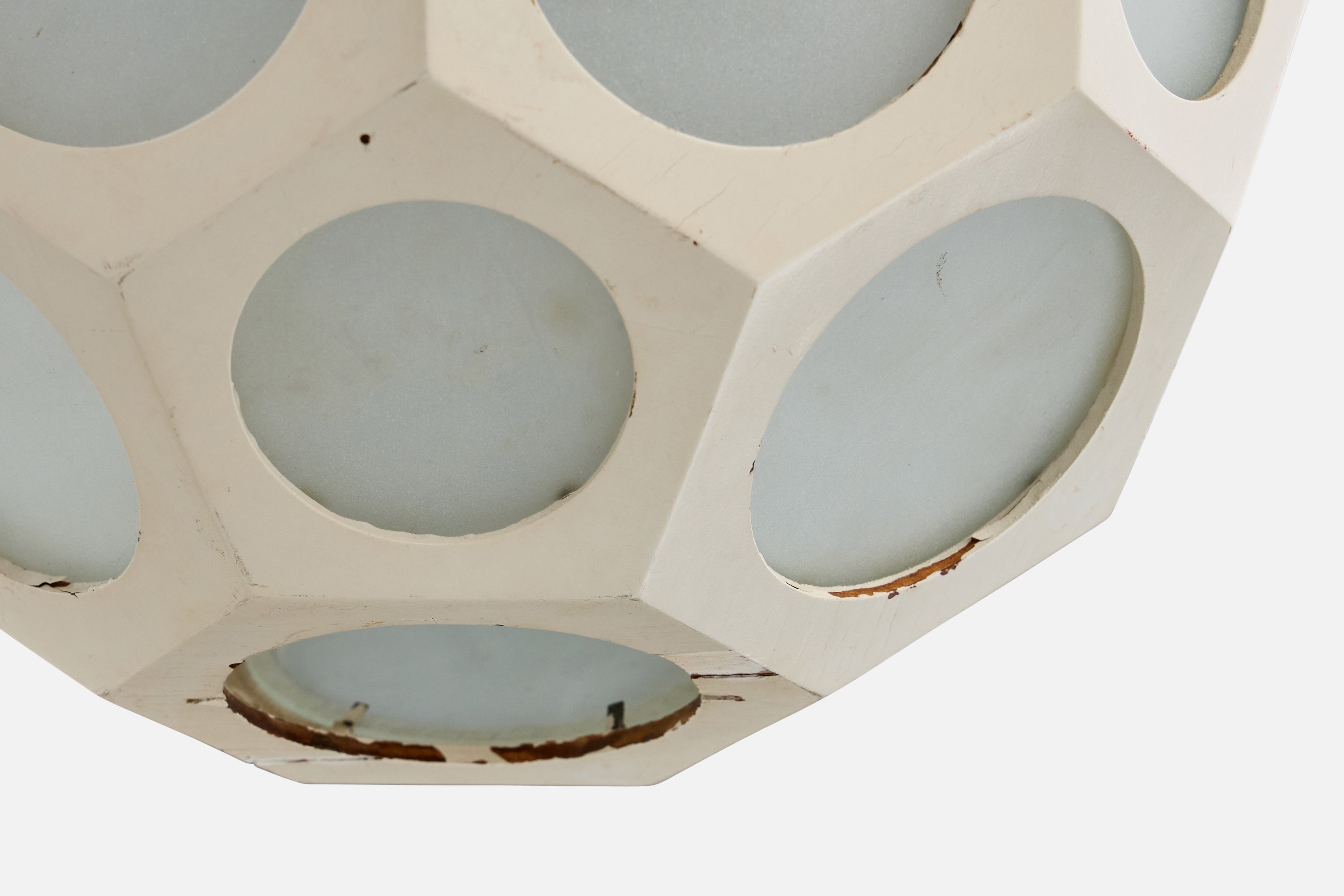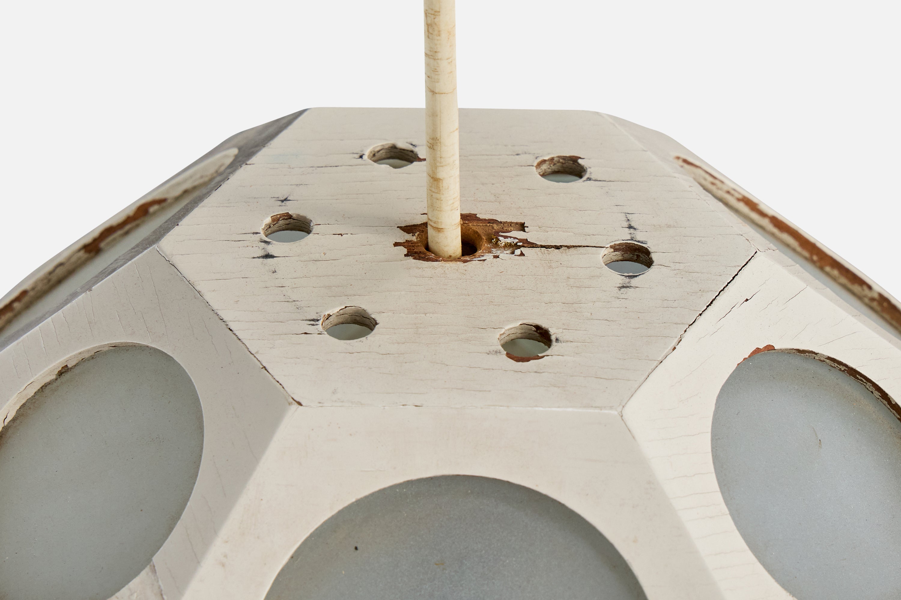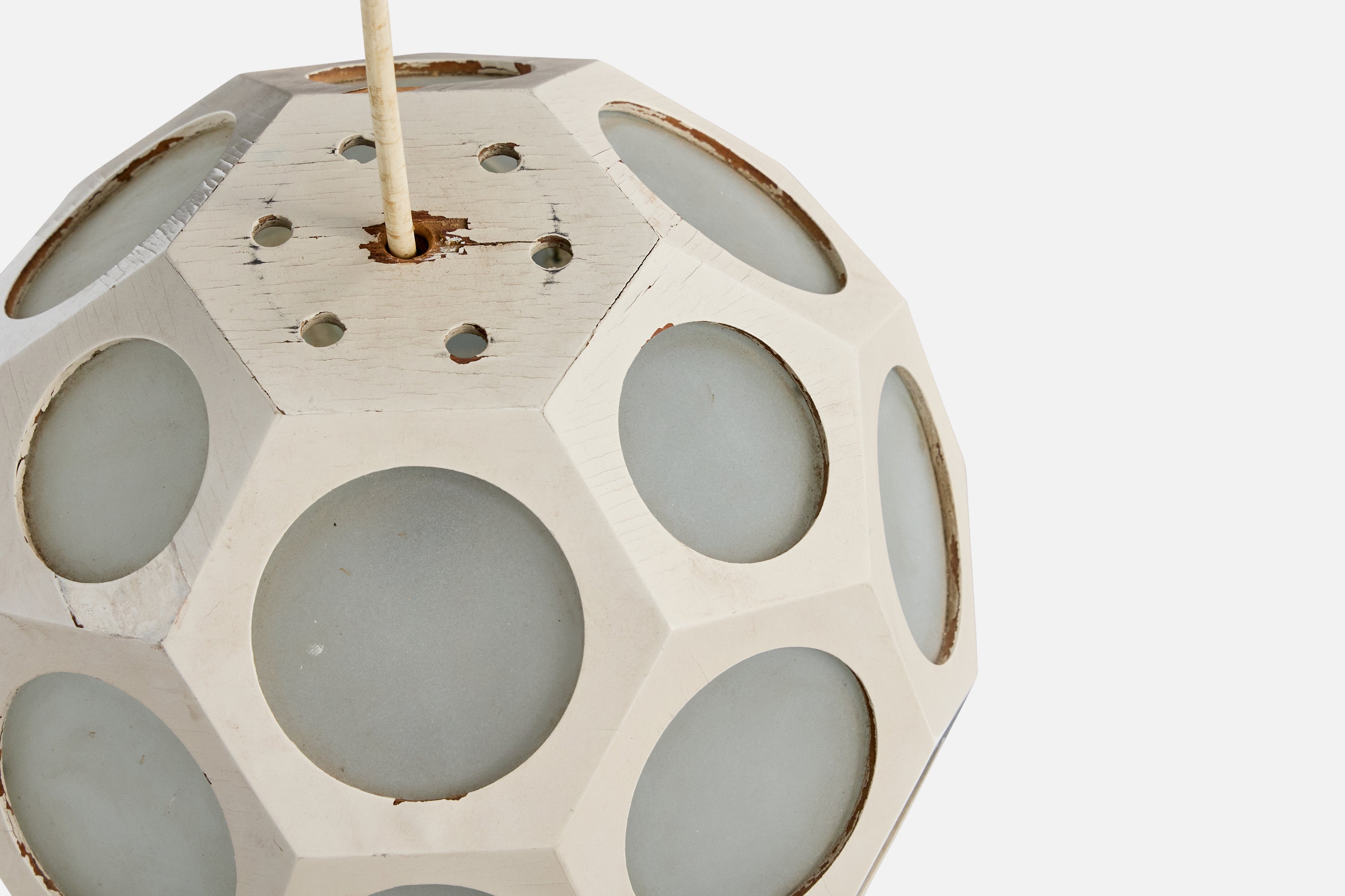 An off white-painted wood and glass pendant light designed and produced in Brazil, c. 1950s.