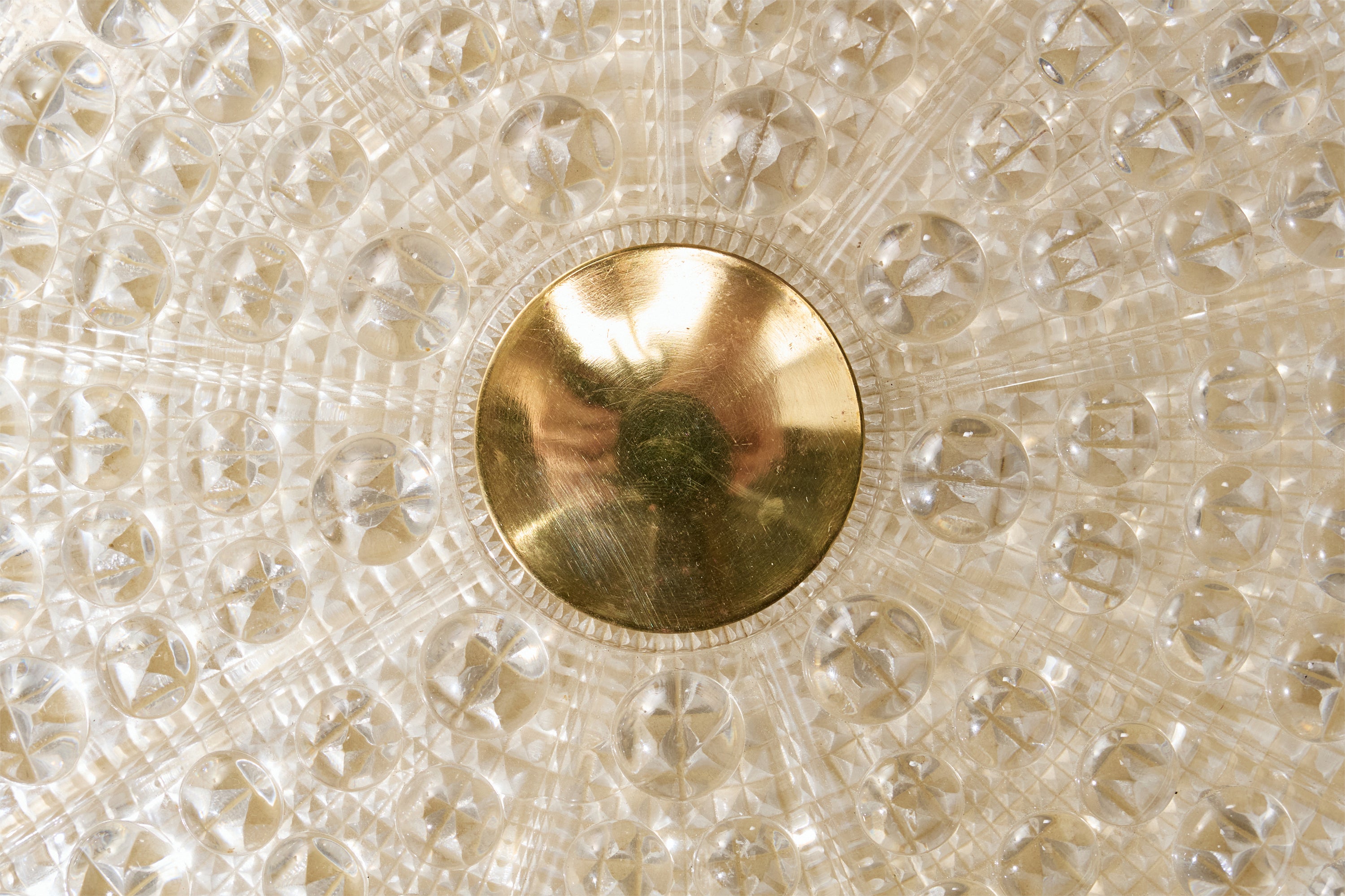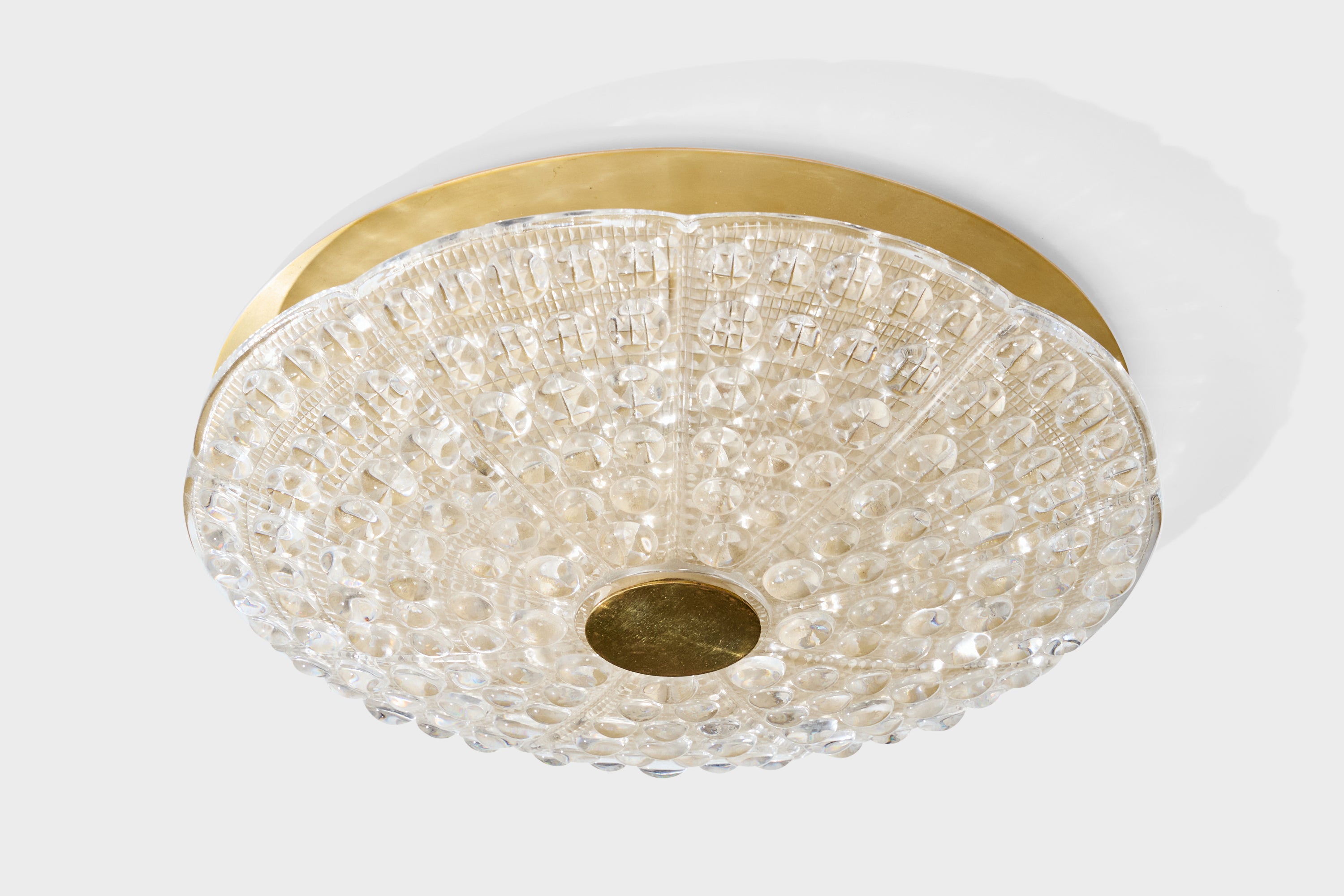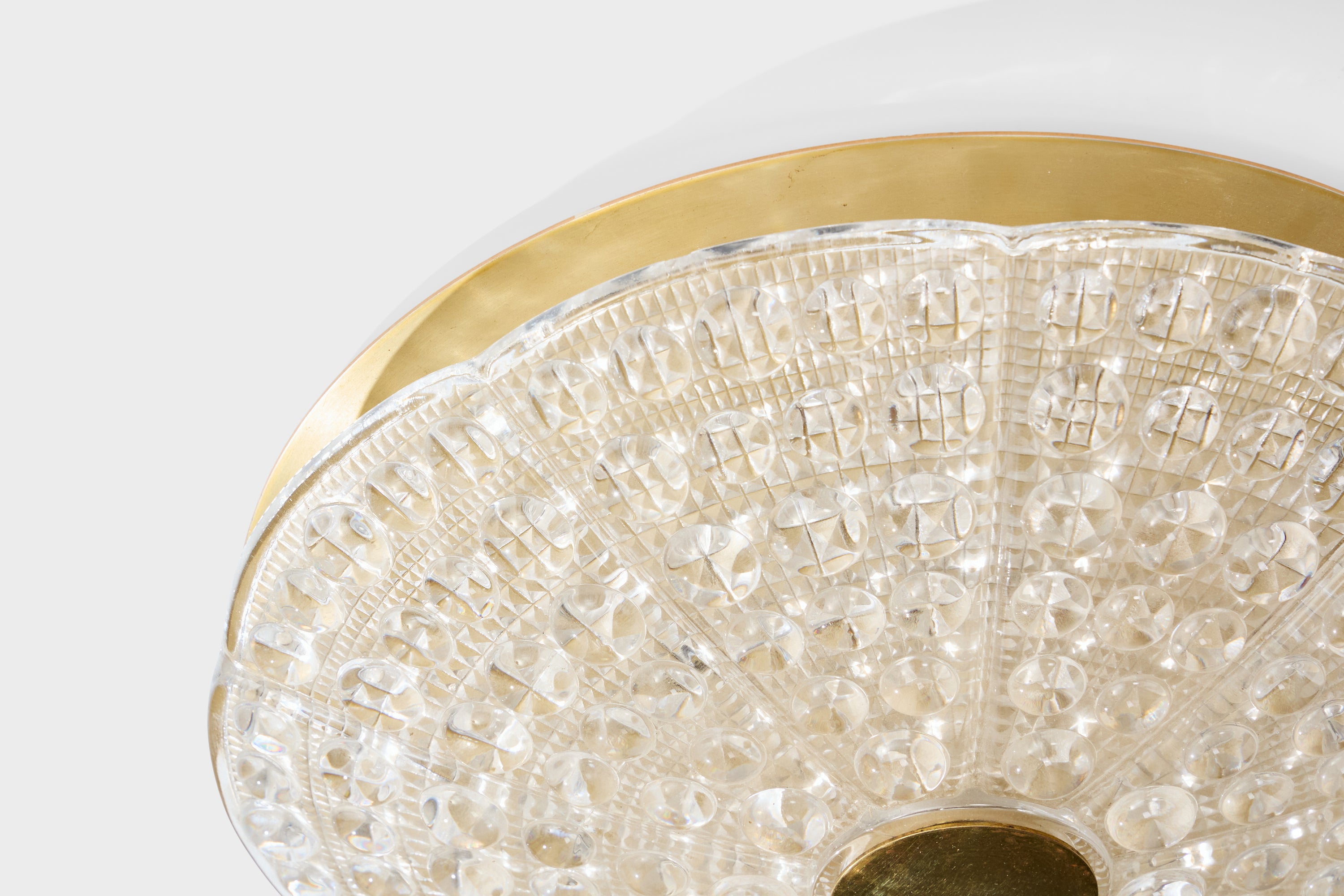 A pair of brass and glass flush mounts designed by Carl Fagerlund and produced Orrefors and Lyfa, Denmark, c. 1950s.