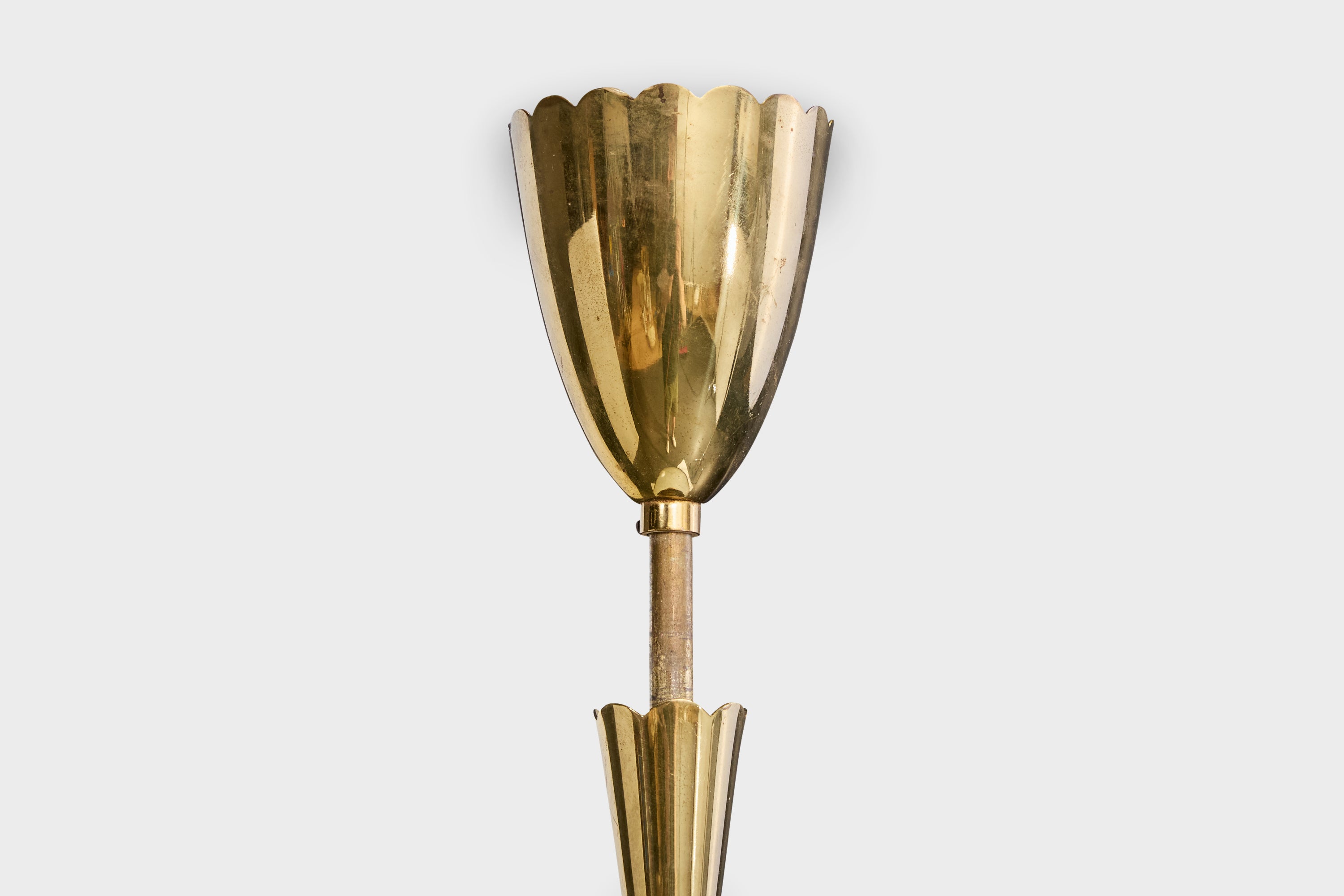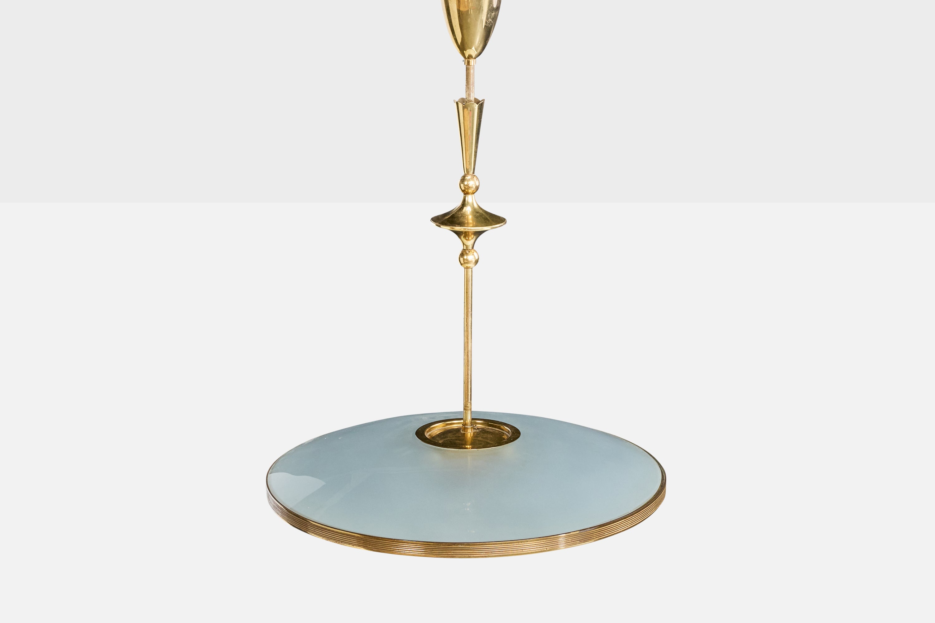 Italian Designer, Pendant Light, Brass, Glass, Italy, 1940s