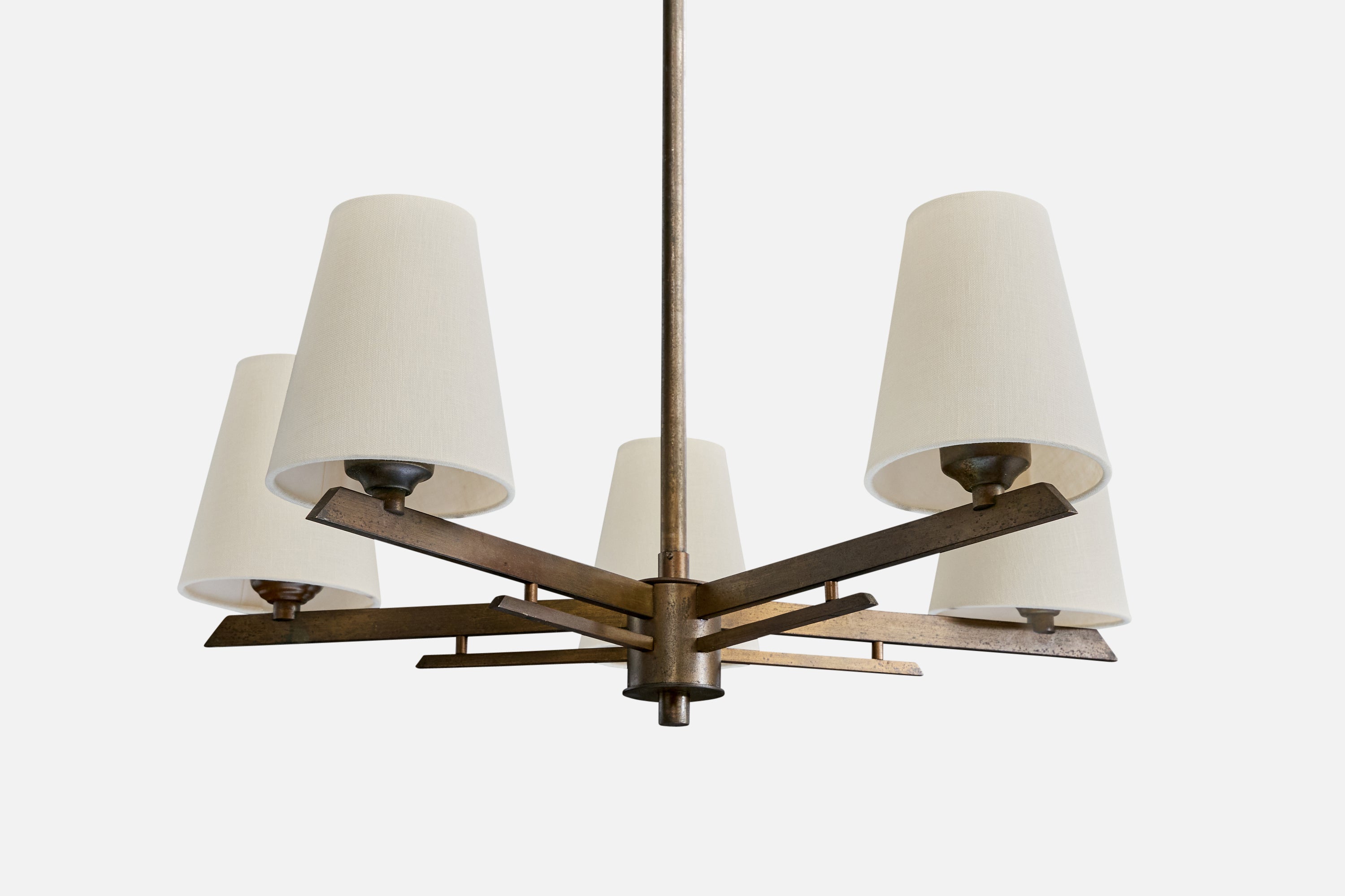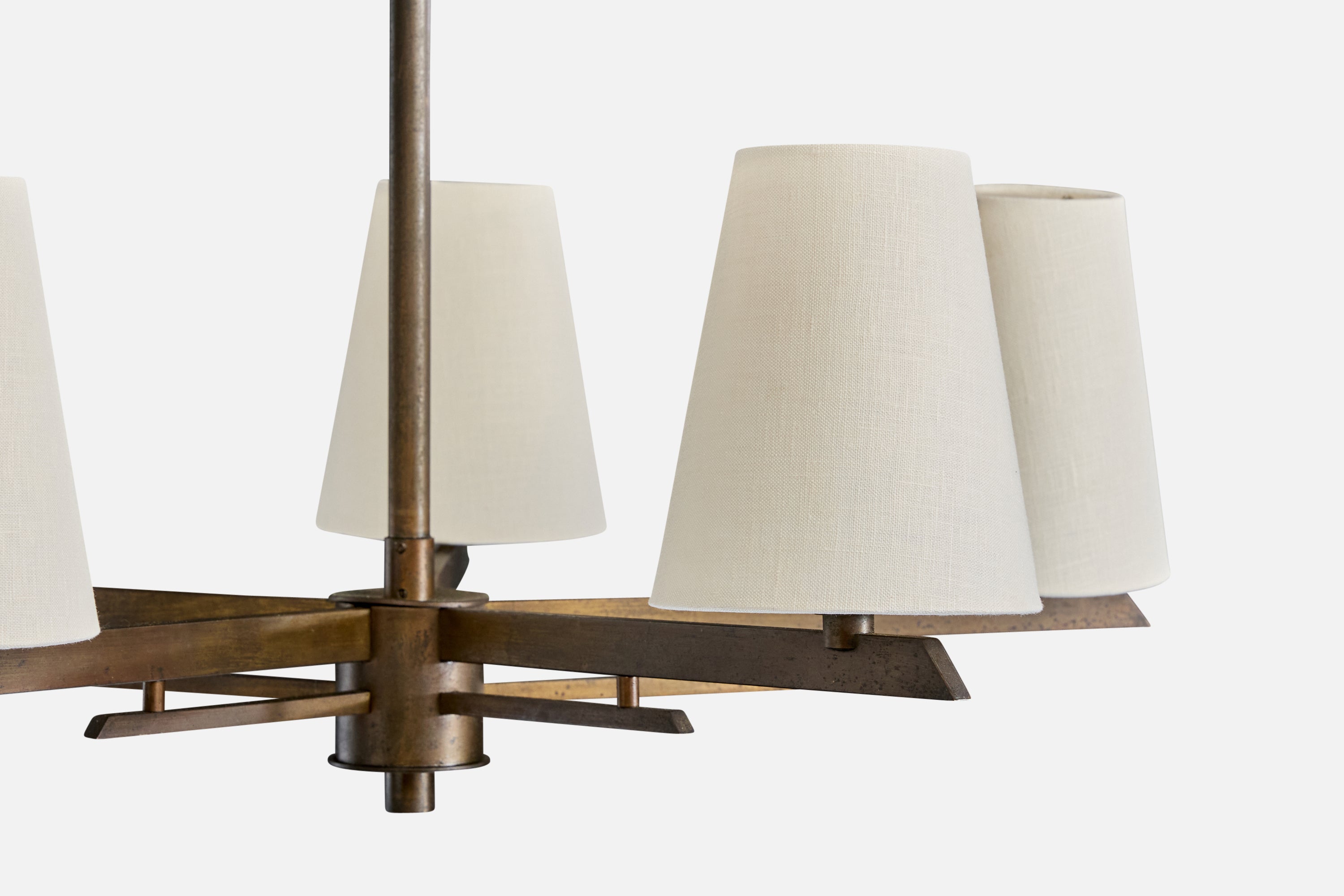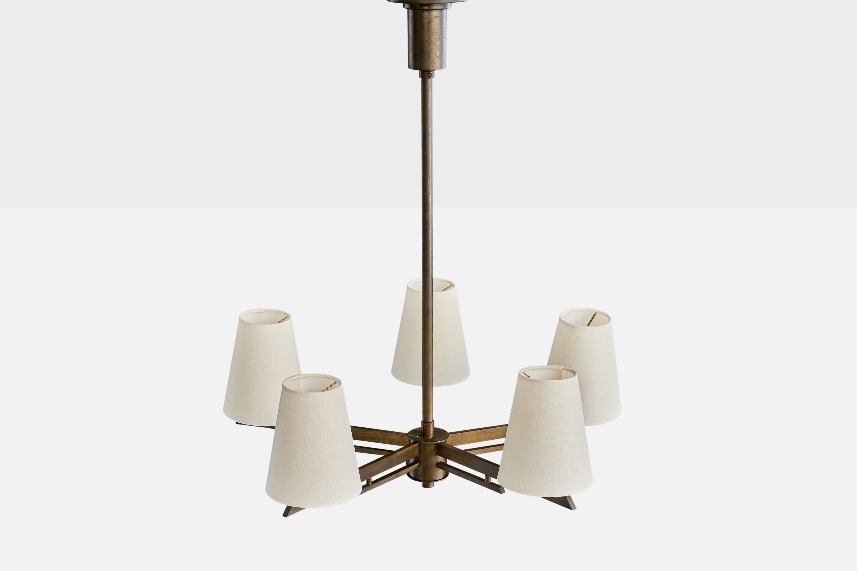 Paavo Tynell, Chandelier, Brass, Fabric, Finland, 1940s