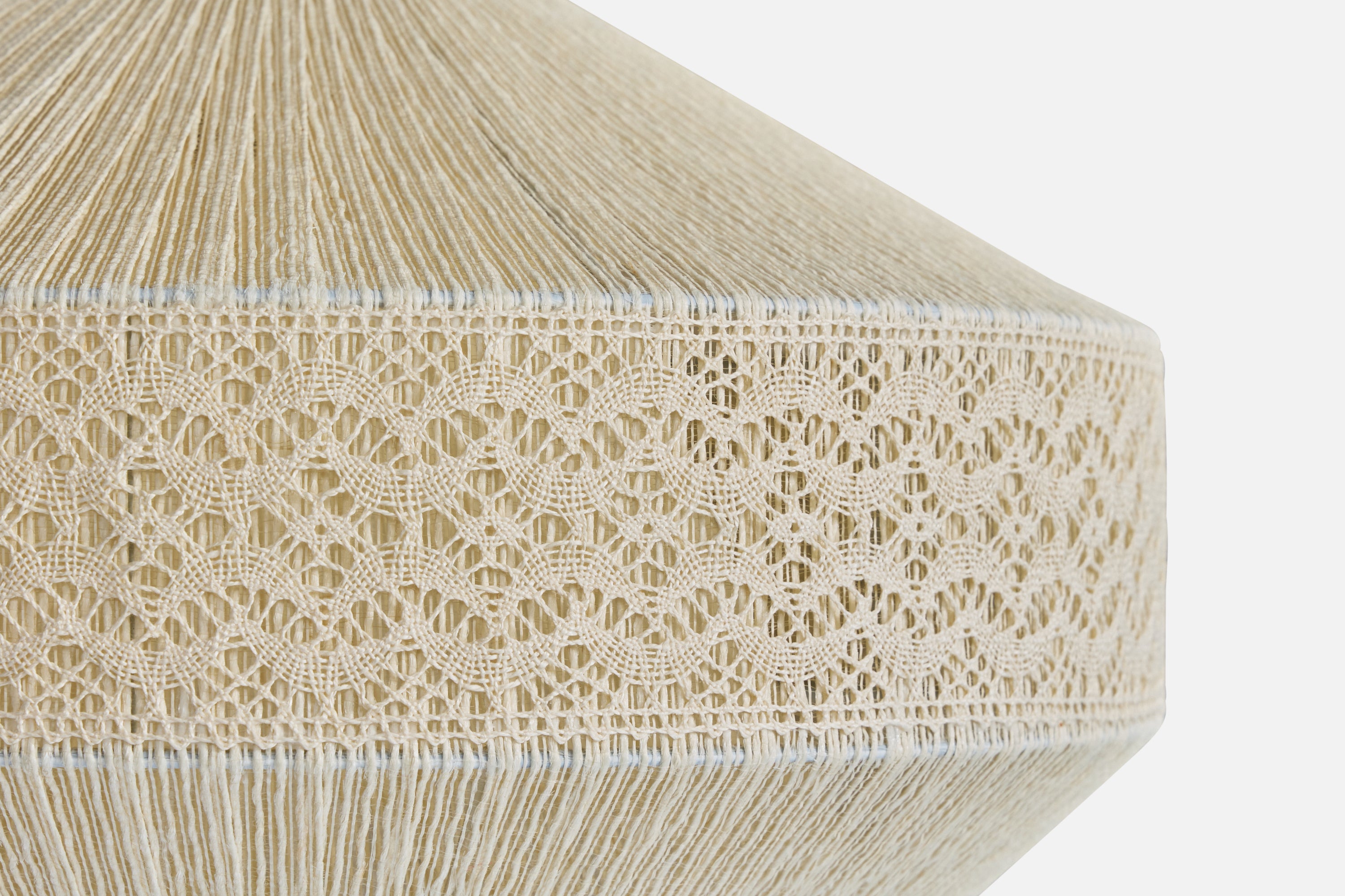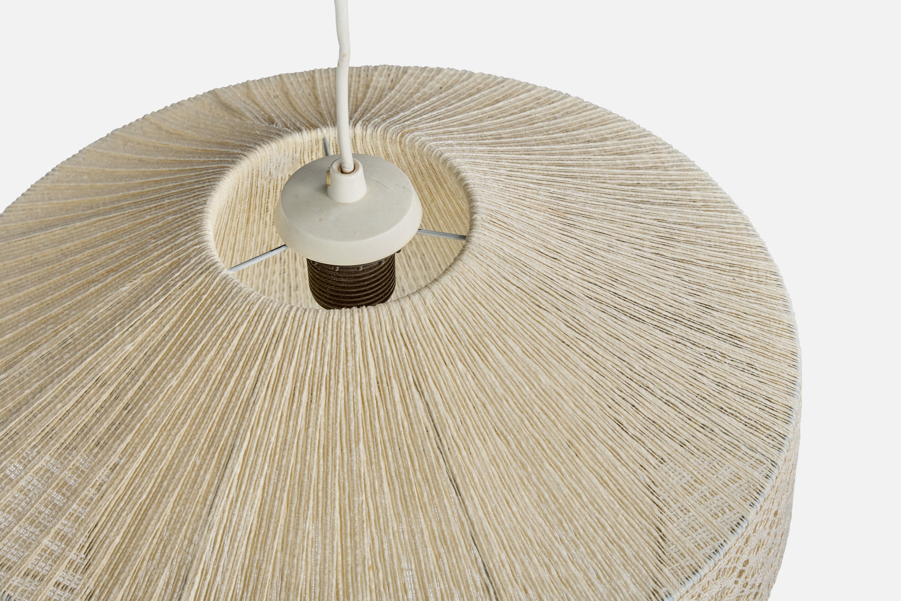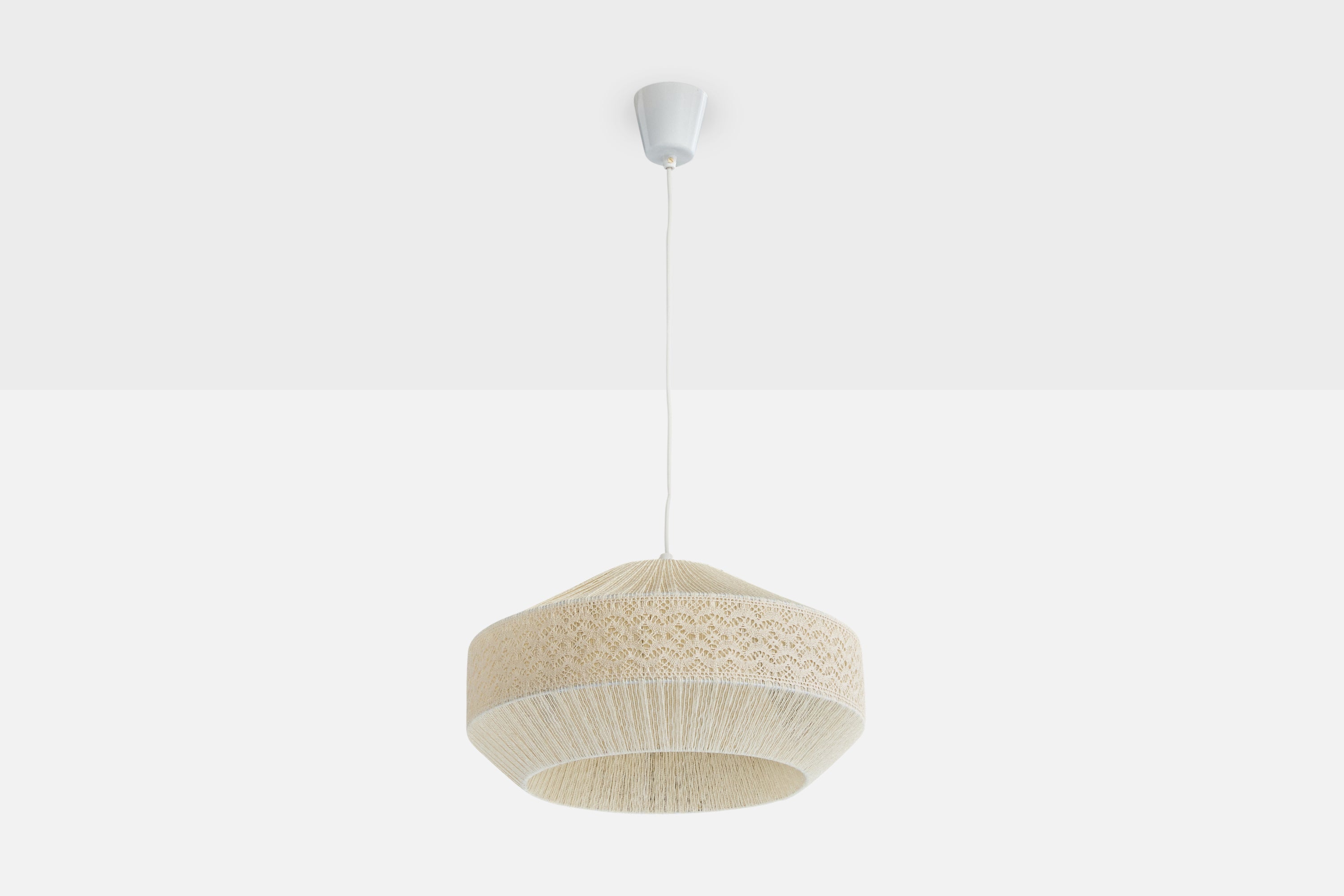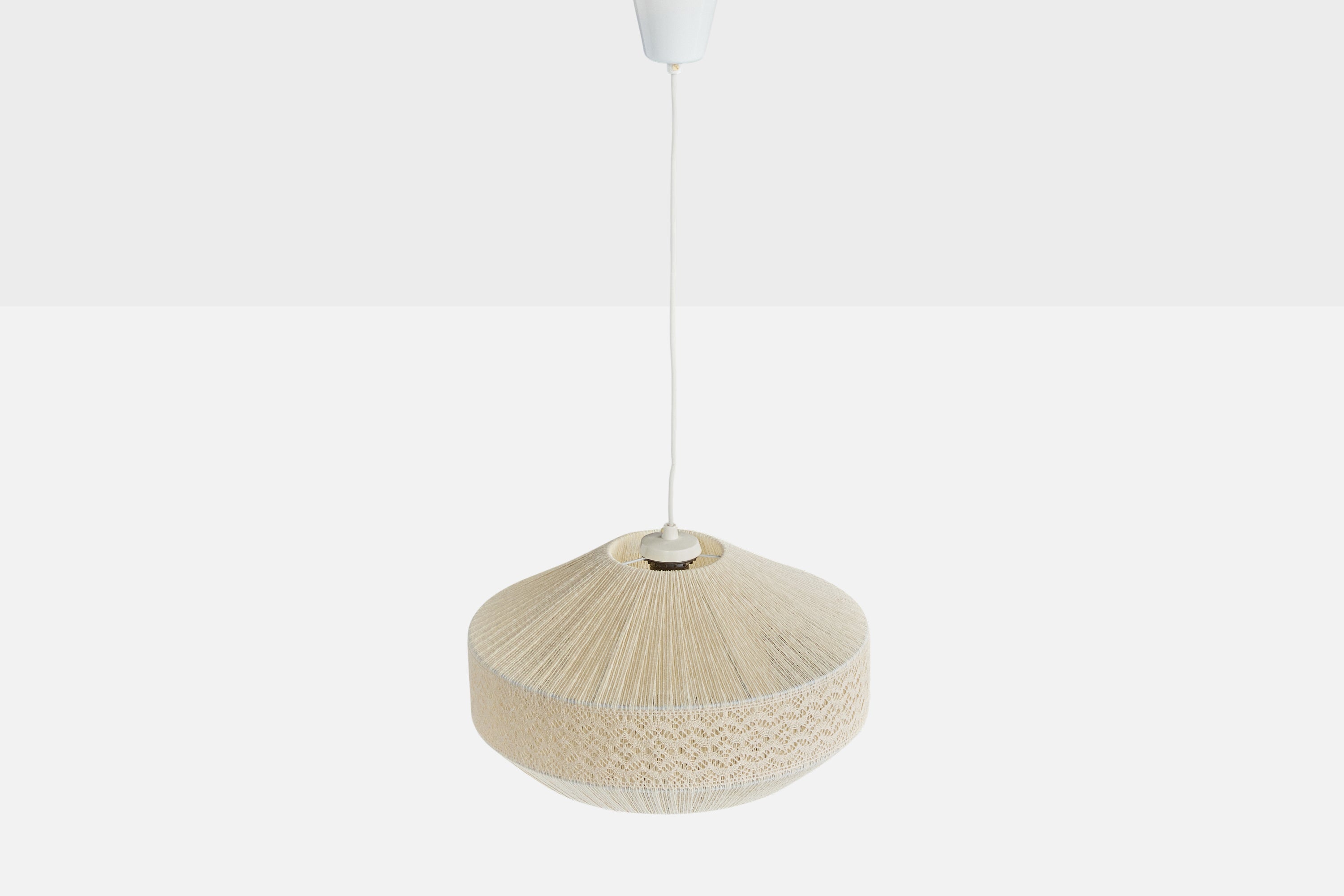 A cream-white string and embroidery fabric pendant light designed and produced in Sweden, c. 1970s.