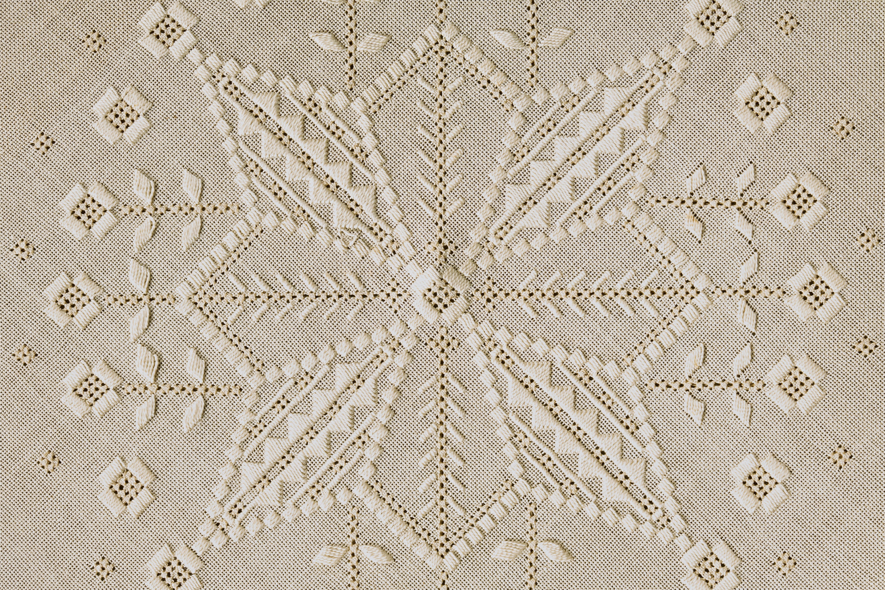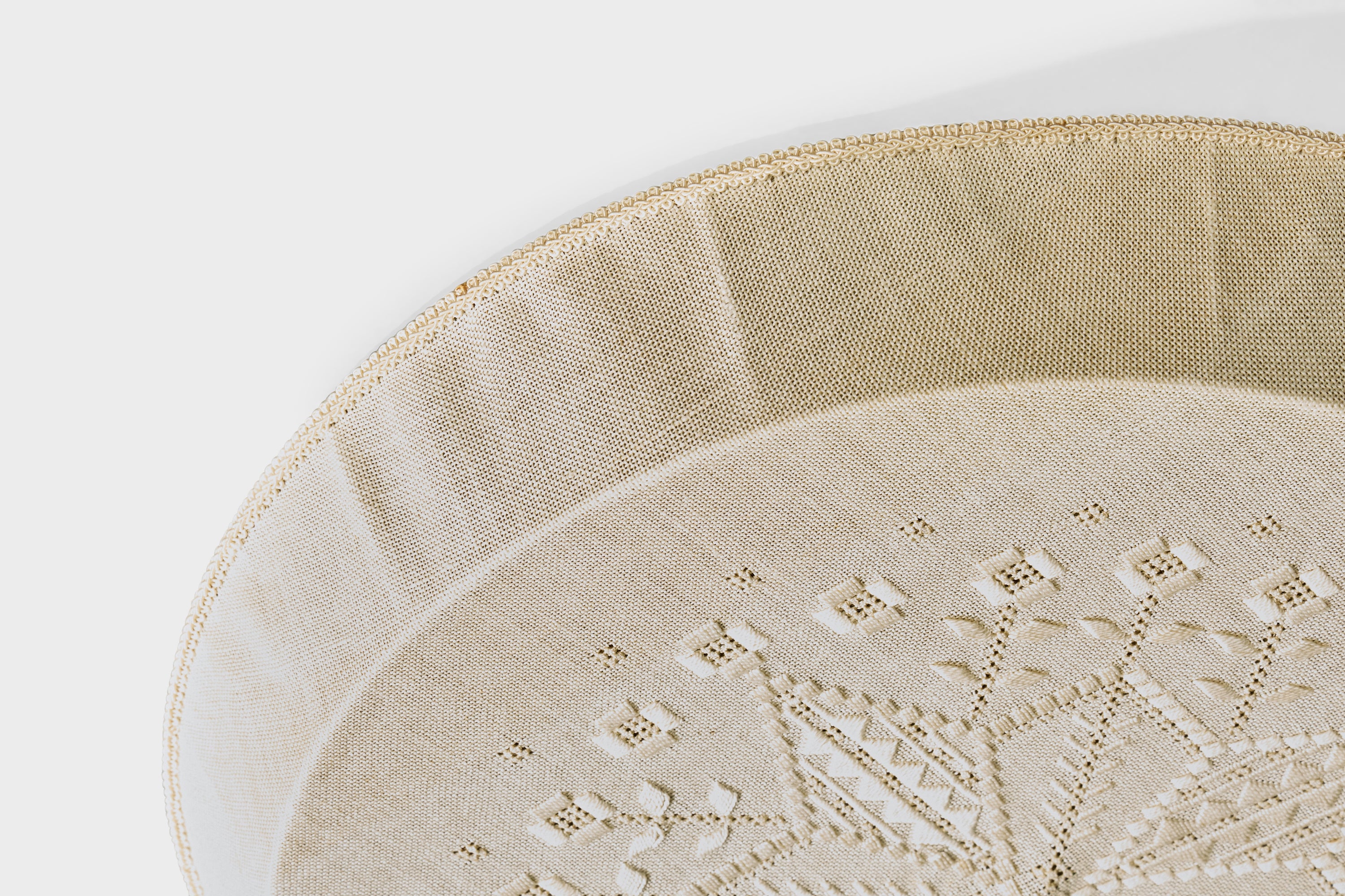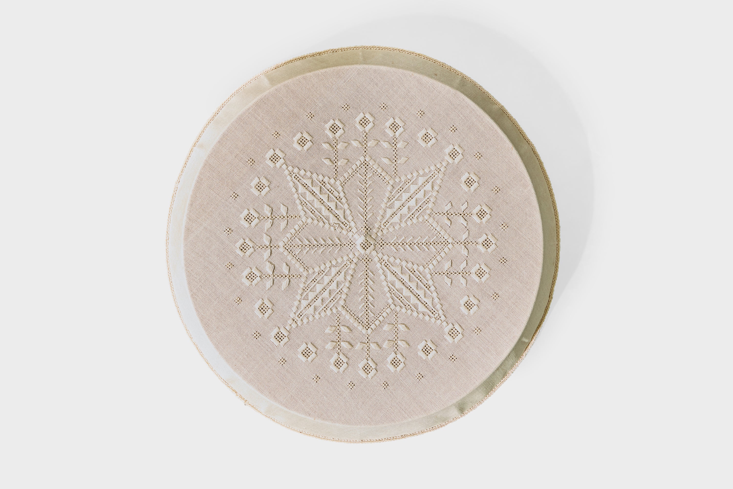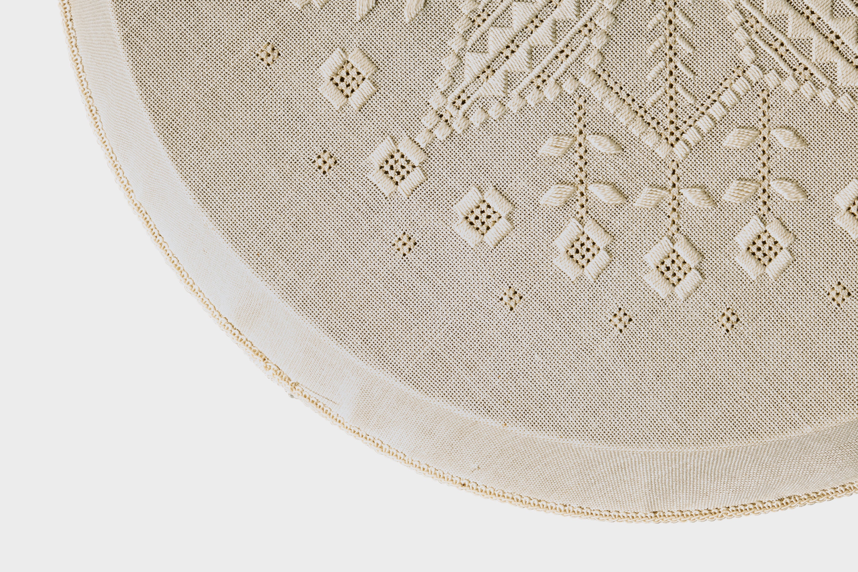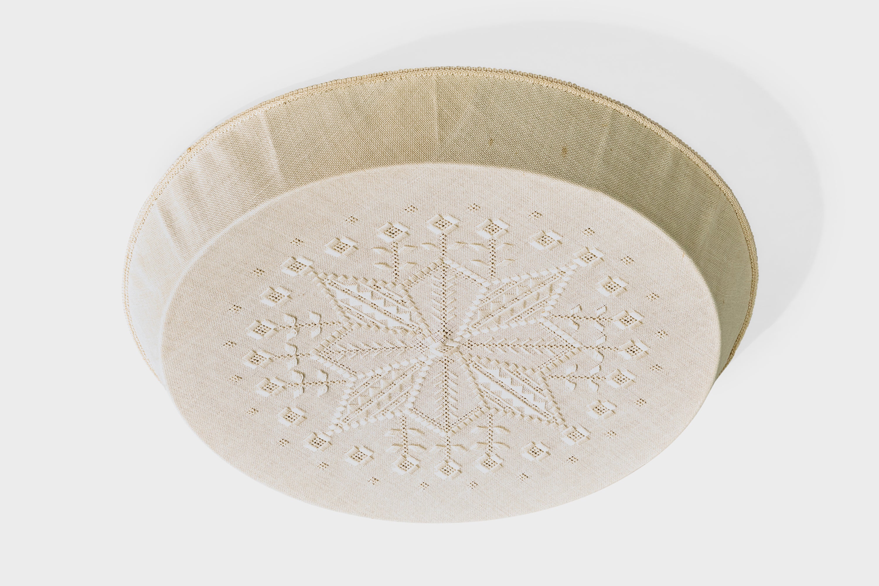 An off-white embroidery fabric flush mount designed and produced in Sweden, c. 1960s.