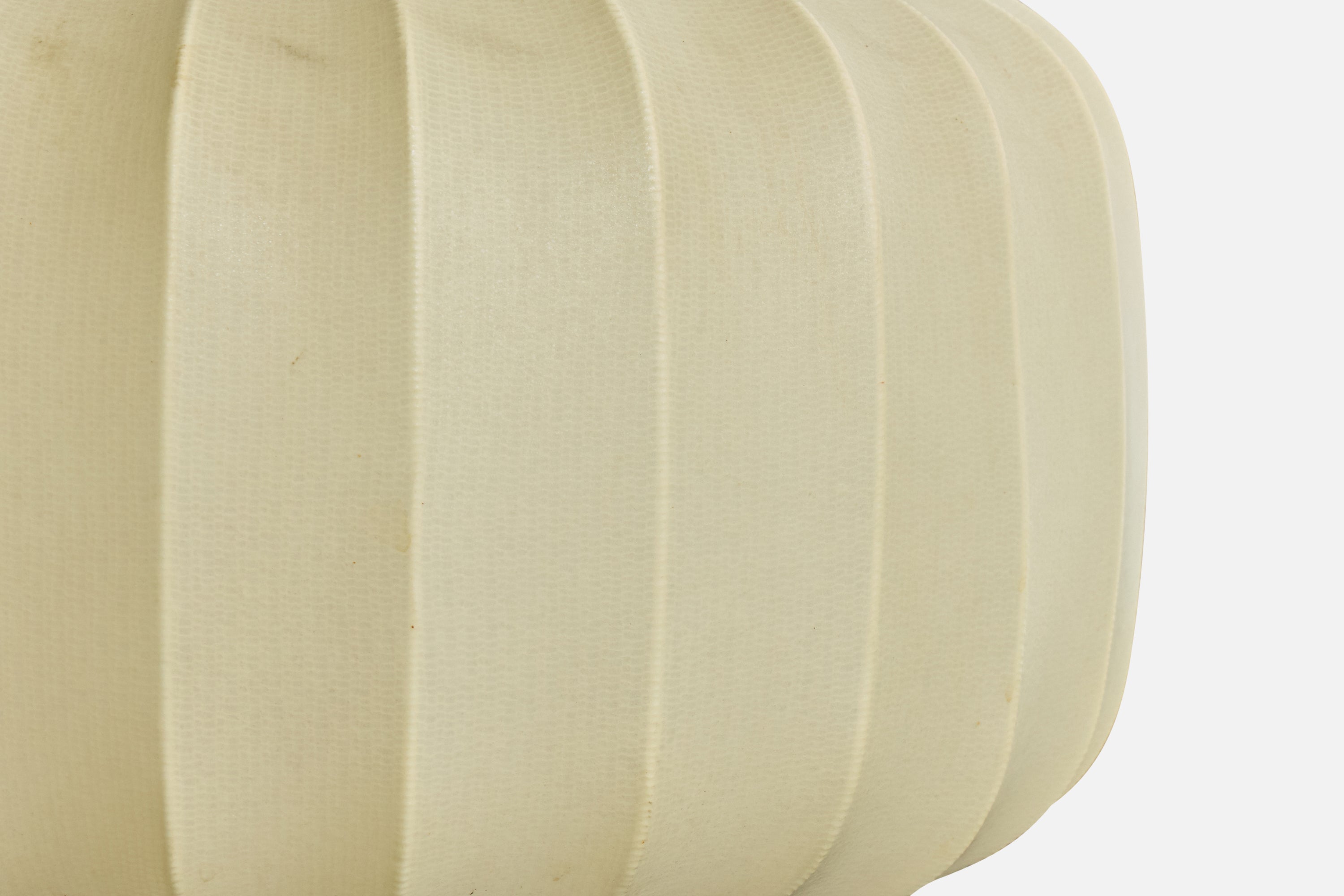 A brass and off-white resin coated fabric pendant light attributed to Josef Frank for Svenskt Tenn, Sweden, c. 1960s.