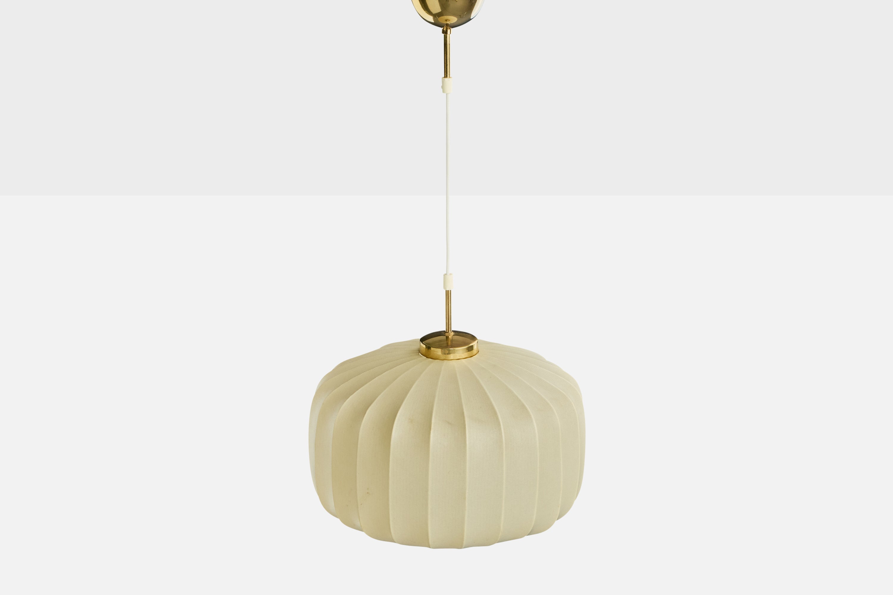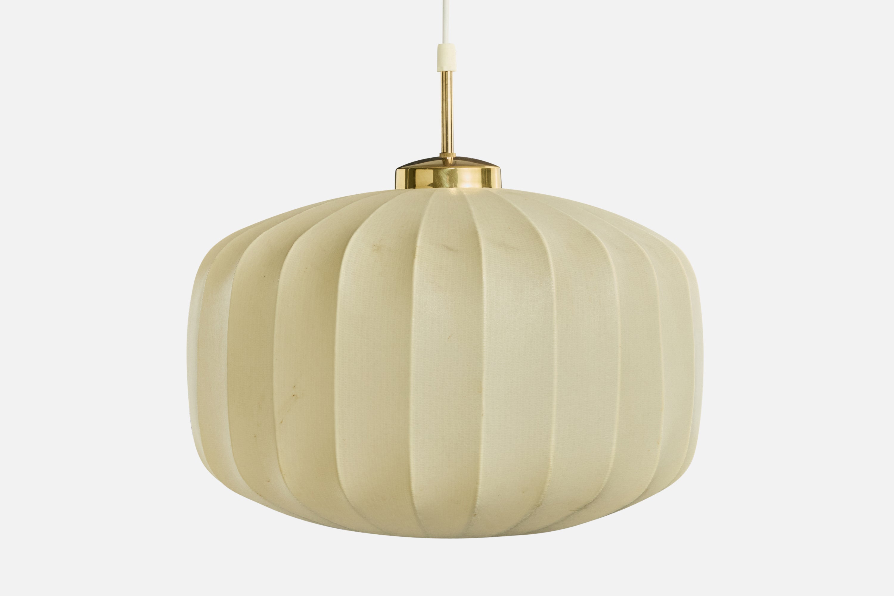 Josef Frank Attribution, Pendant Light, Brass, Fabric, Resin, Sweden, 1960s