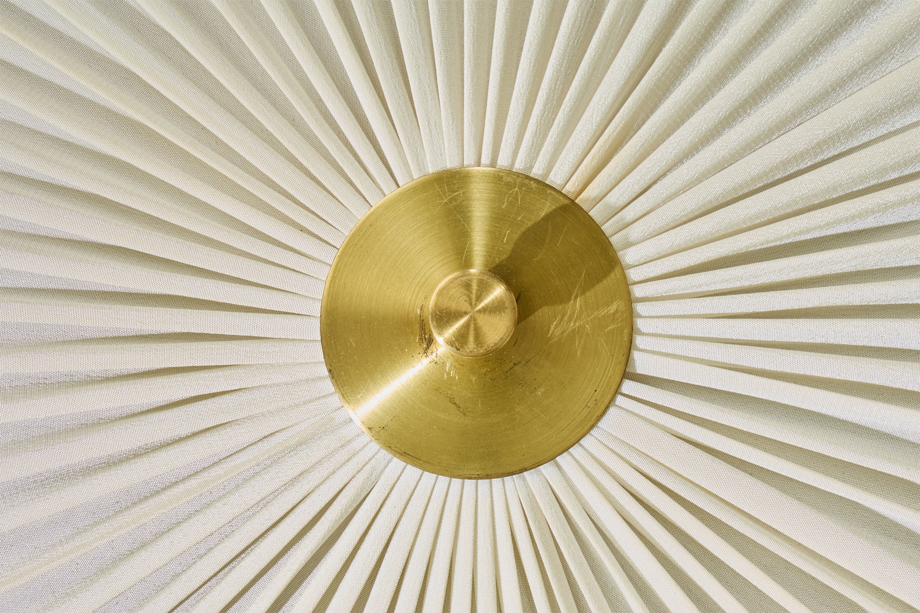 A brass and white fabric flush mount designed and produced in Sweden, c. 1960s.