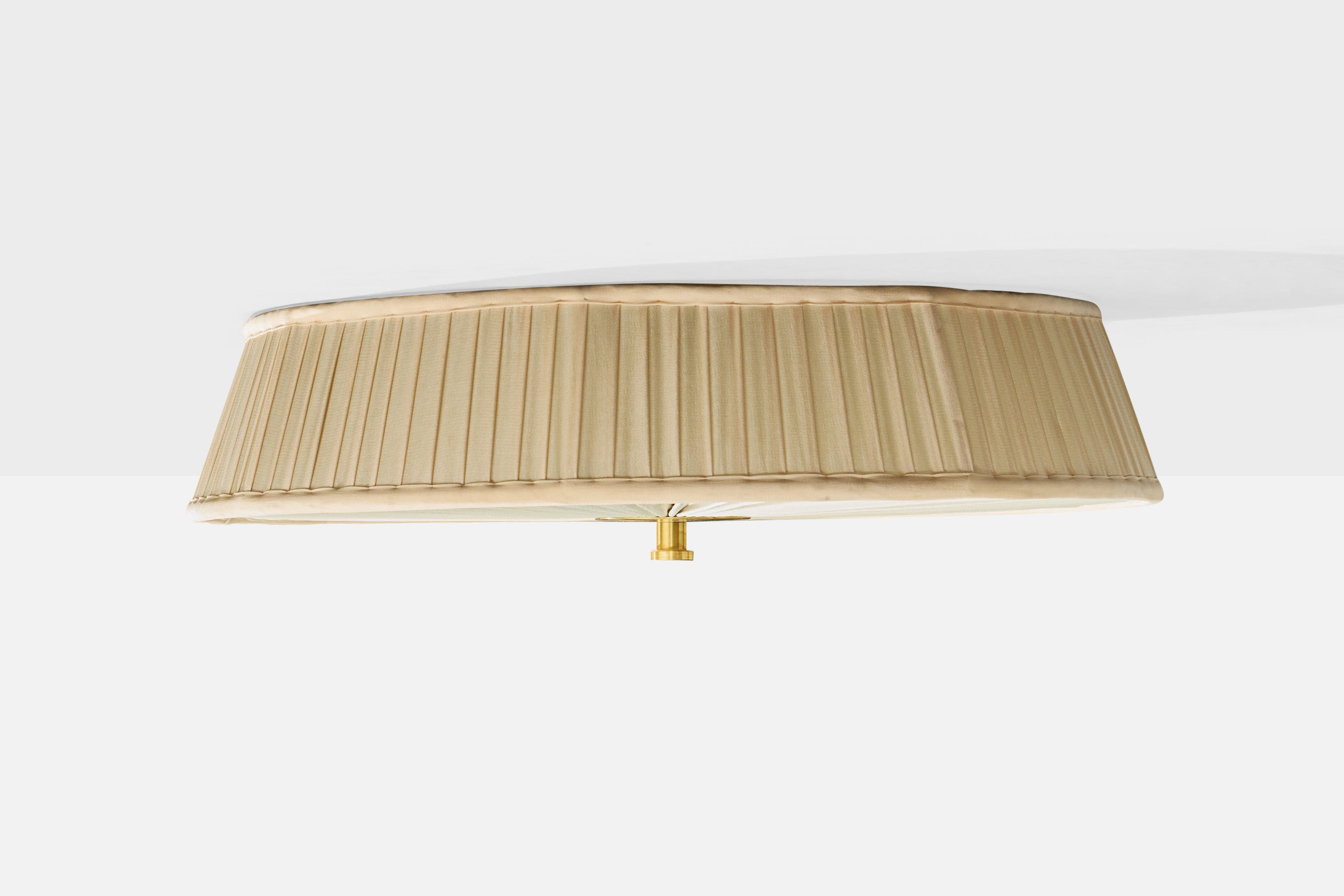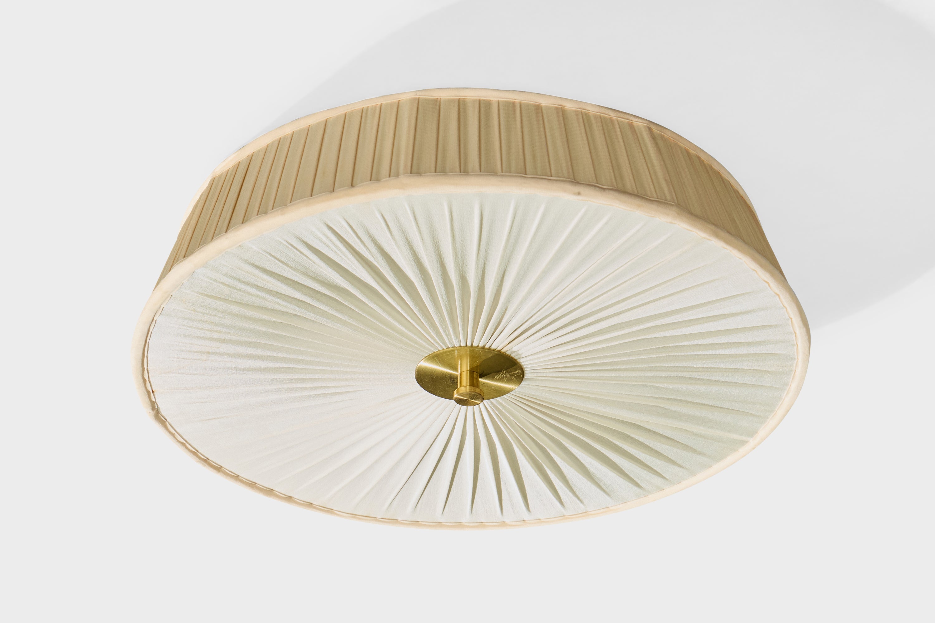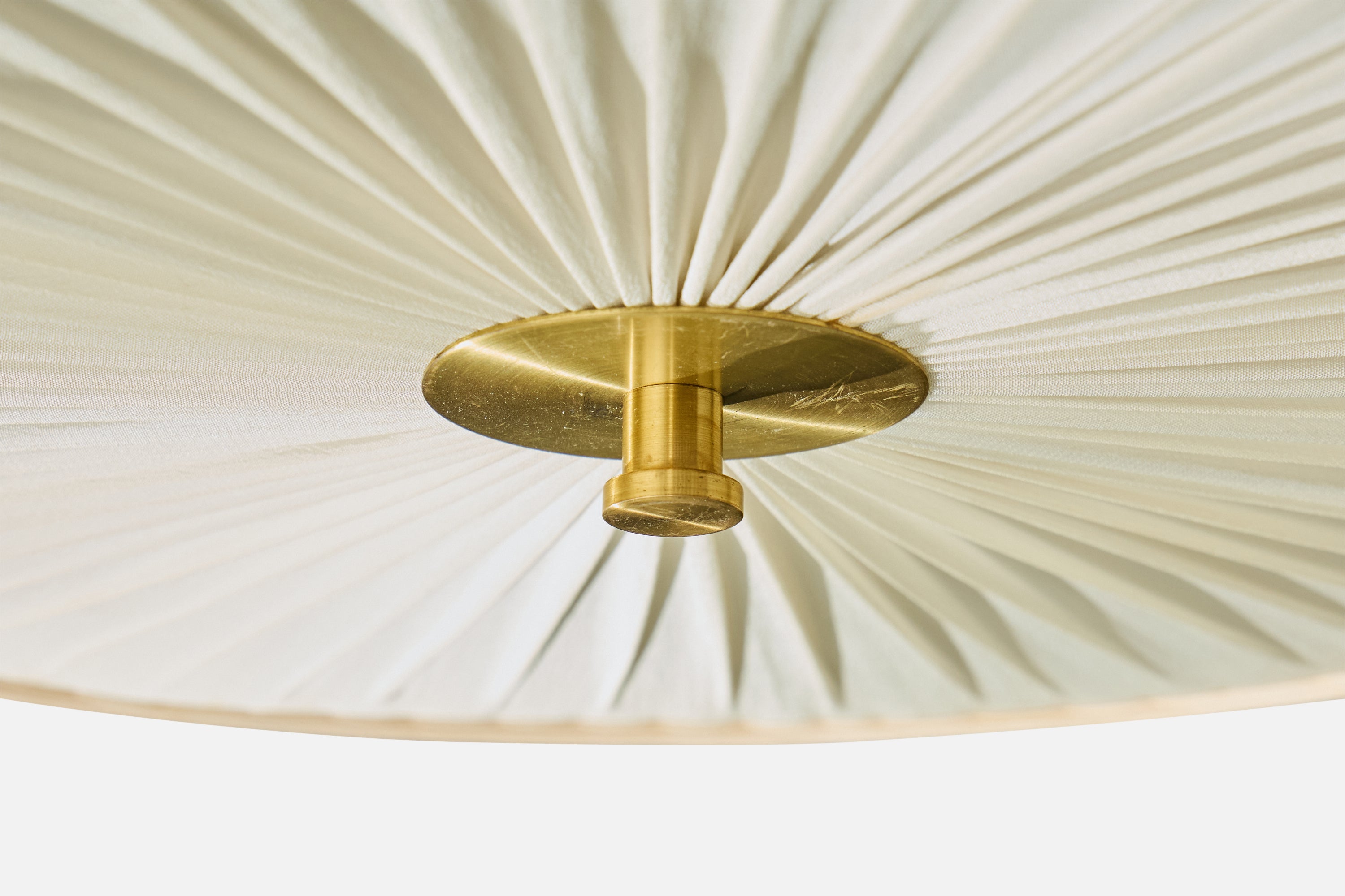 Swedish Designer, Flush Mount, Fabric, Brass, Sweden, 1960s