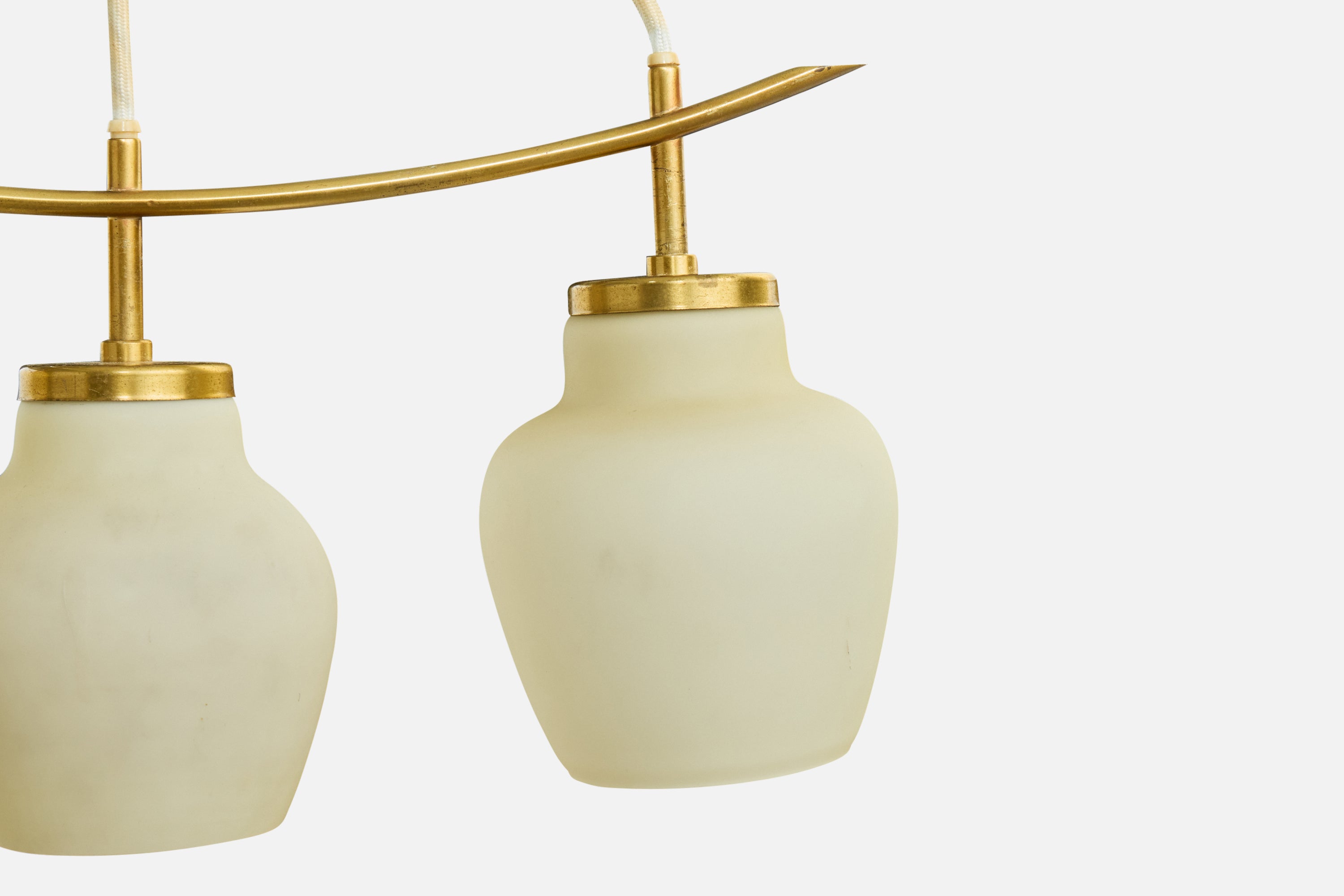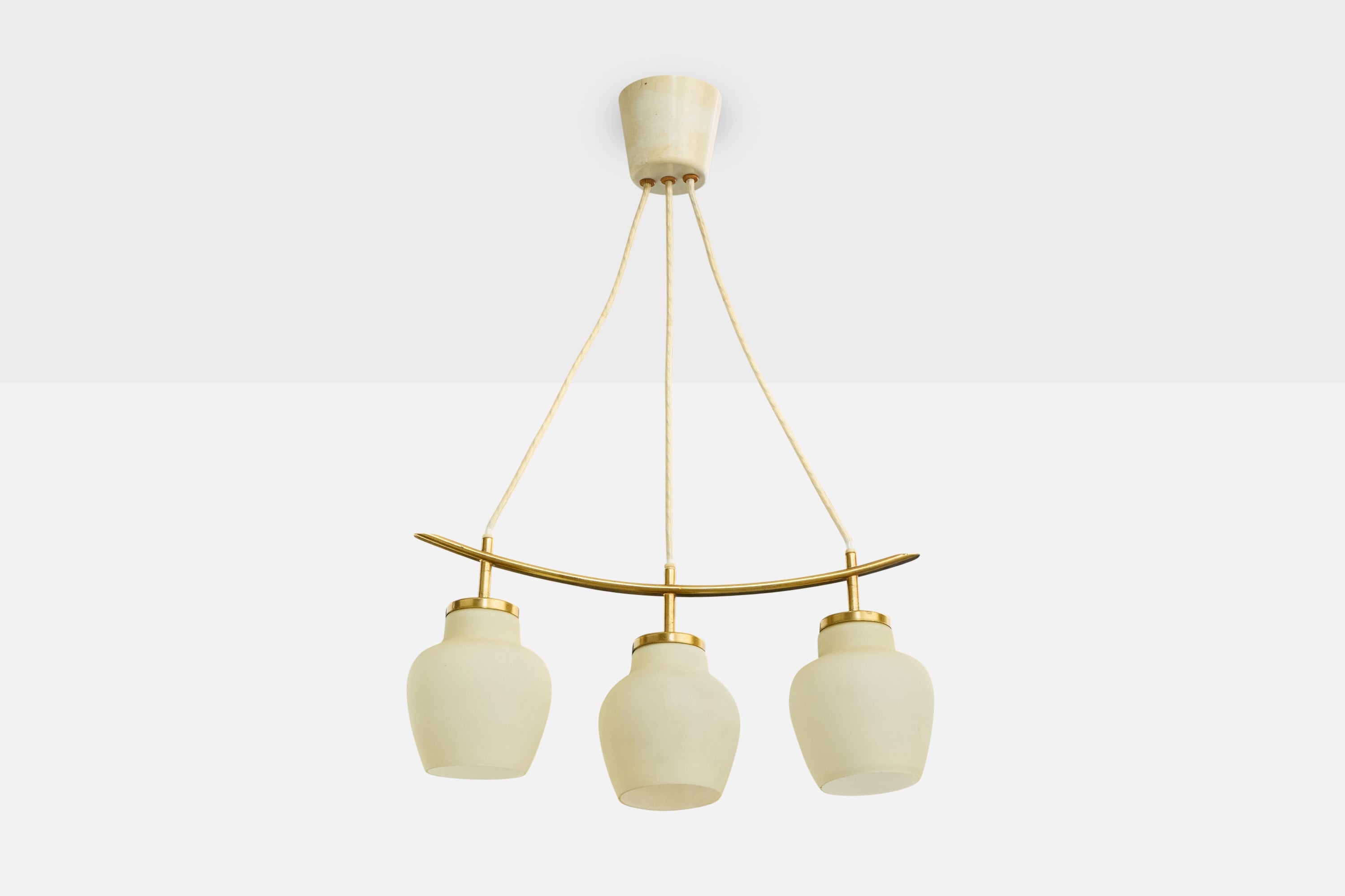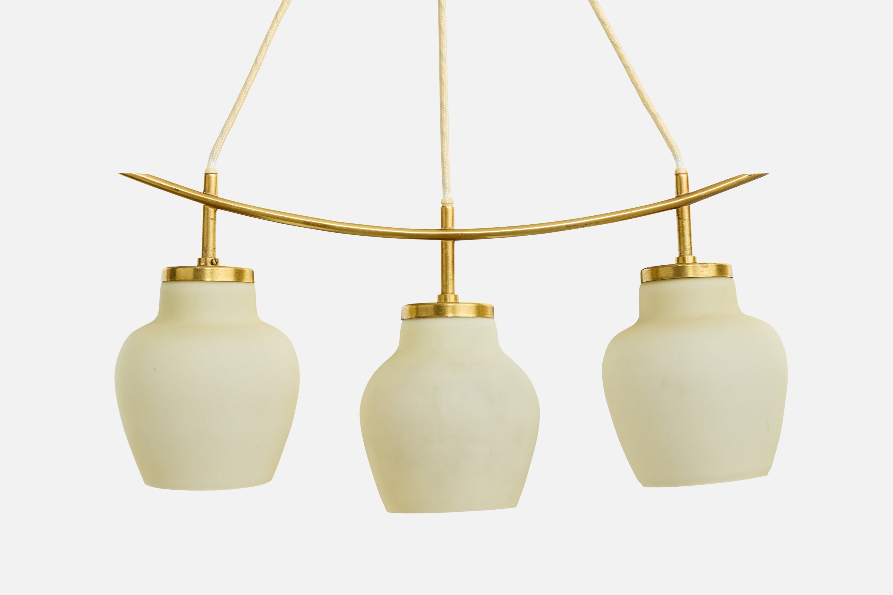 A brass and white opaline glass chandelier designed and produced in Denmark, c. 1950s.