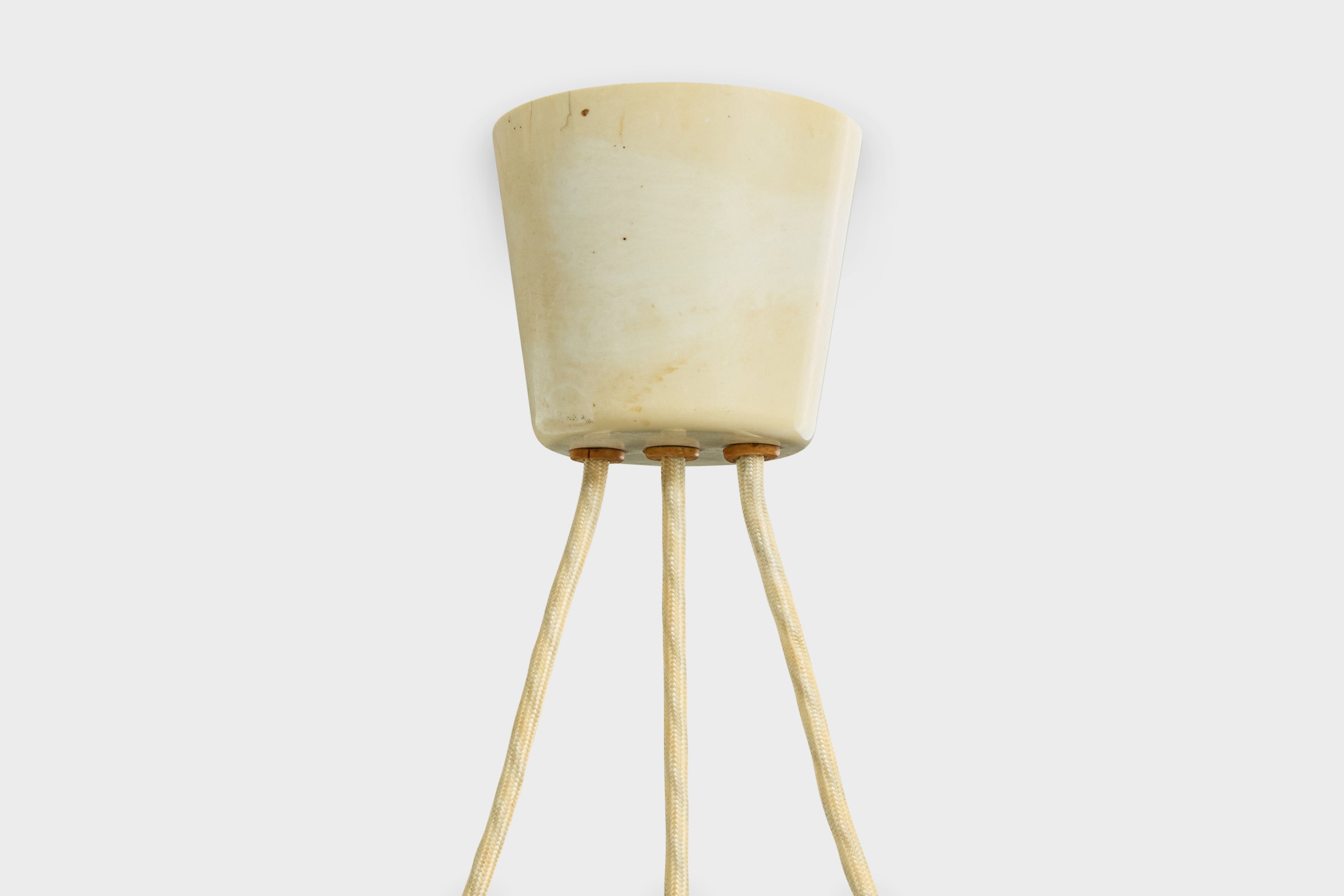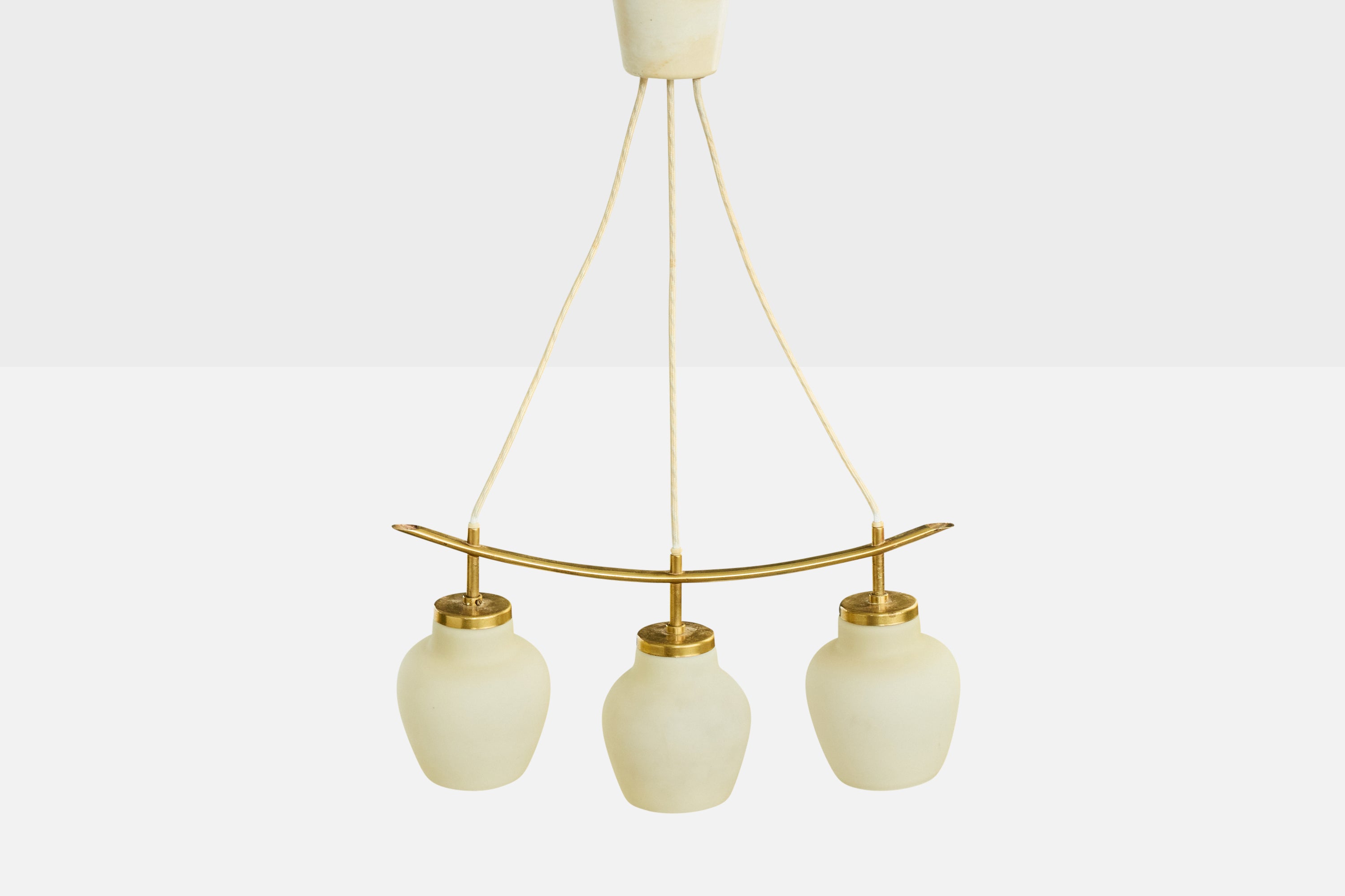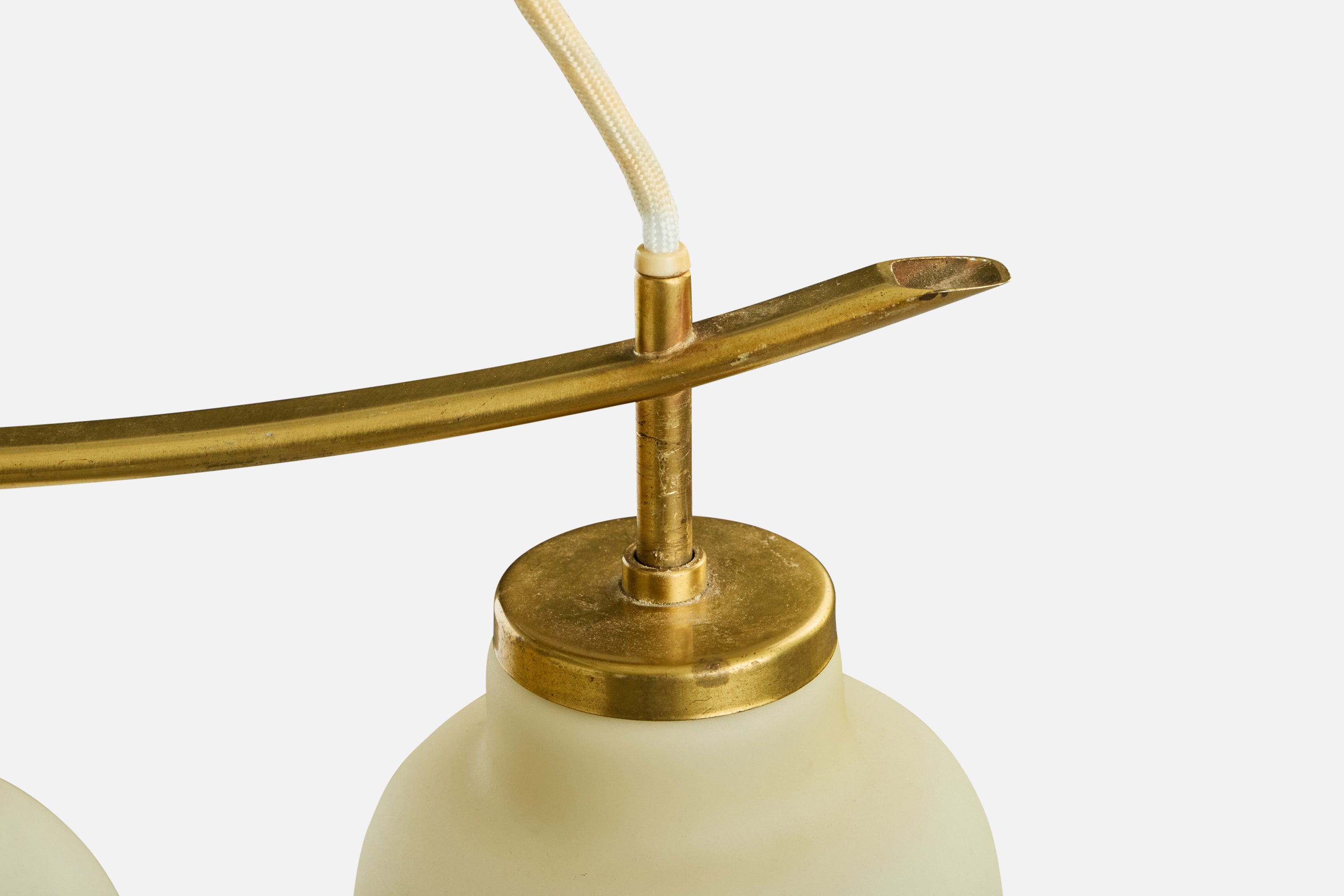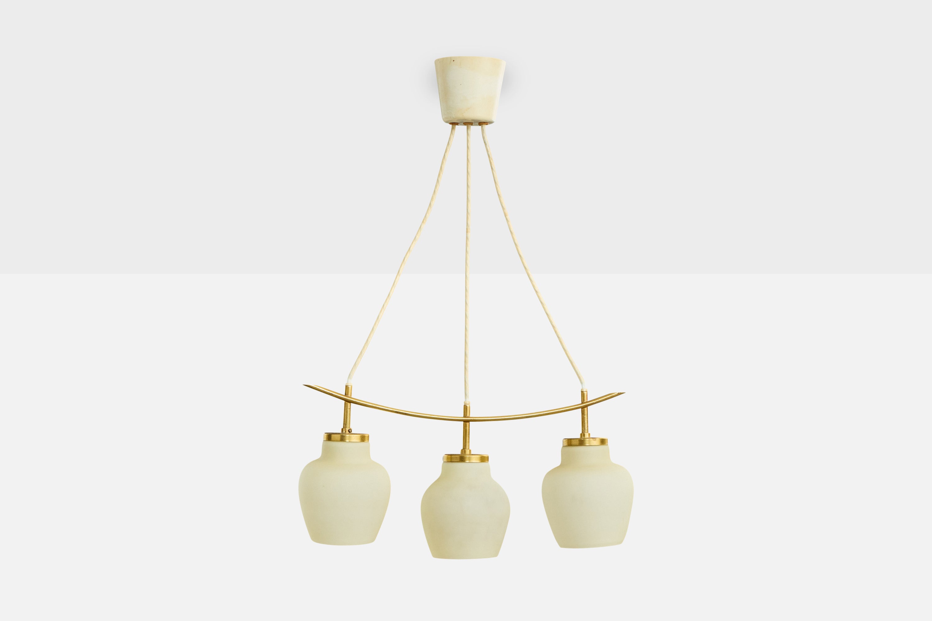 A brass and white opaline glass chandelier designed and produced in Denmark, c. 1950s.