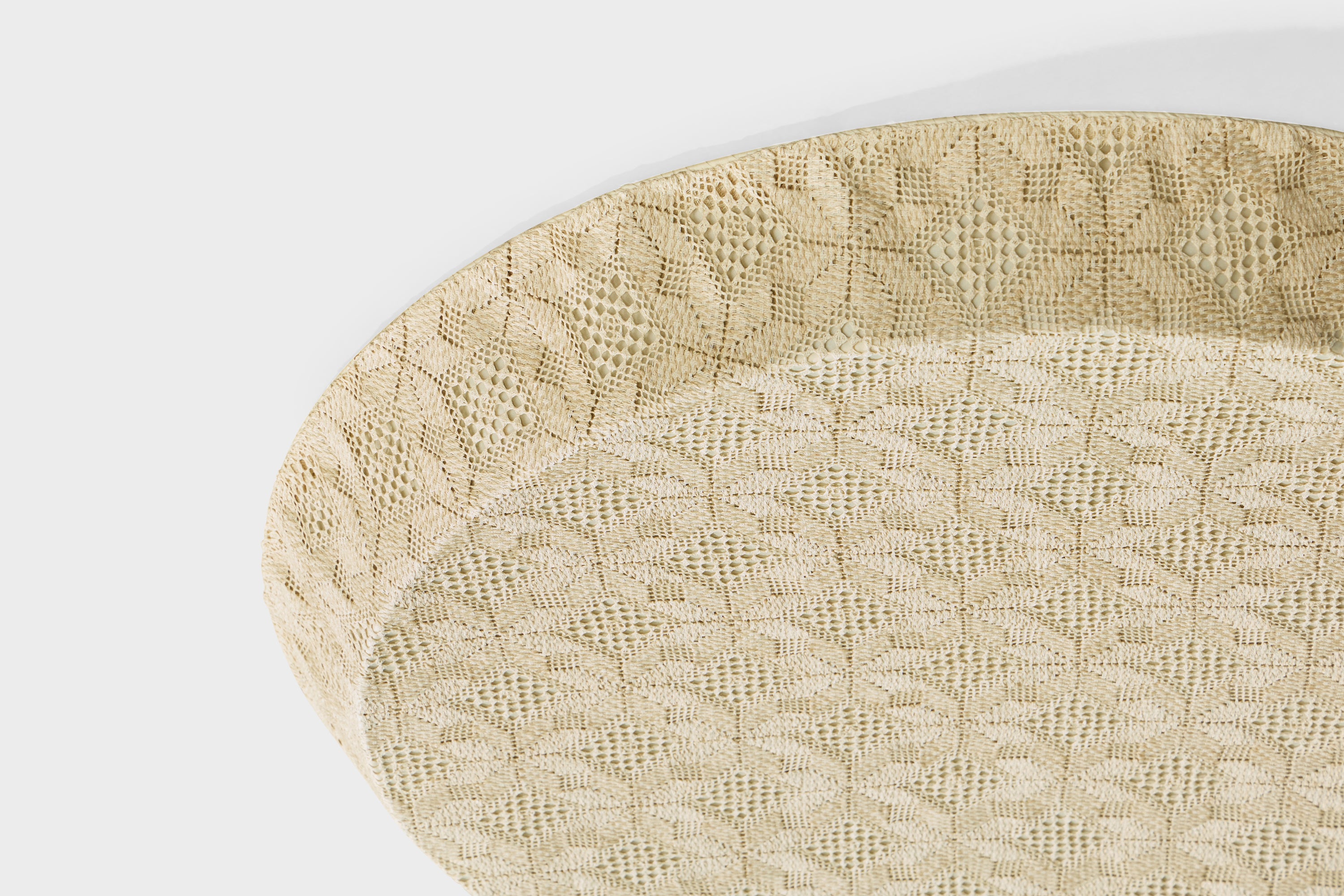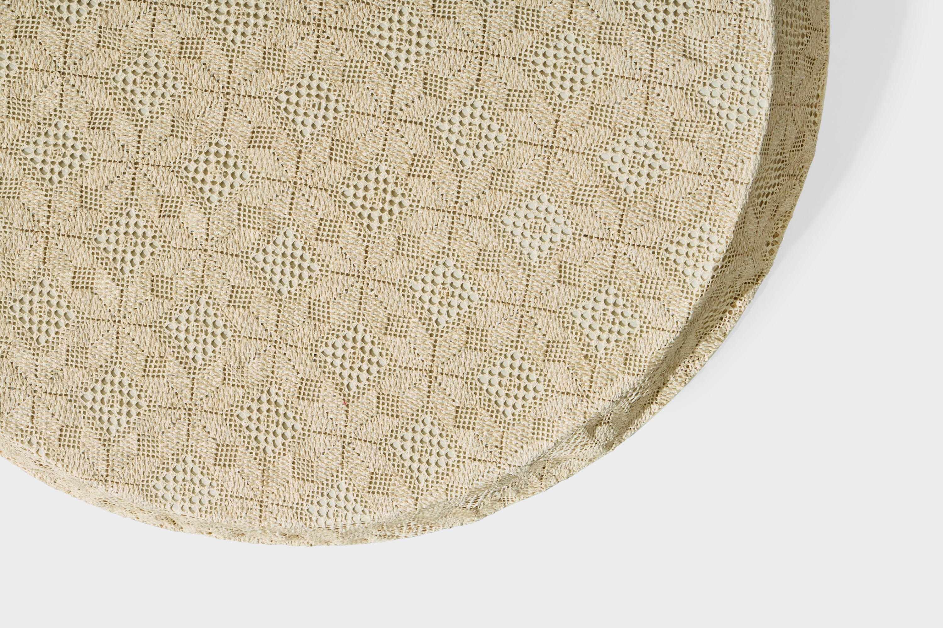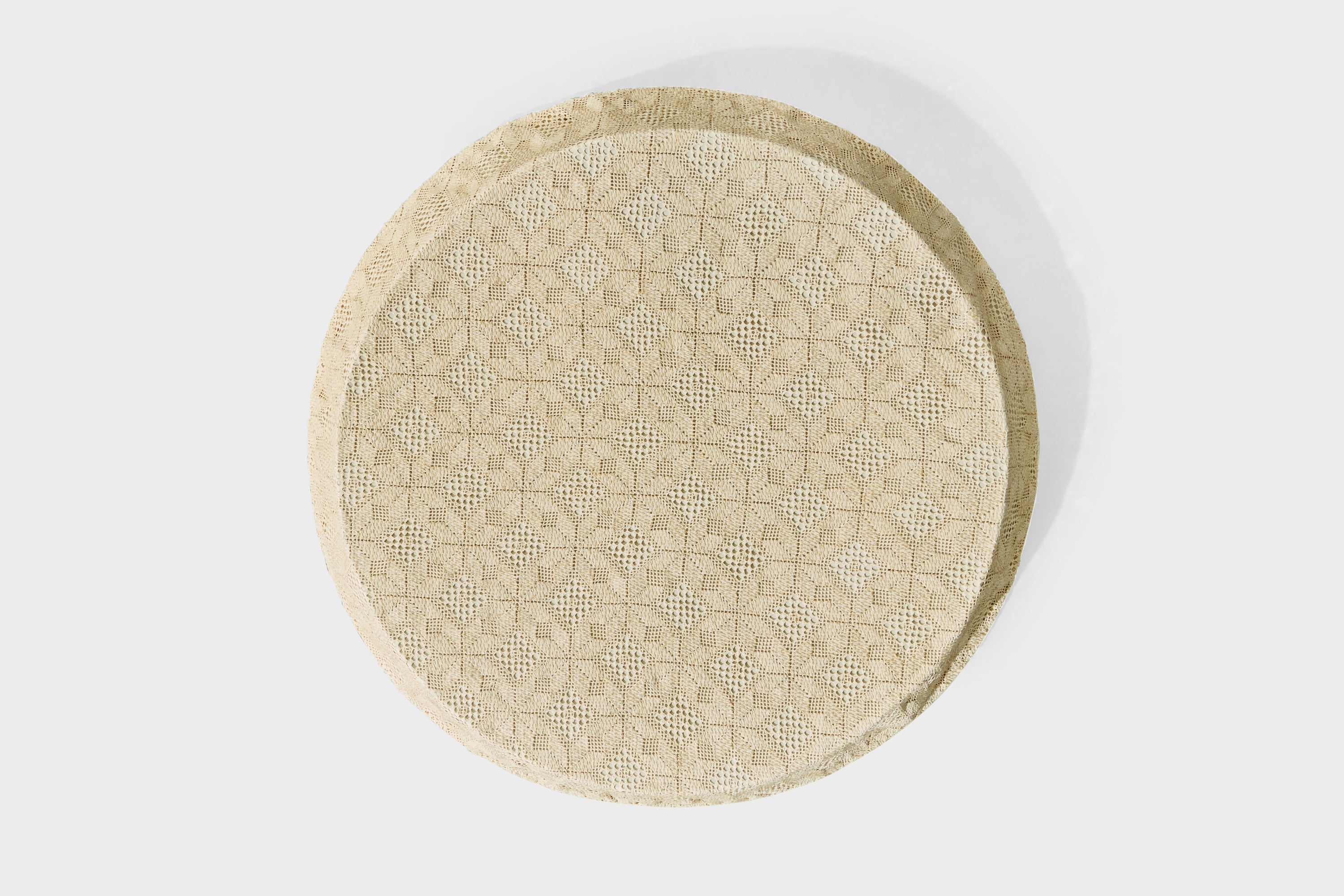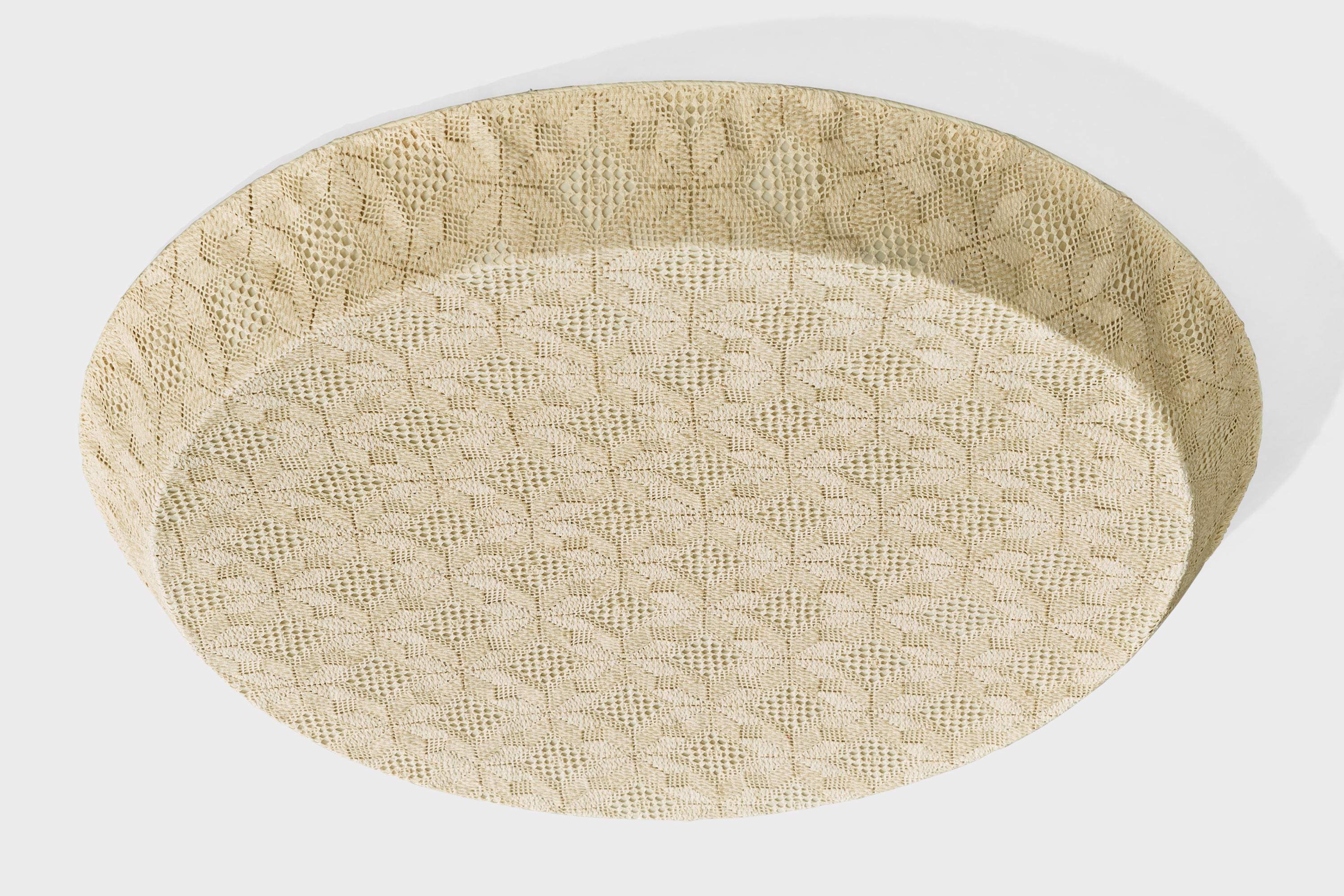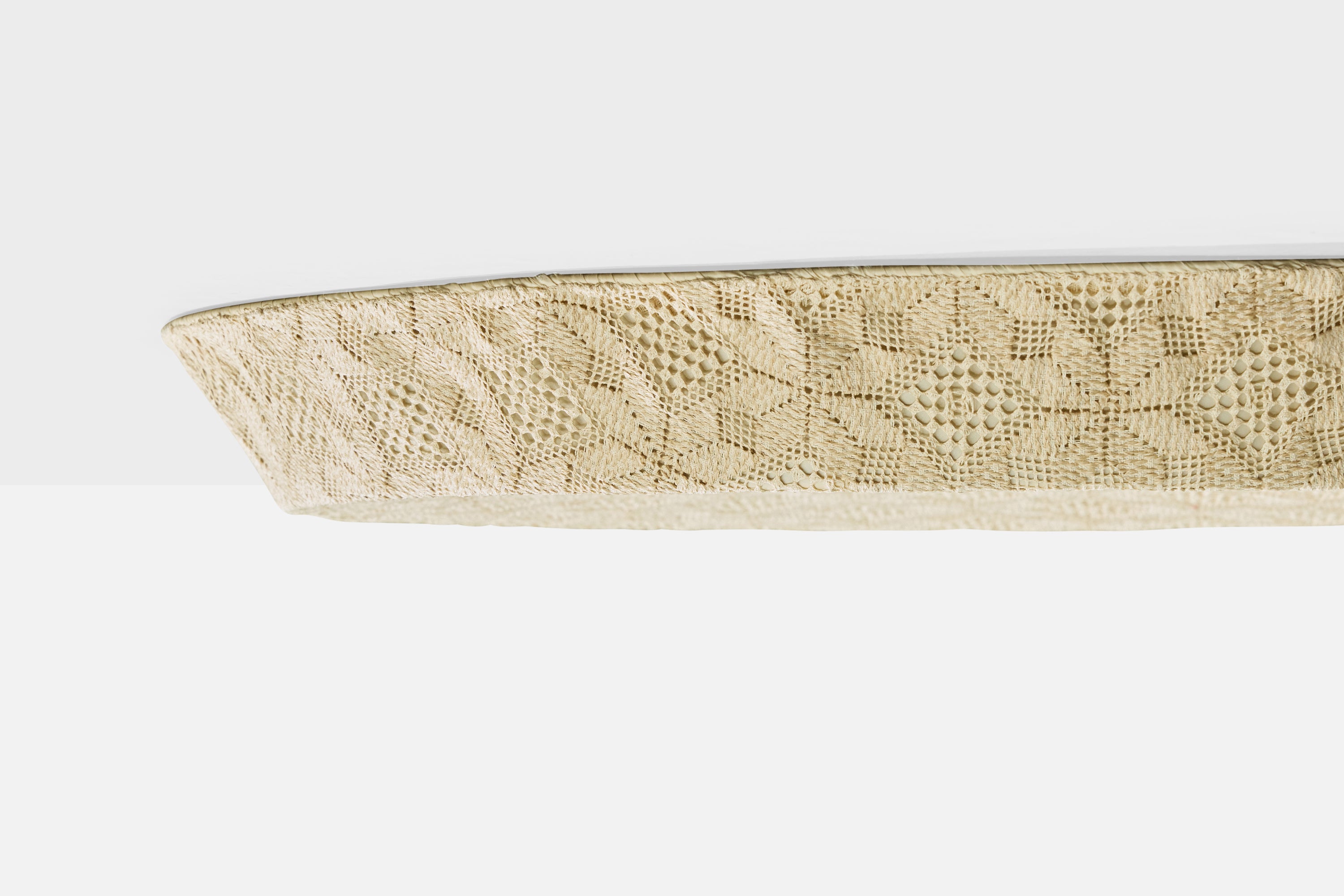 A beige embroidery fabric flush mount designed and produced in Sweden, c. 1960s.