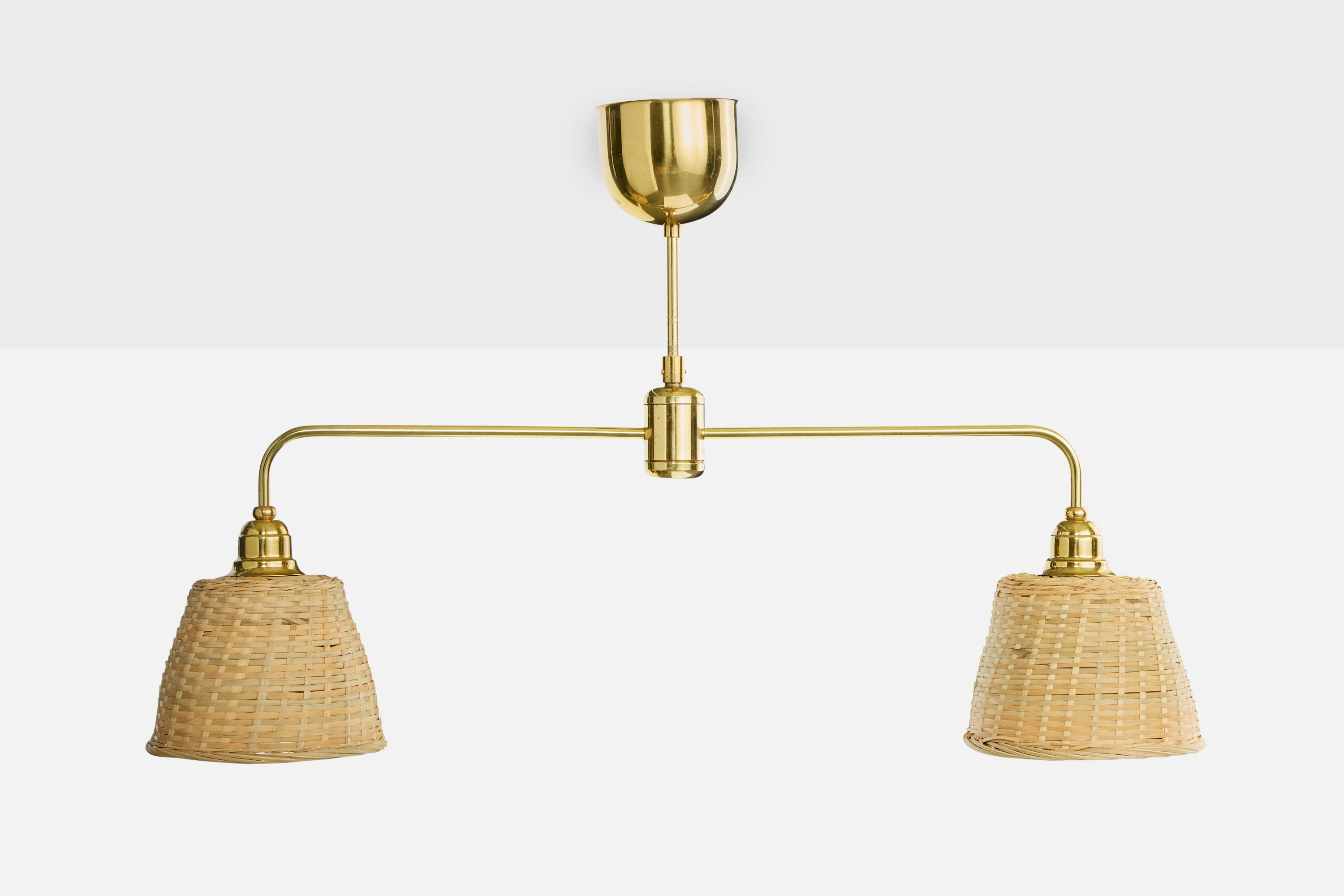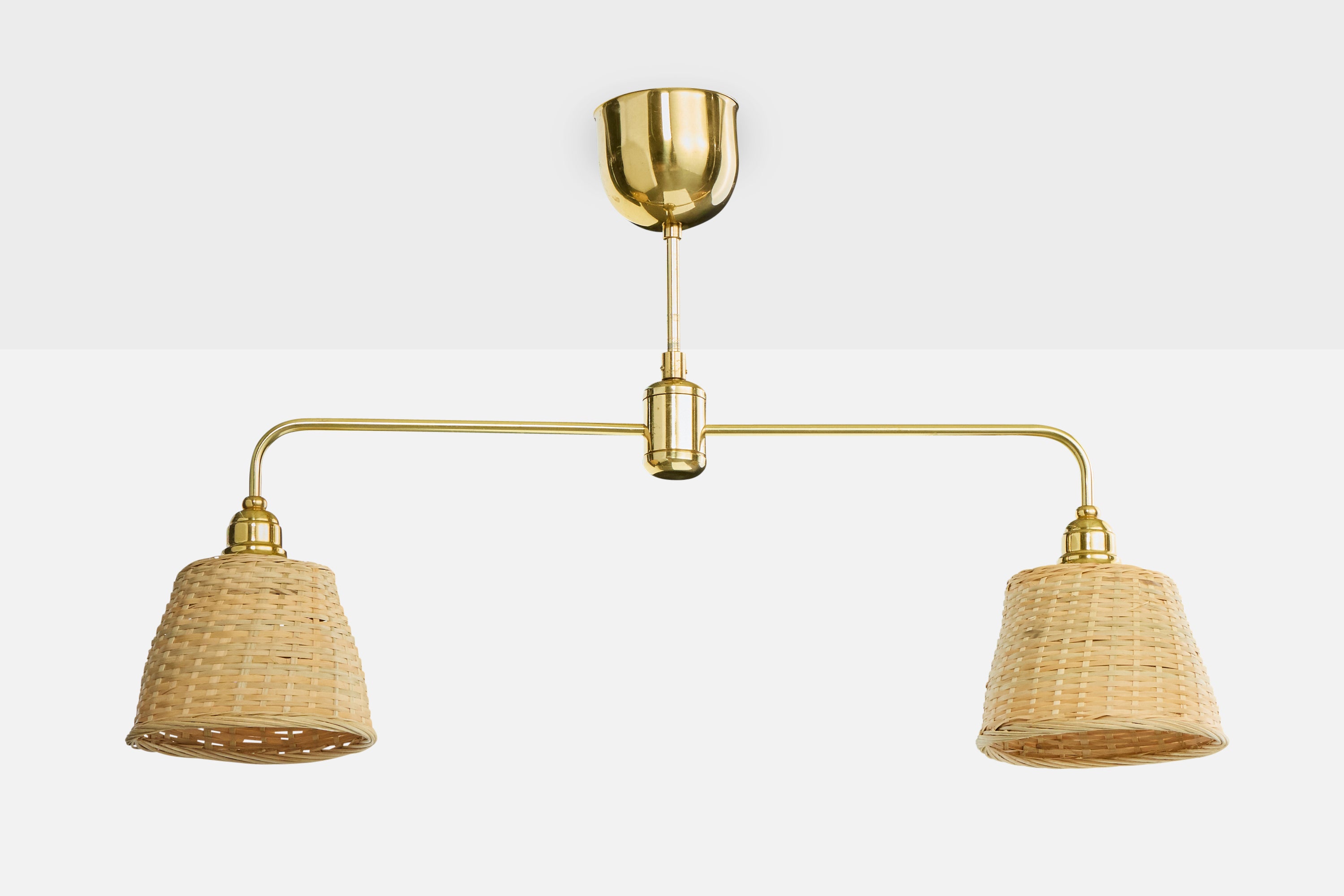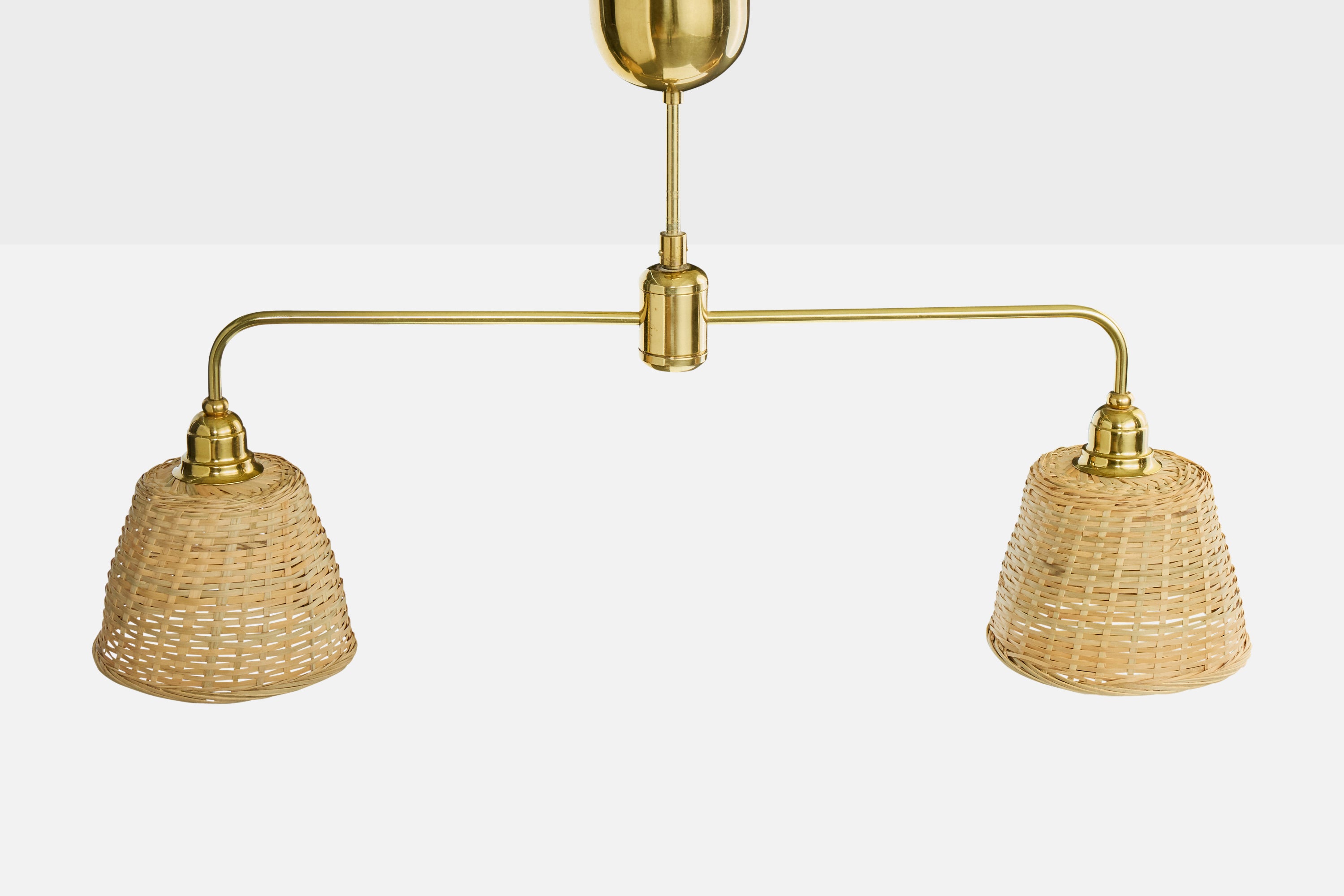 A brass and rattan chandelier designed and produced in Sweden, c. 1980s.
