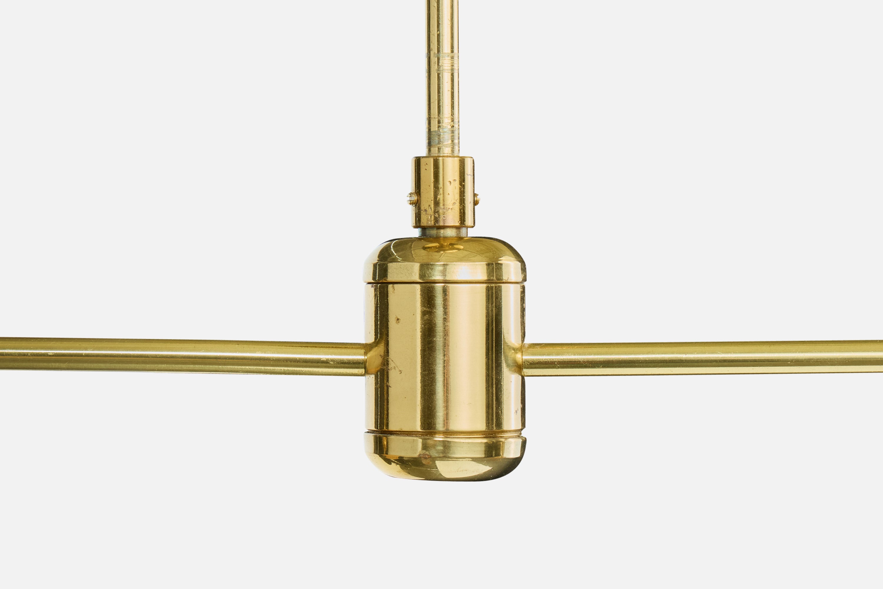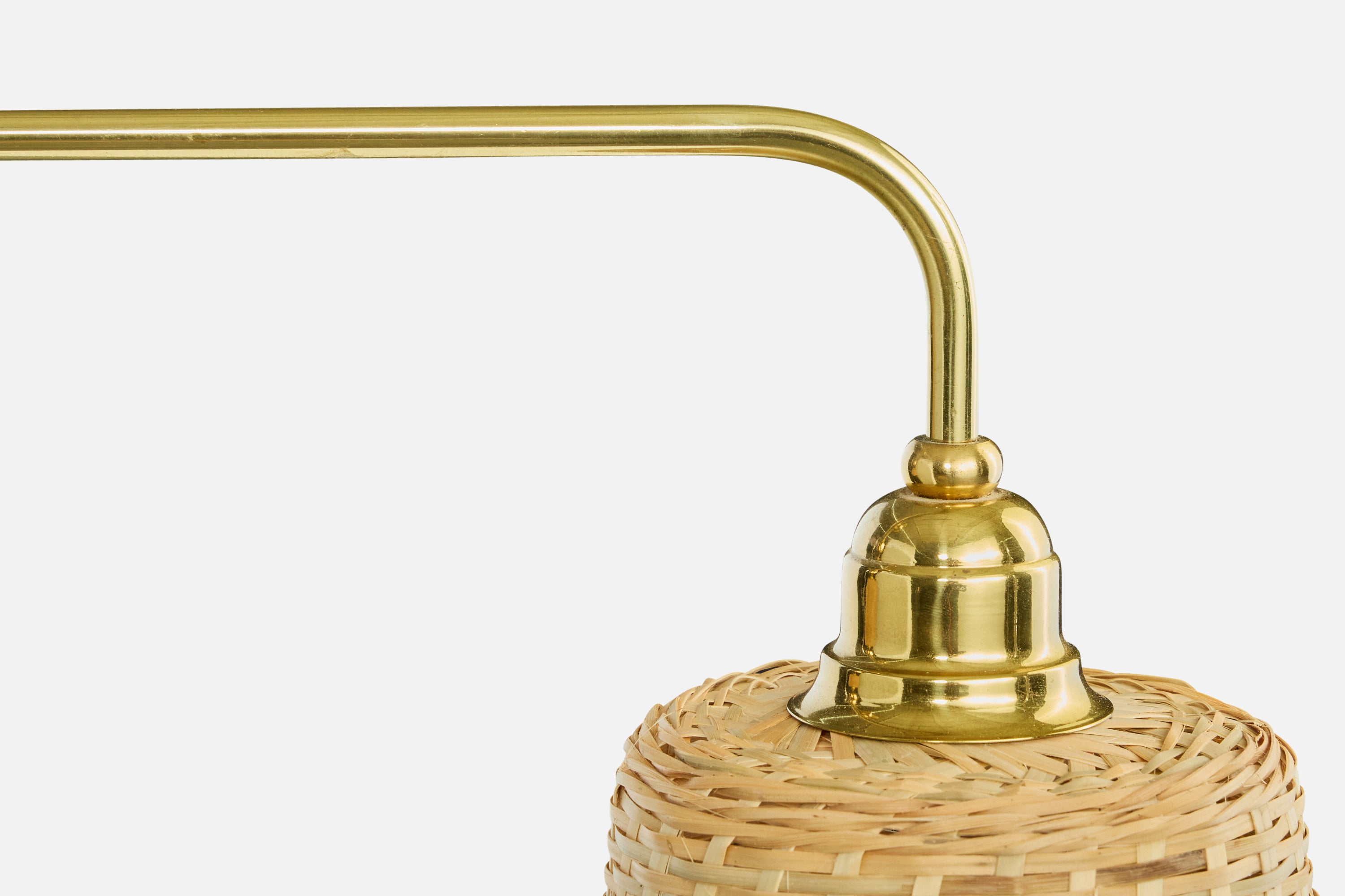 Swedish Designer, Chandelier, Brass, Rattan, Sweden, 1980s