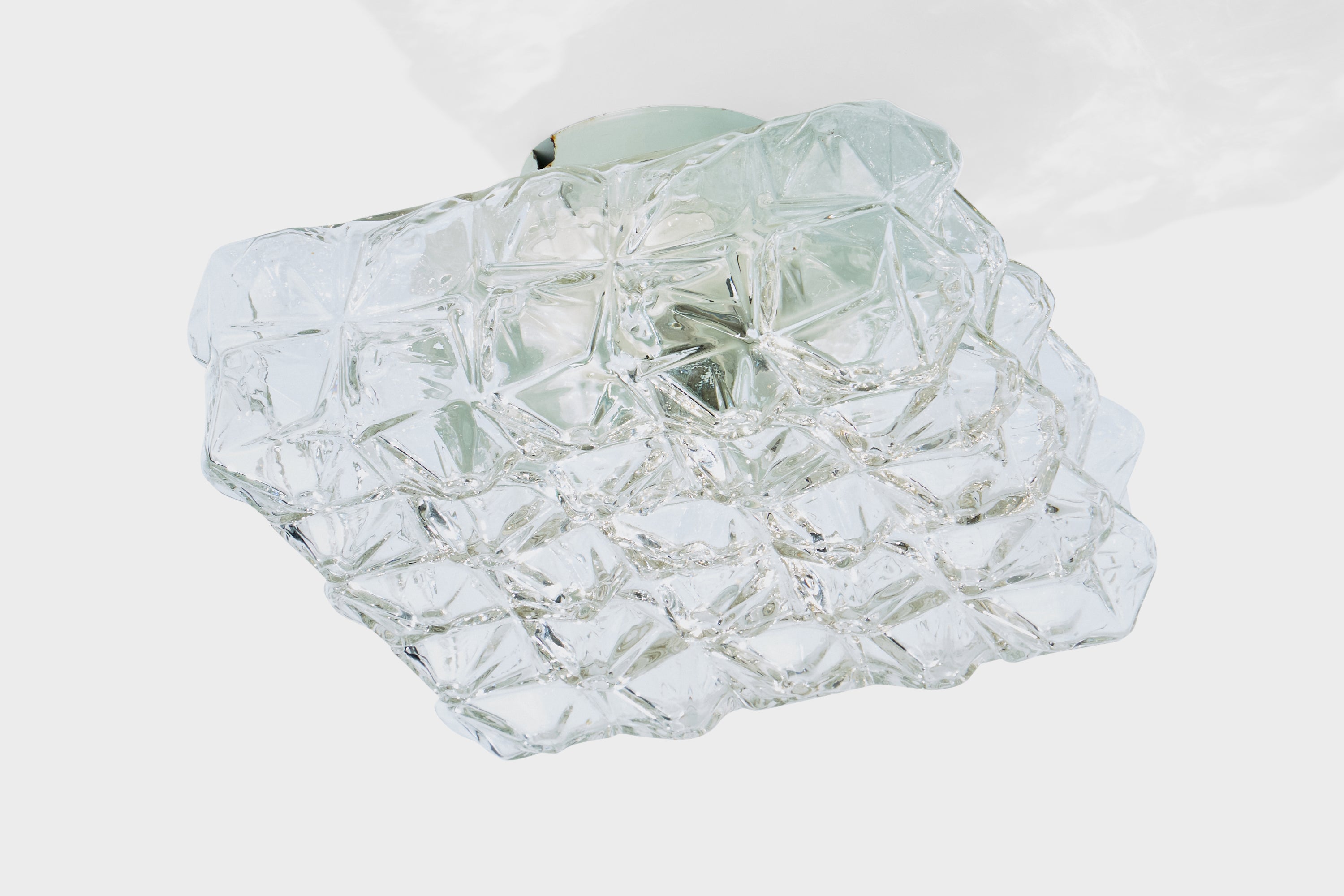 German Designer, Flush Mount, Glass, Metal, Germany, 1960s