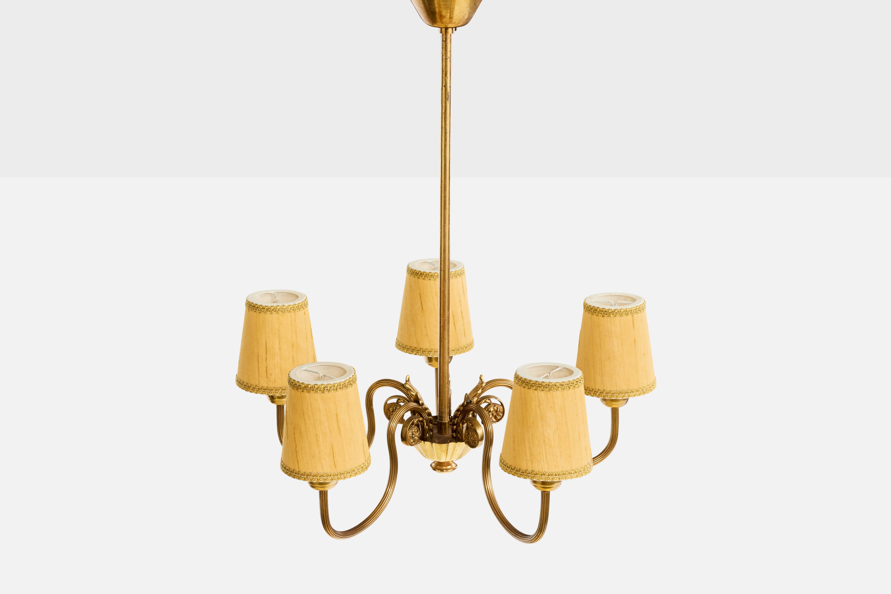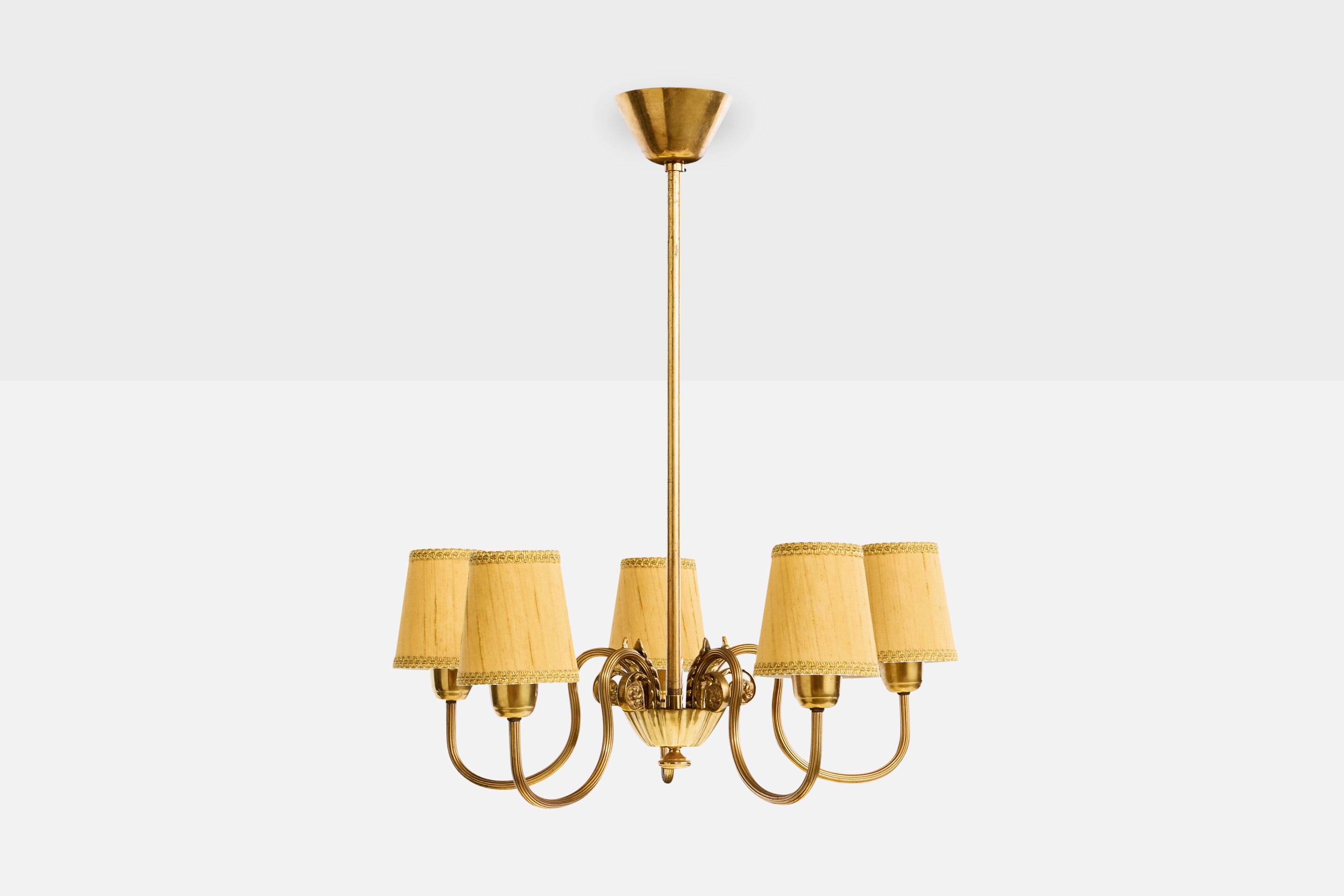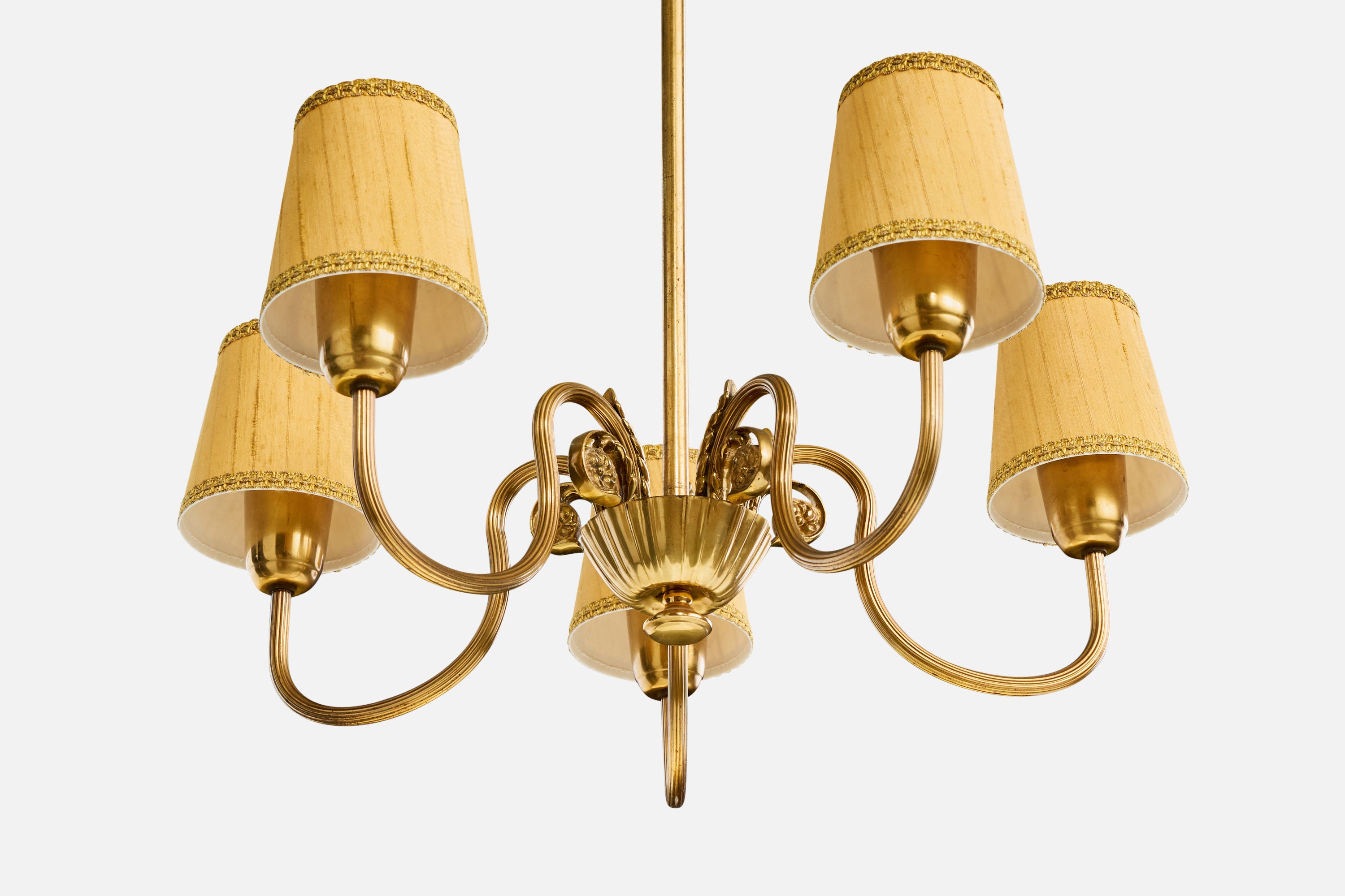 Swedish Designer, Chandelier, Brass, Fabric, Sweden, 1940s