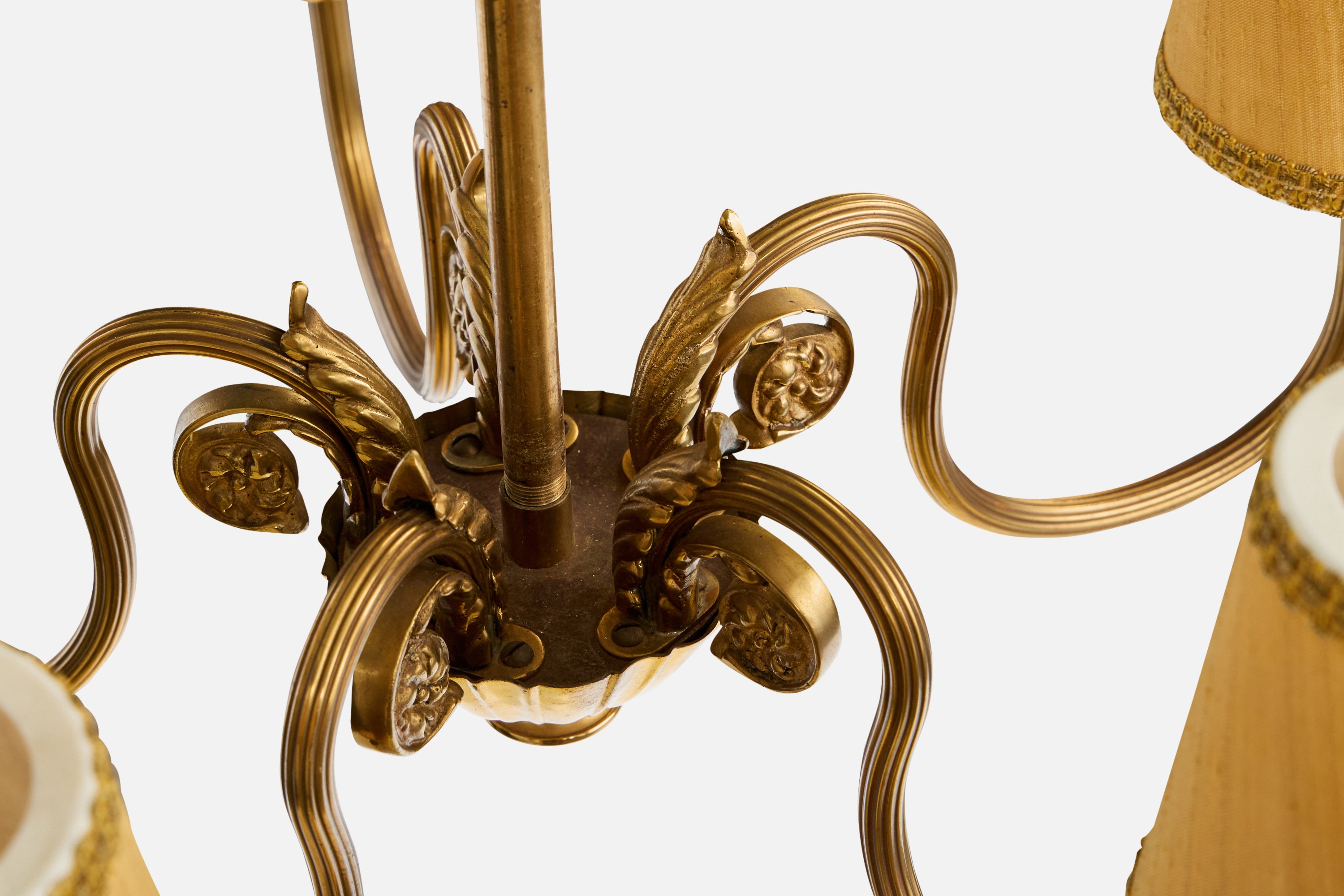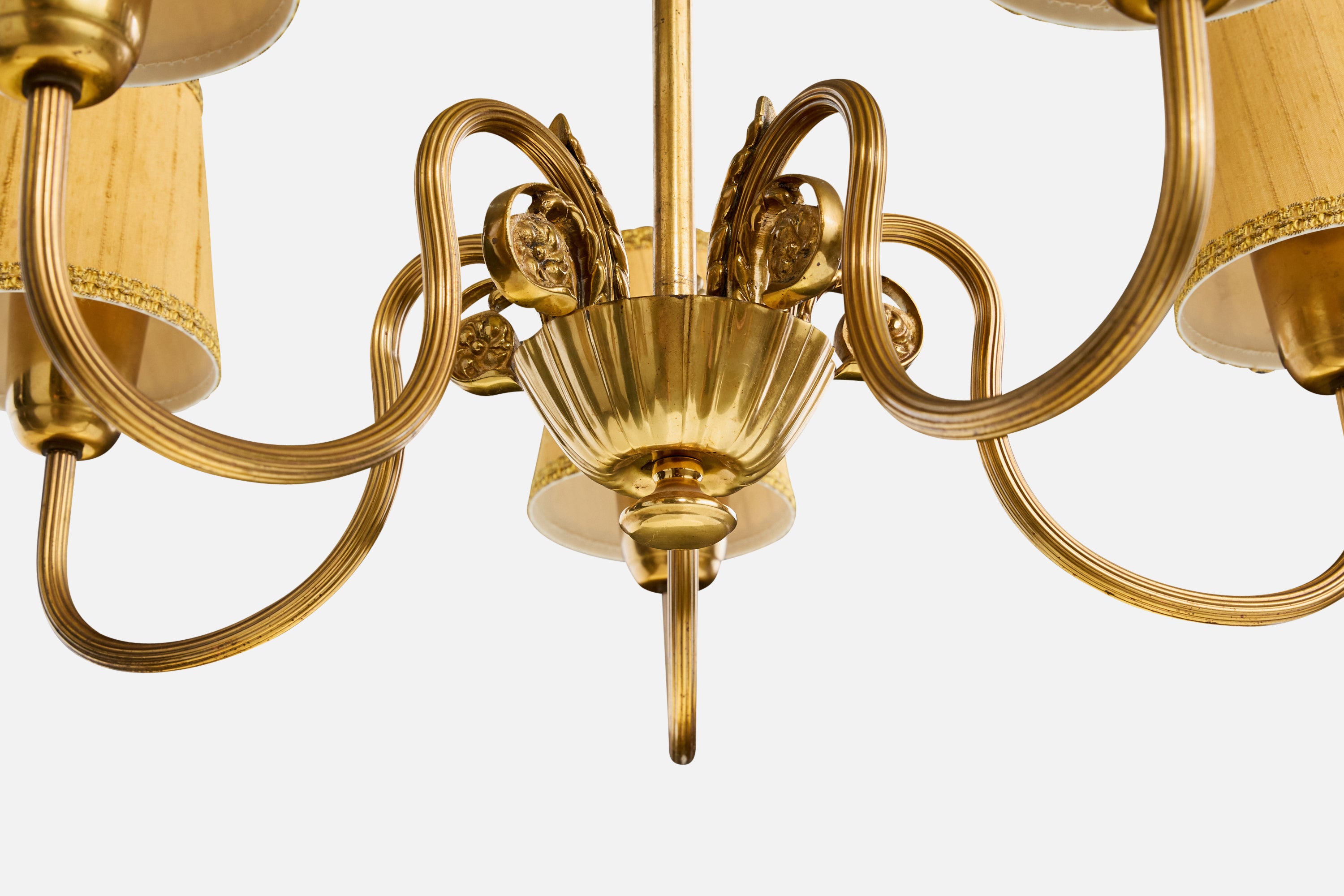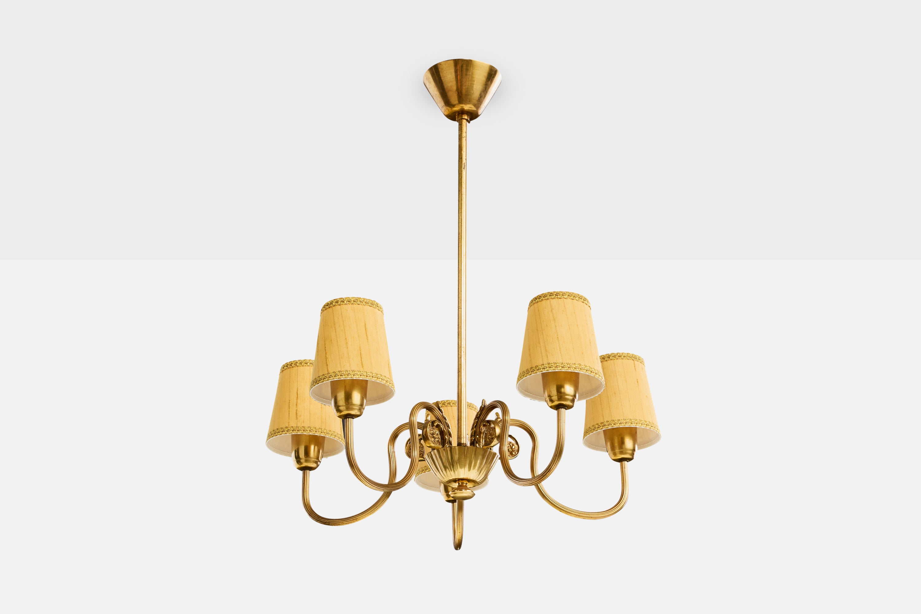 Swedish Designer, Chandelier, Brass, Fabric, Sweden, 1940s