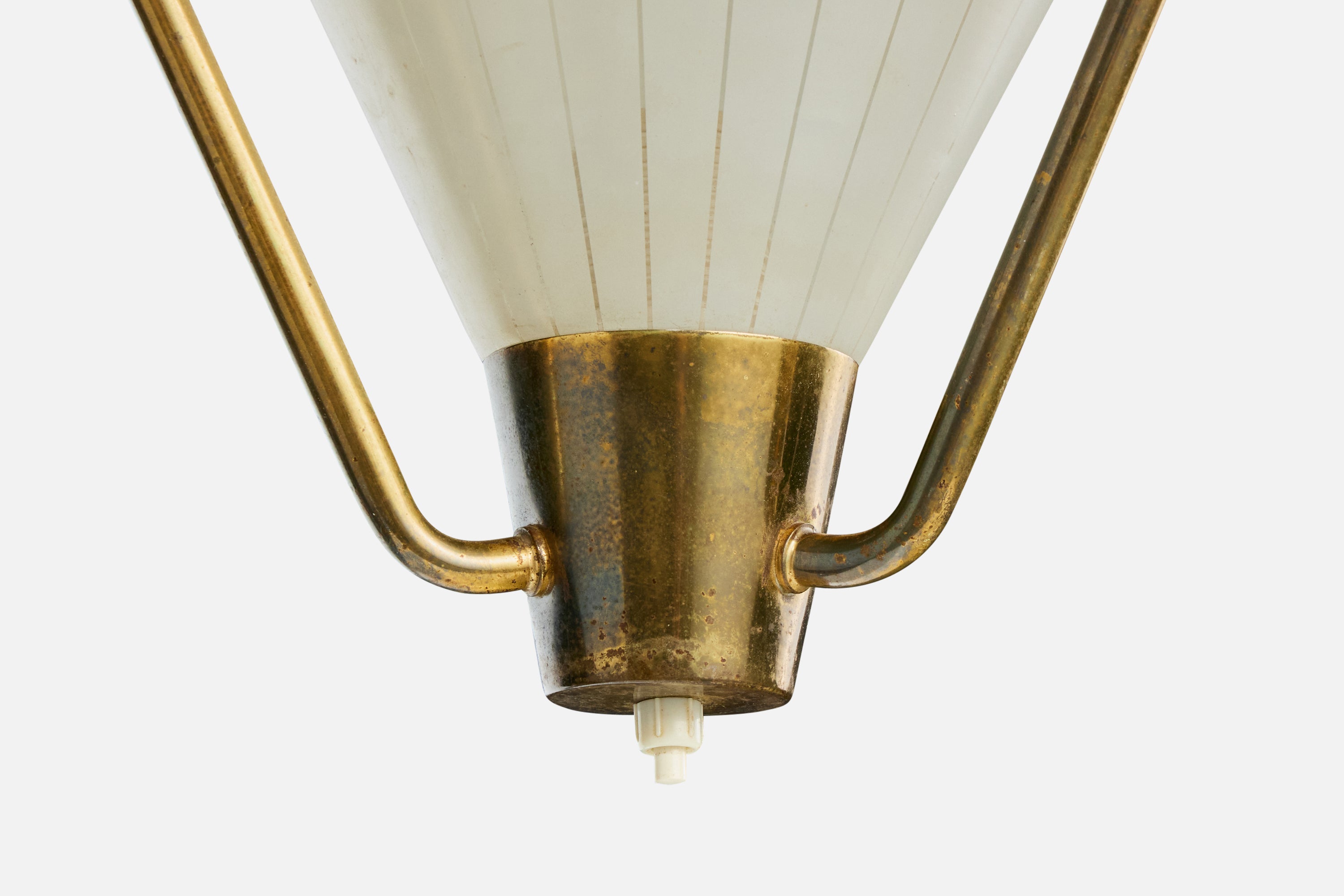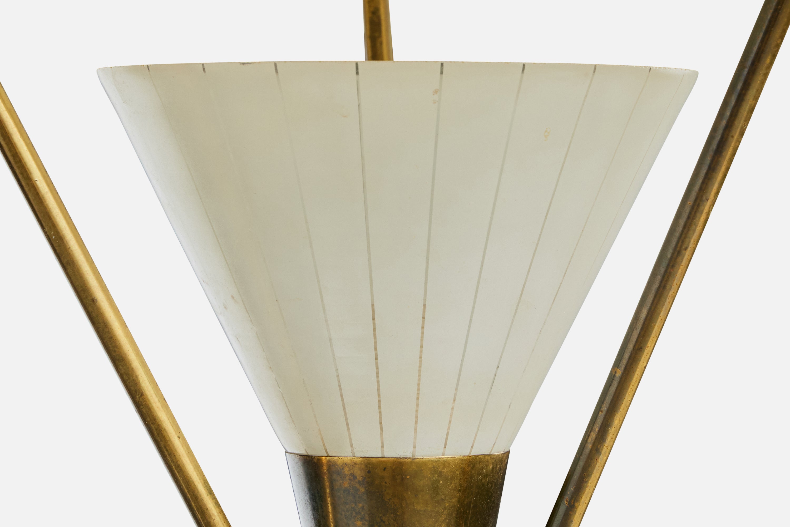 Danish Designer, Pendant Light, Brass, Metal, Glass, Denmark, 1950s