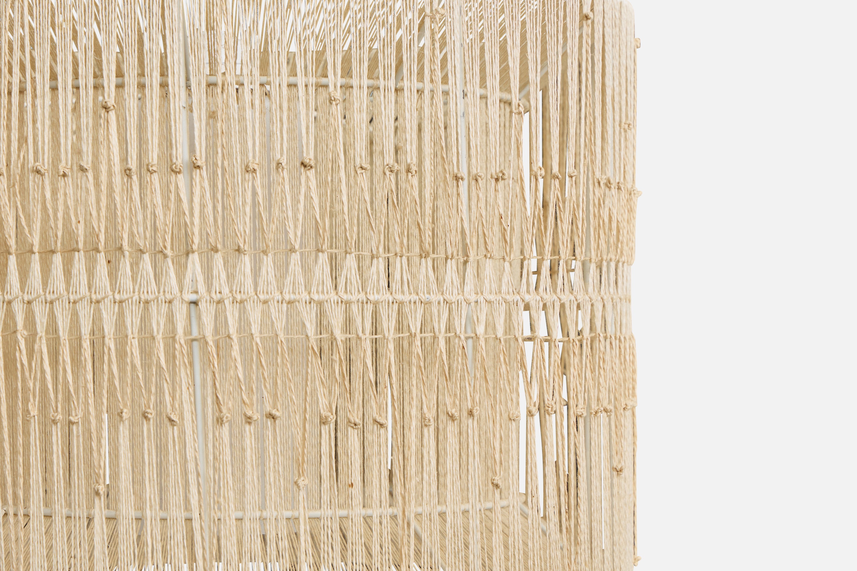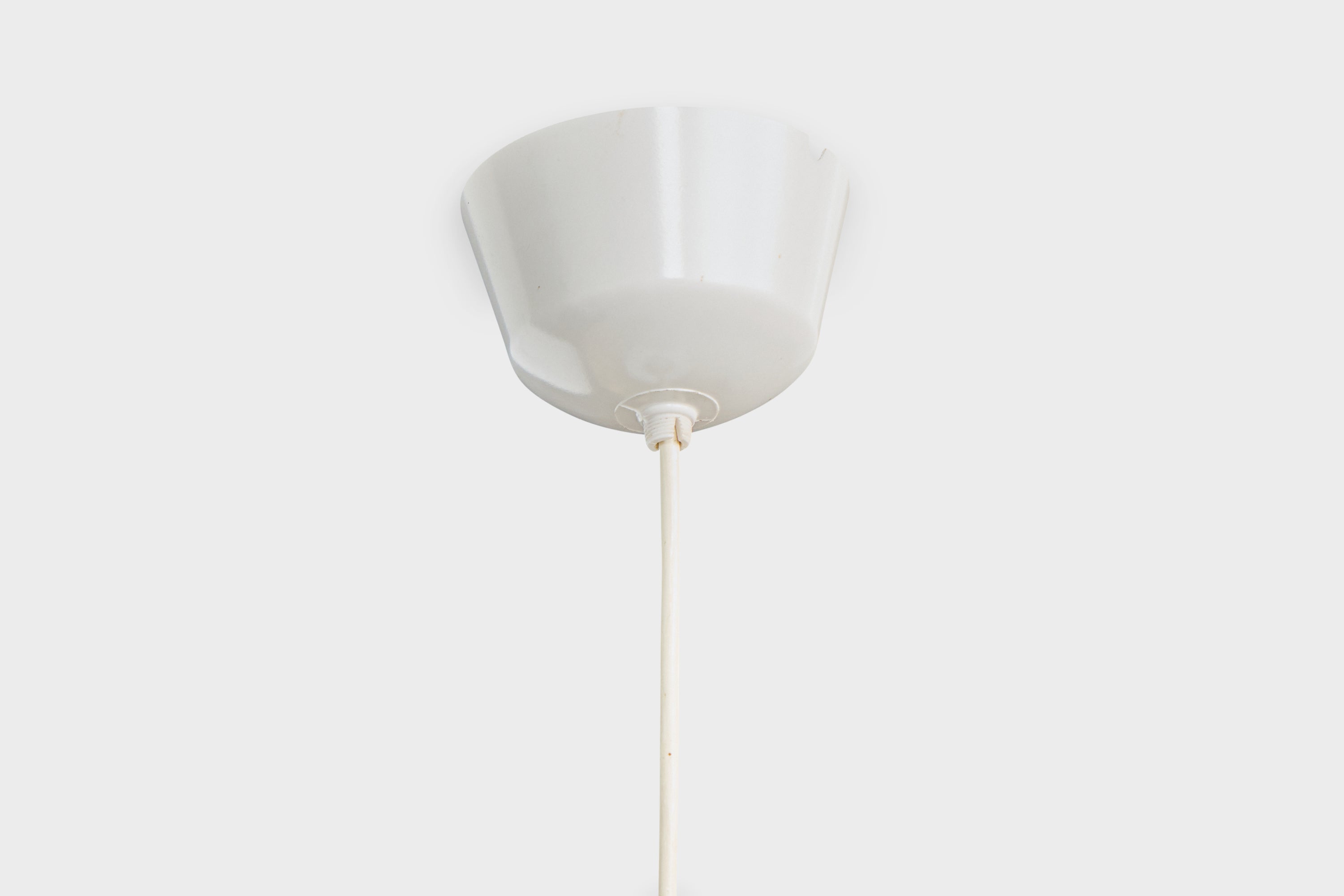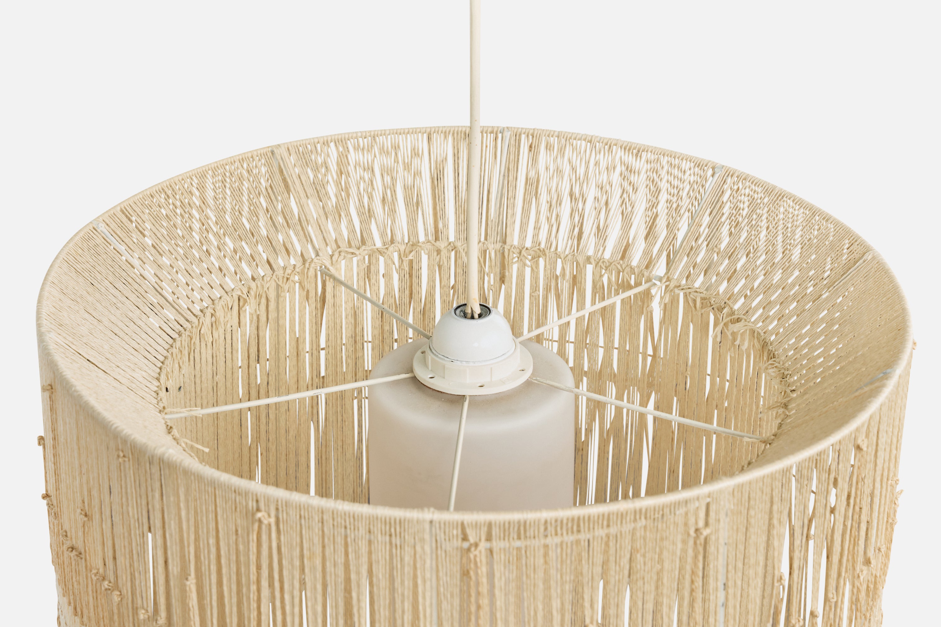 A beige fabric string and white opaline glass pendant light designed and produced in Sweden, c. 1960s.