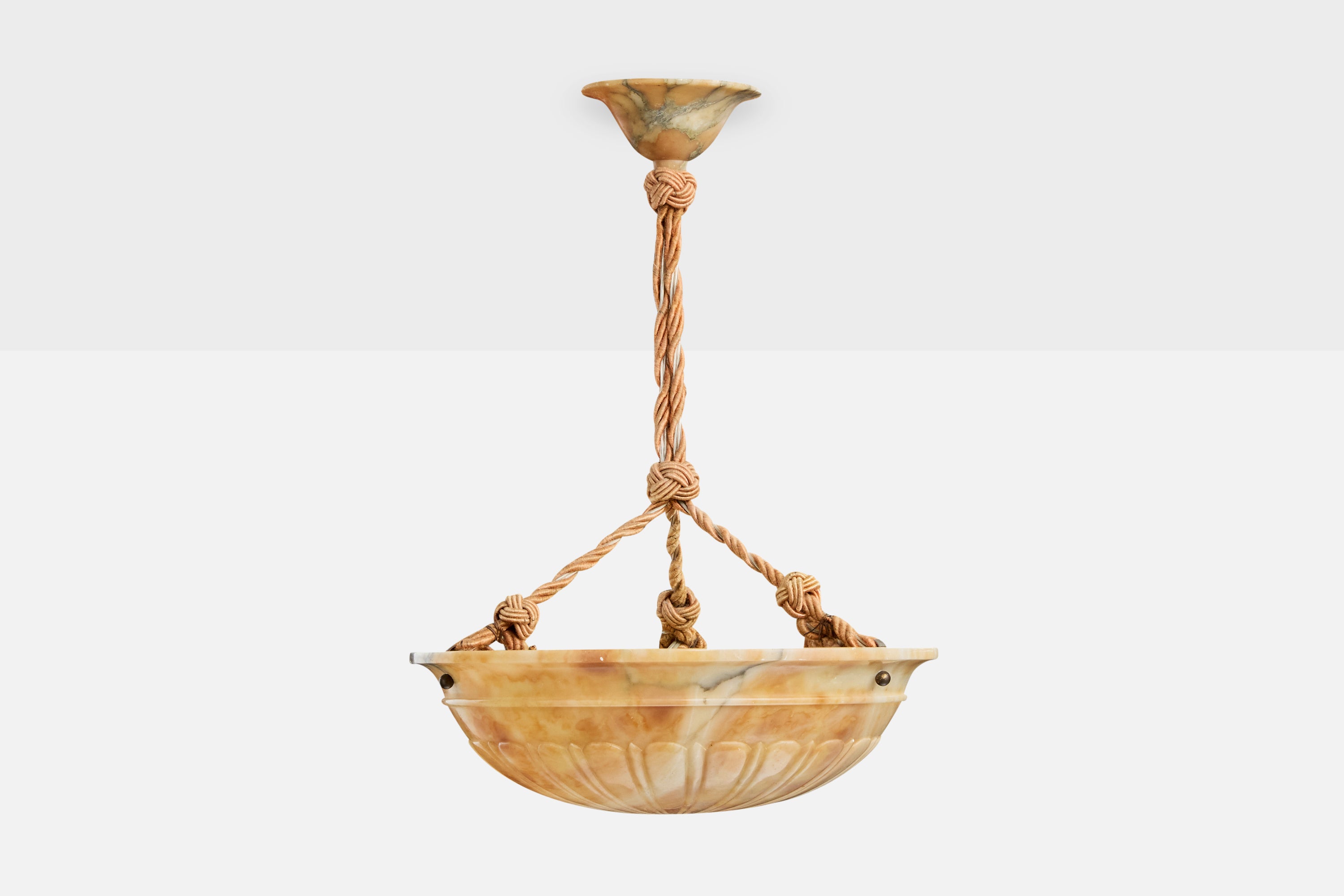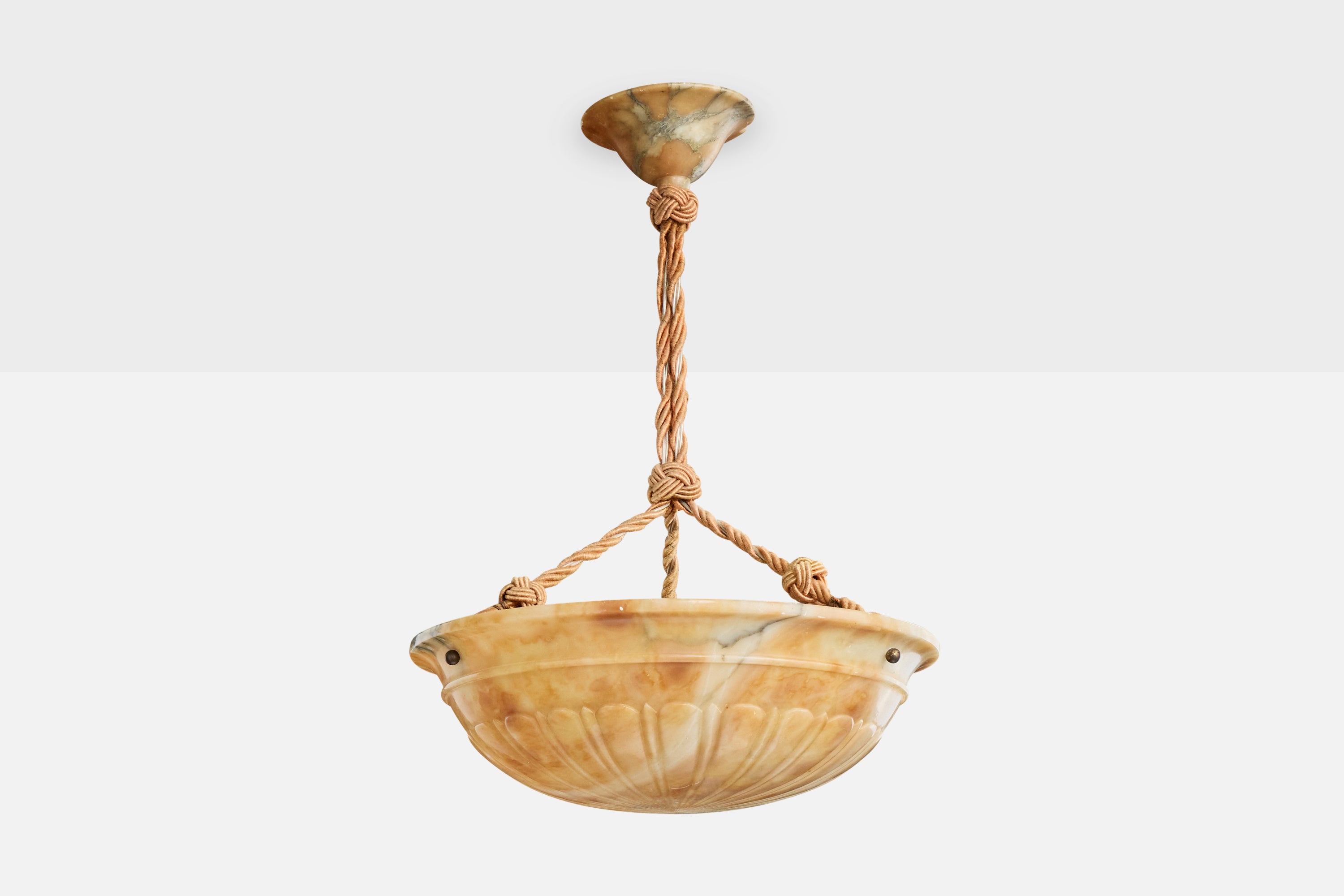 Swedish Designer, Pendant Light, Alabaster, Rope, Sweden, 1930s