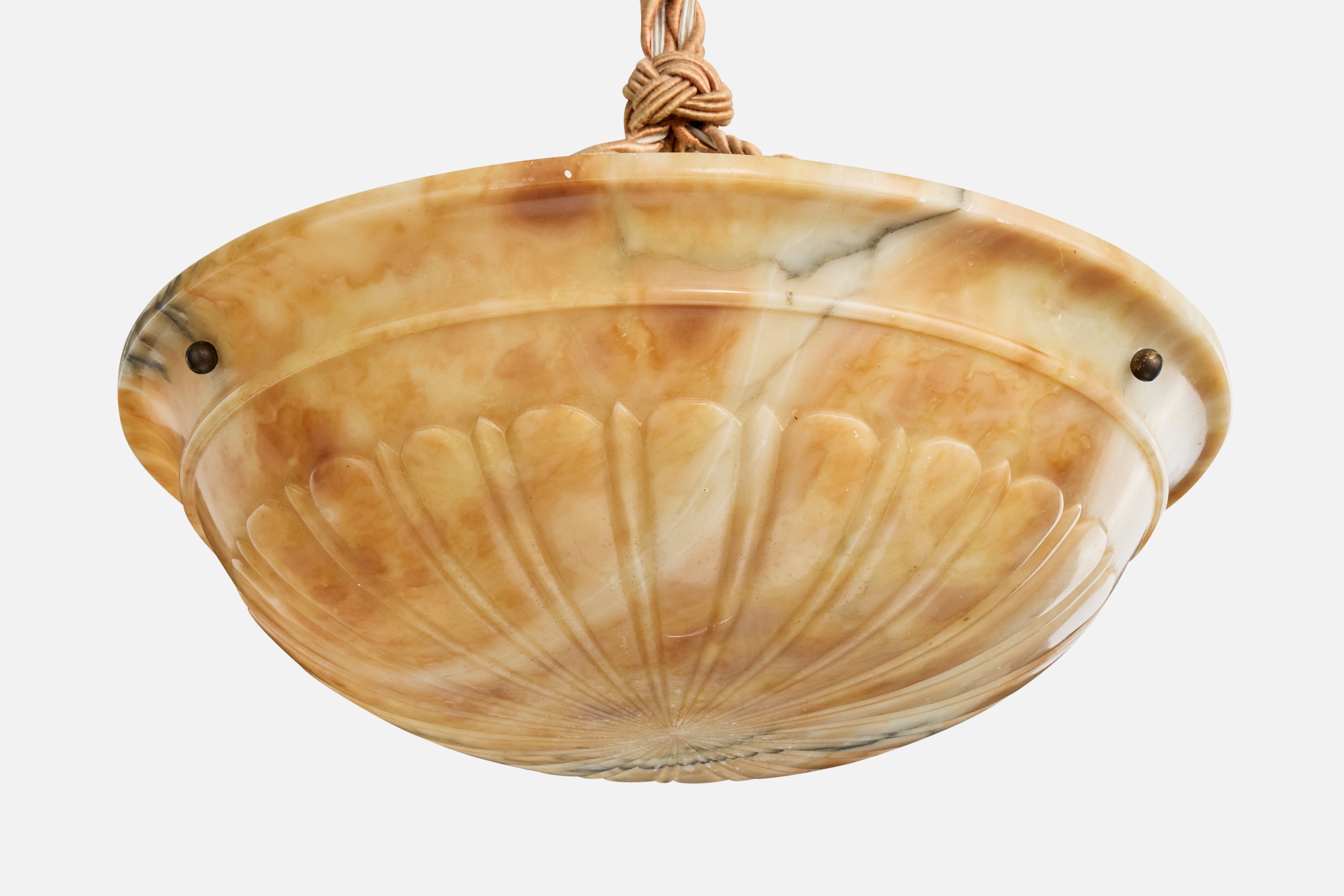 An alabaster and brown rope pendant light likely designed and produced in Sweden, c. 1930s.