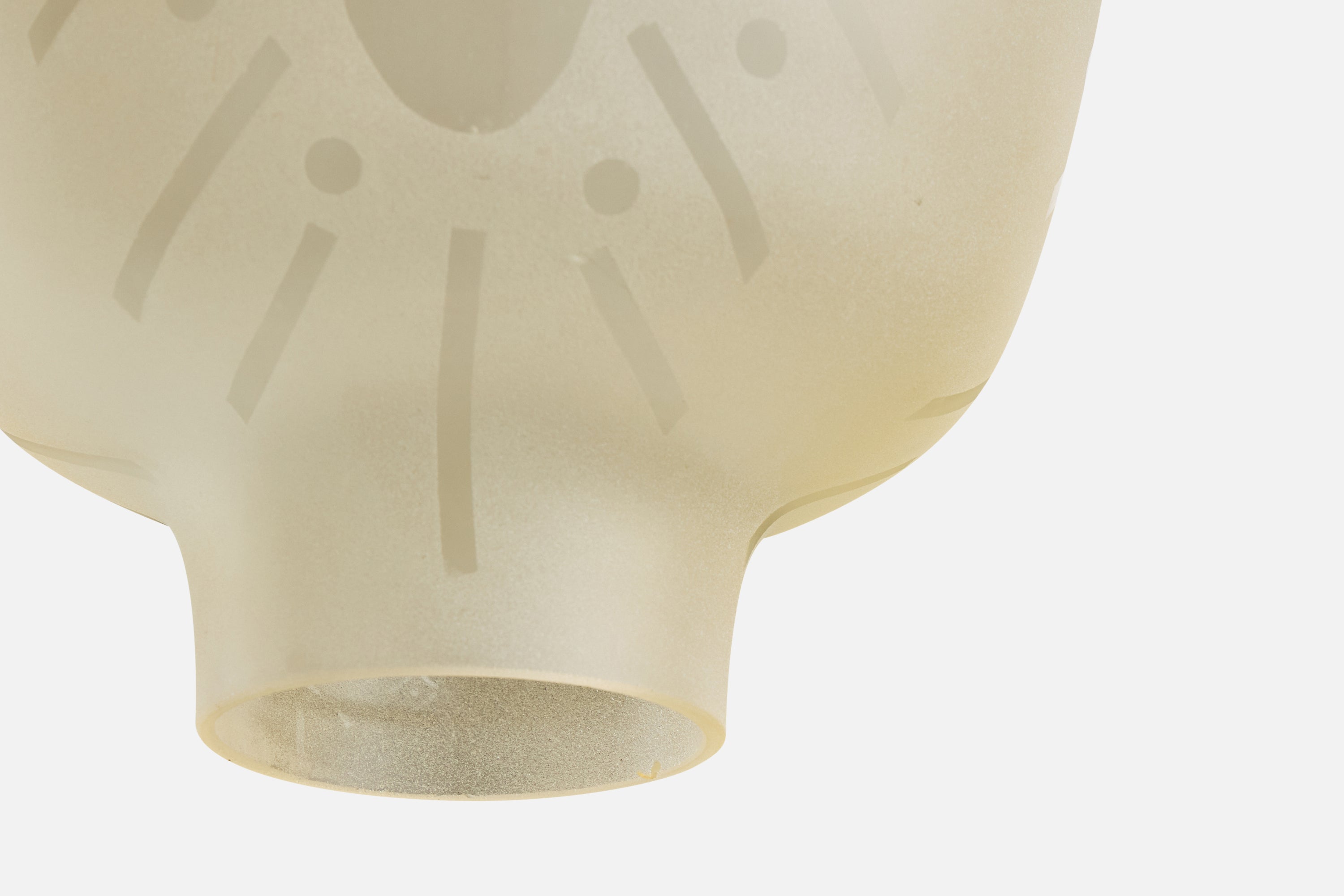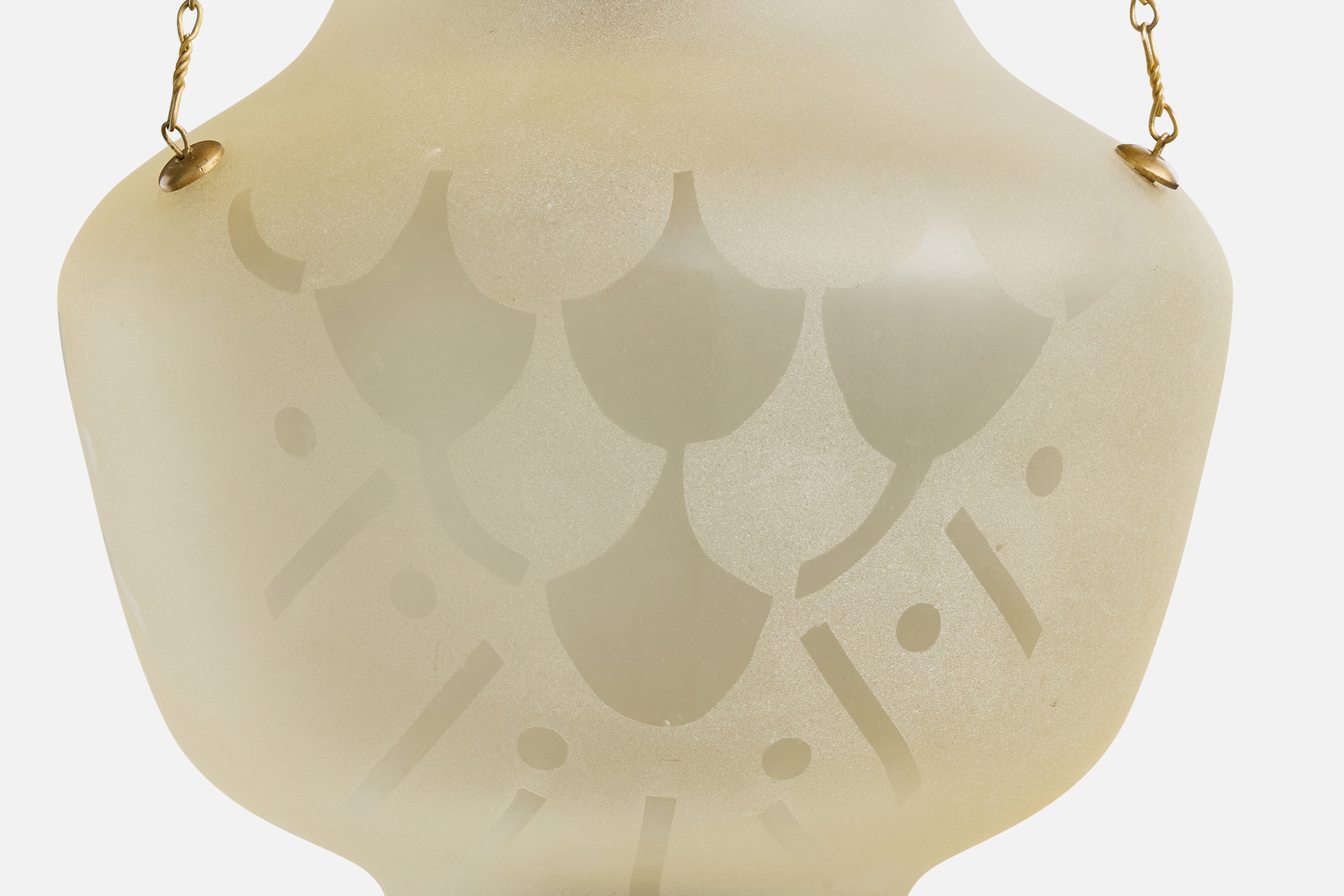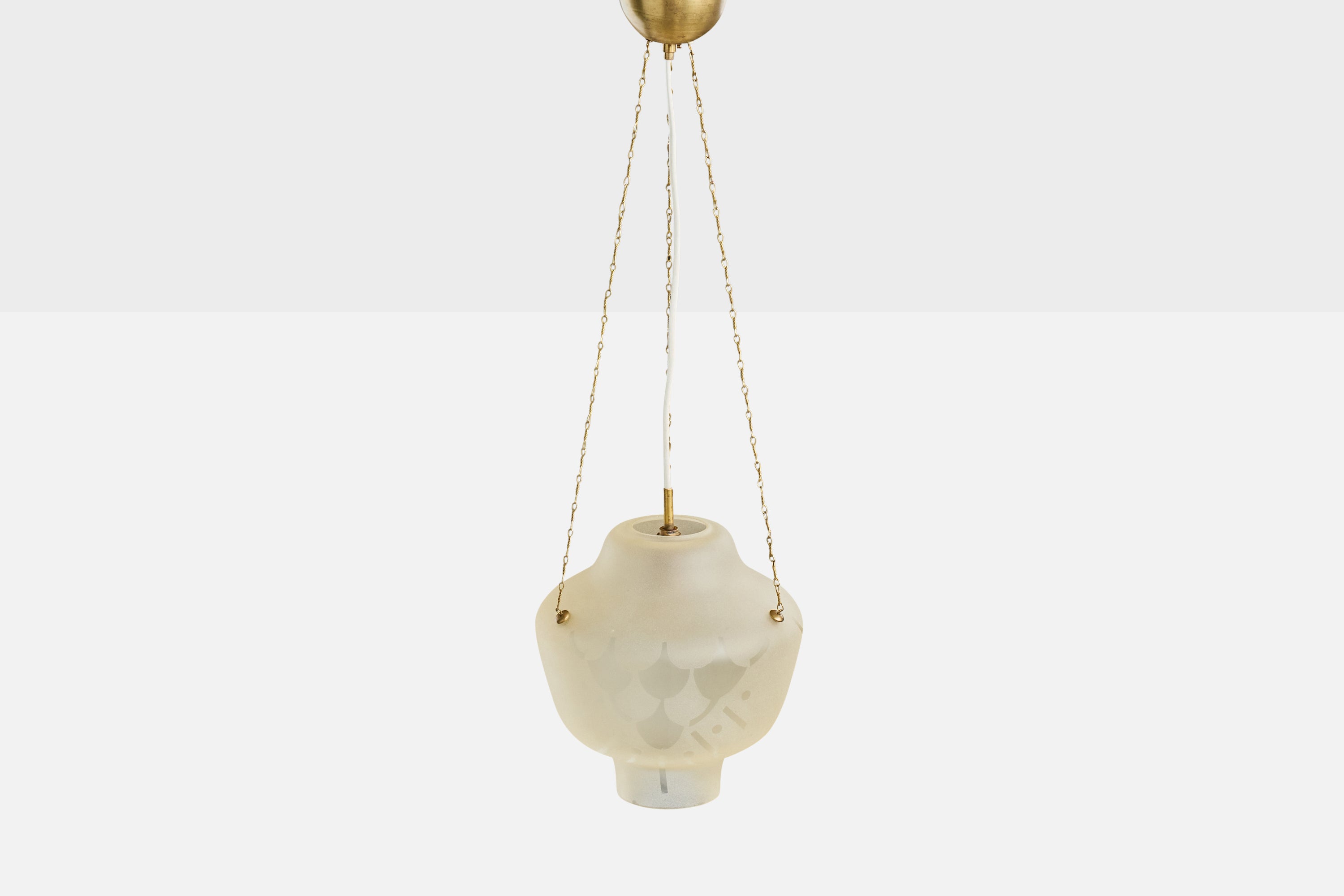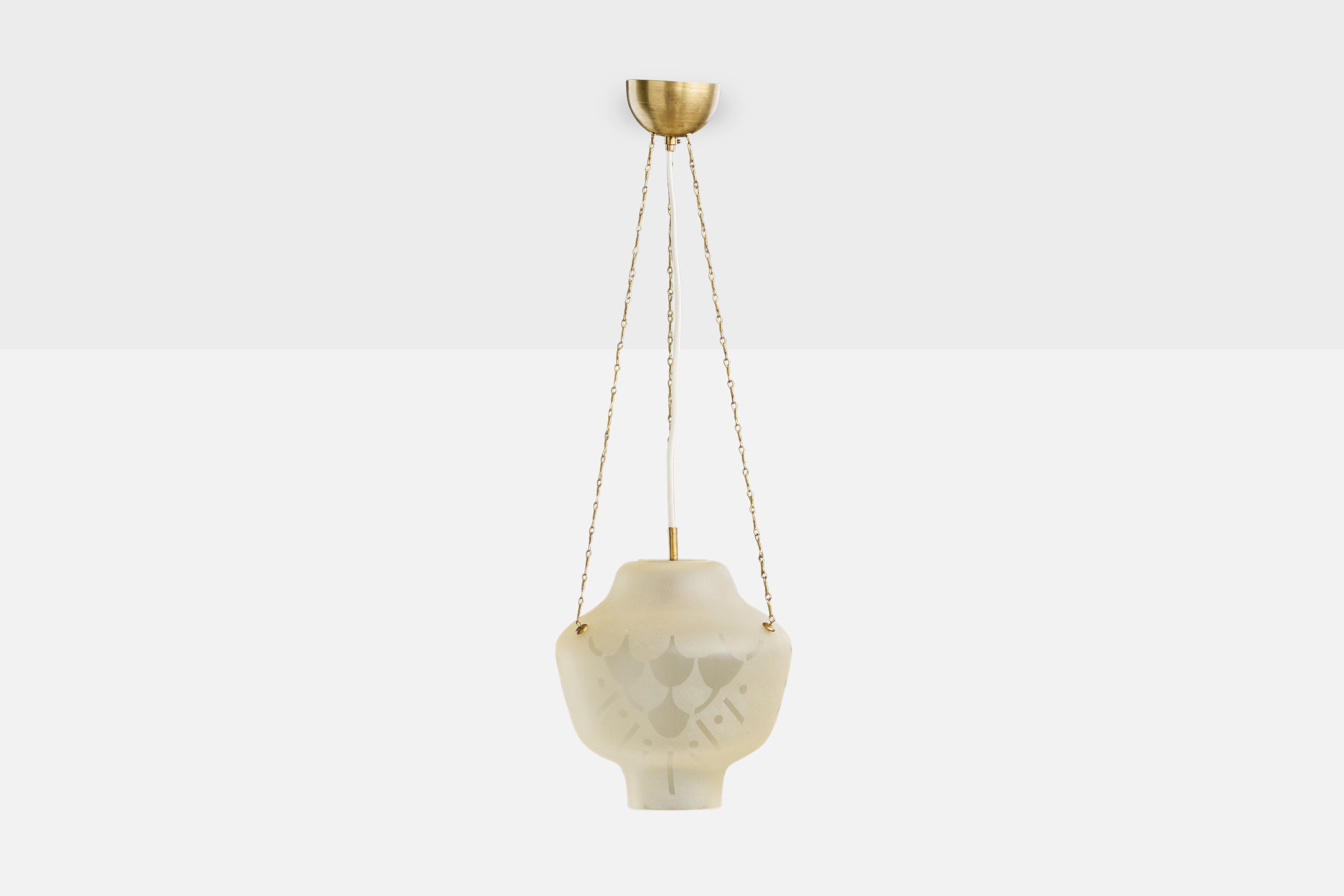 An etched glass and brass pendant light designed and produced in Sweden, c. 1940s.