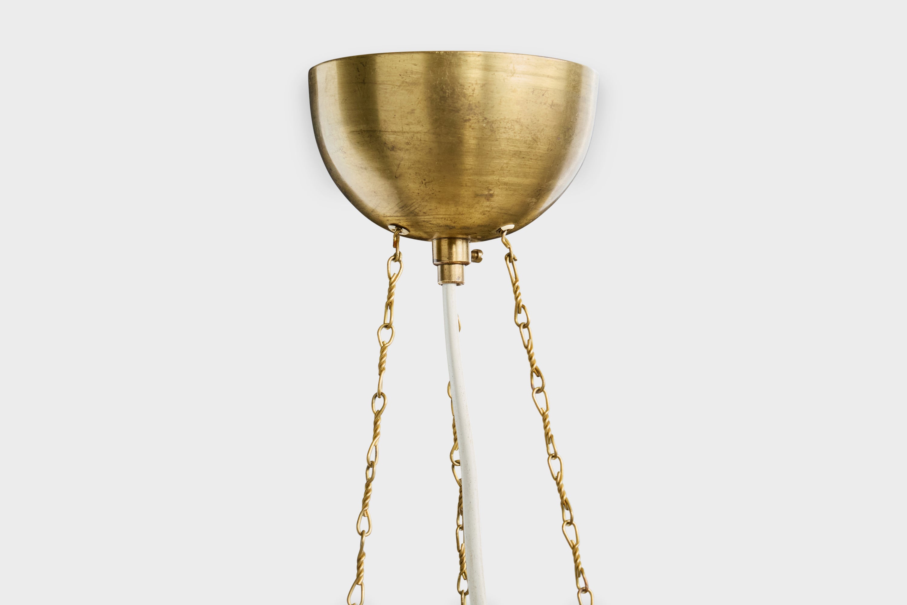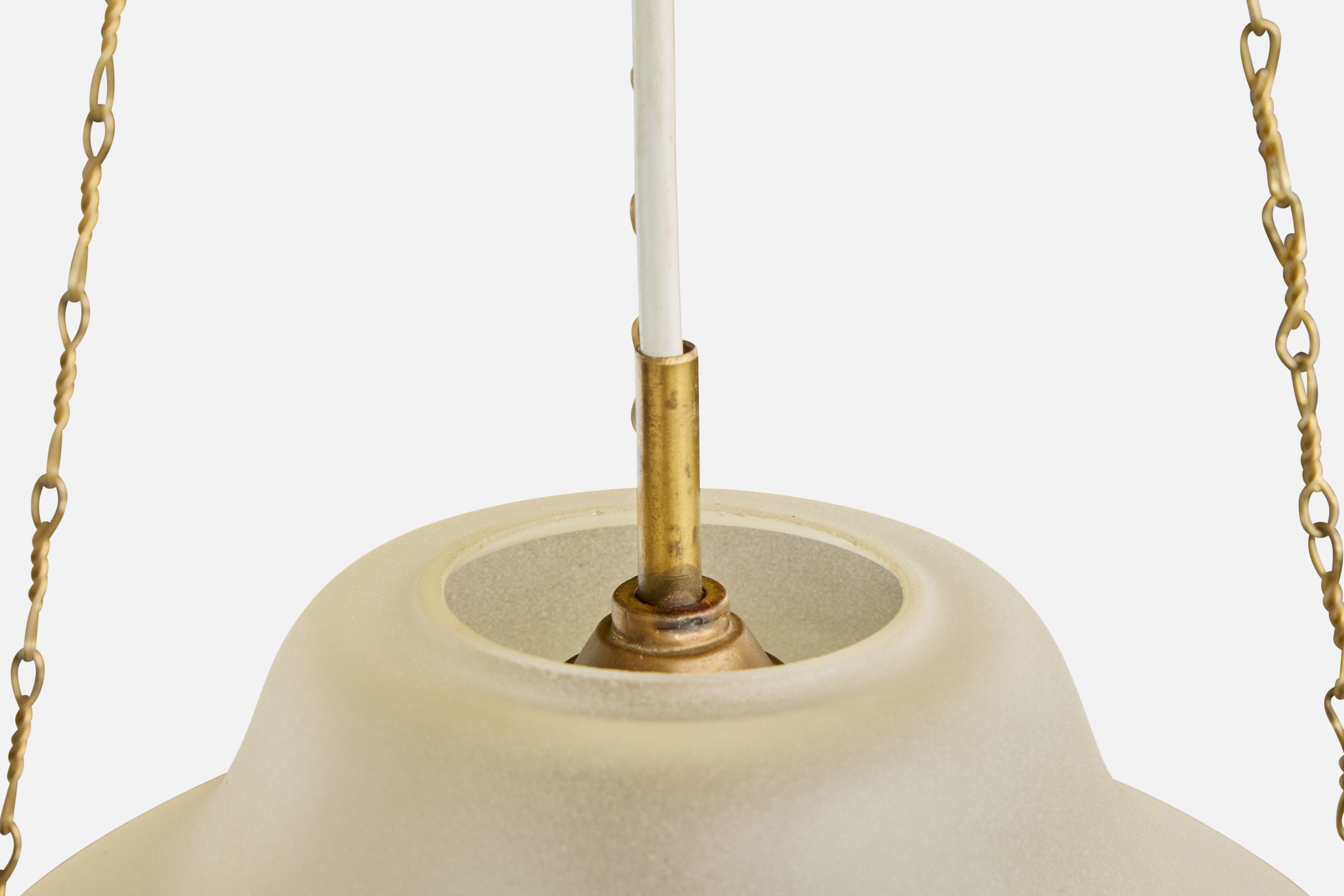 Swedish Designer, Pendant Light, Glass, Brass, Sweden, 1940s