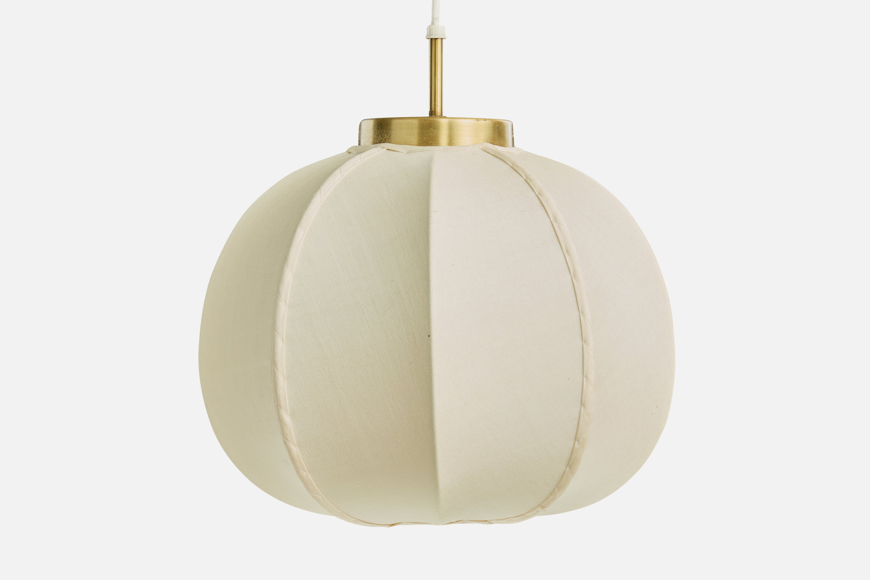 A brass and off-white fabric coated fabric pendant light attributed to Josef Frank for Svenskt Tenn, Sweden, c. 1960s.