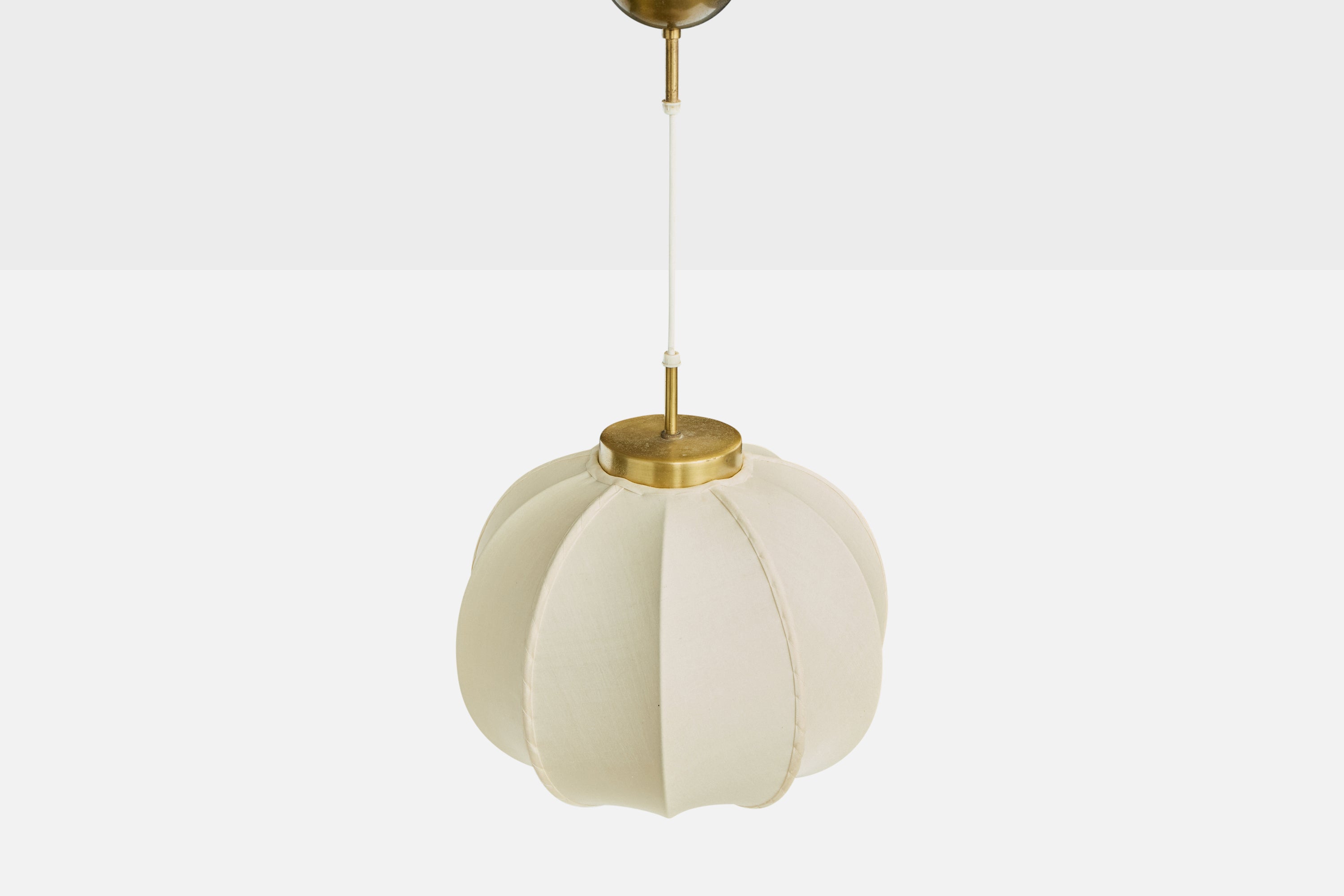 Josef Frank Attribution, Pendant Light, Brass, Fabric, Fabric, Sweden, 1960s