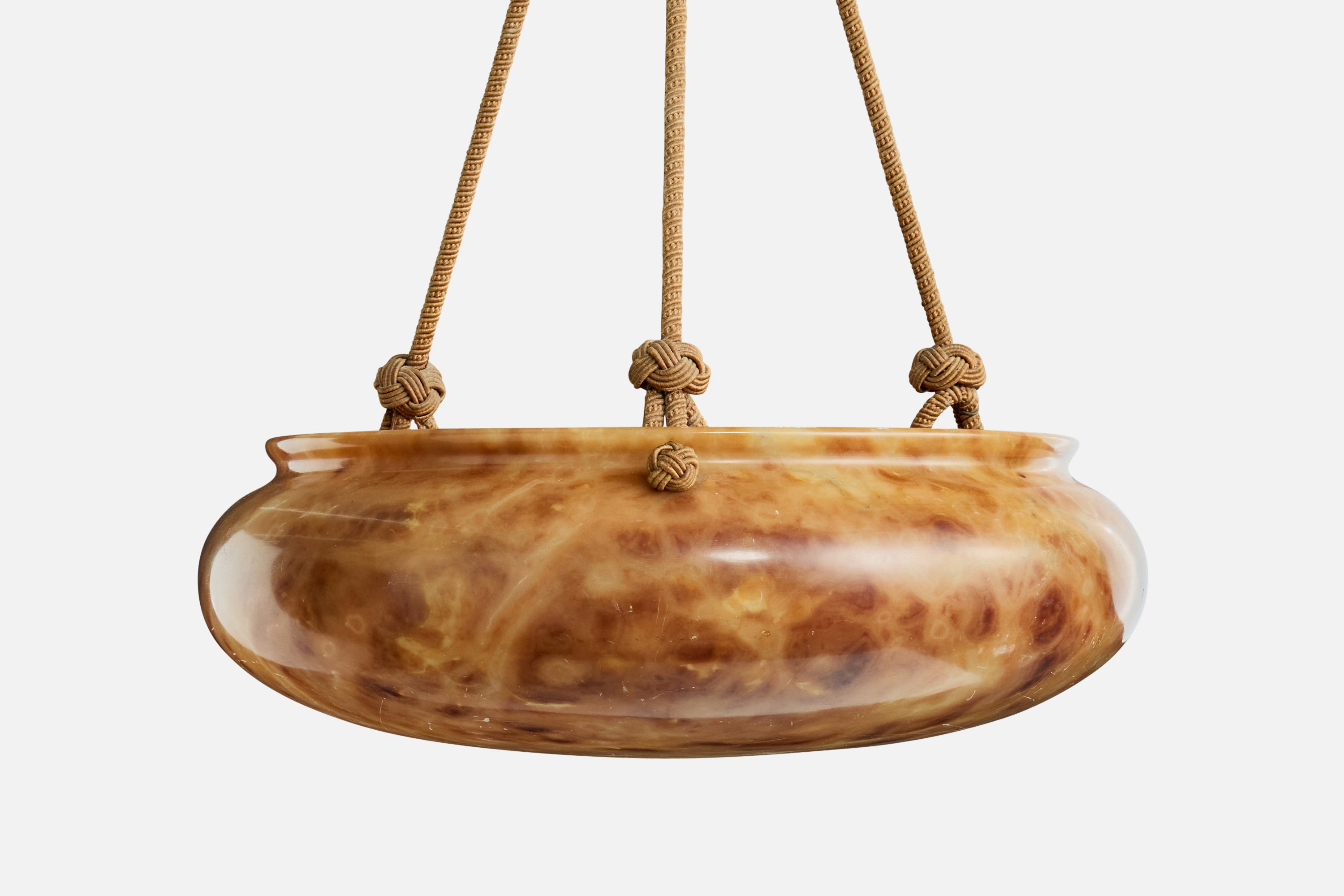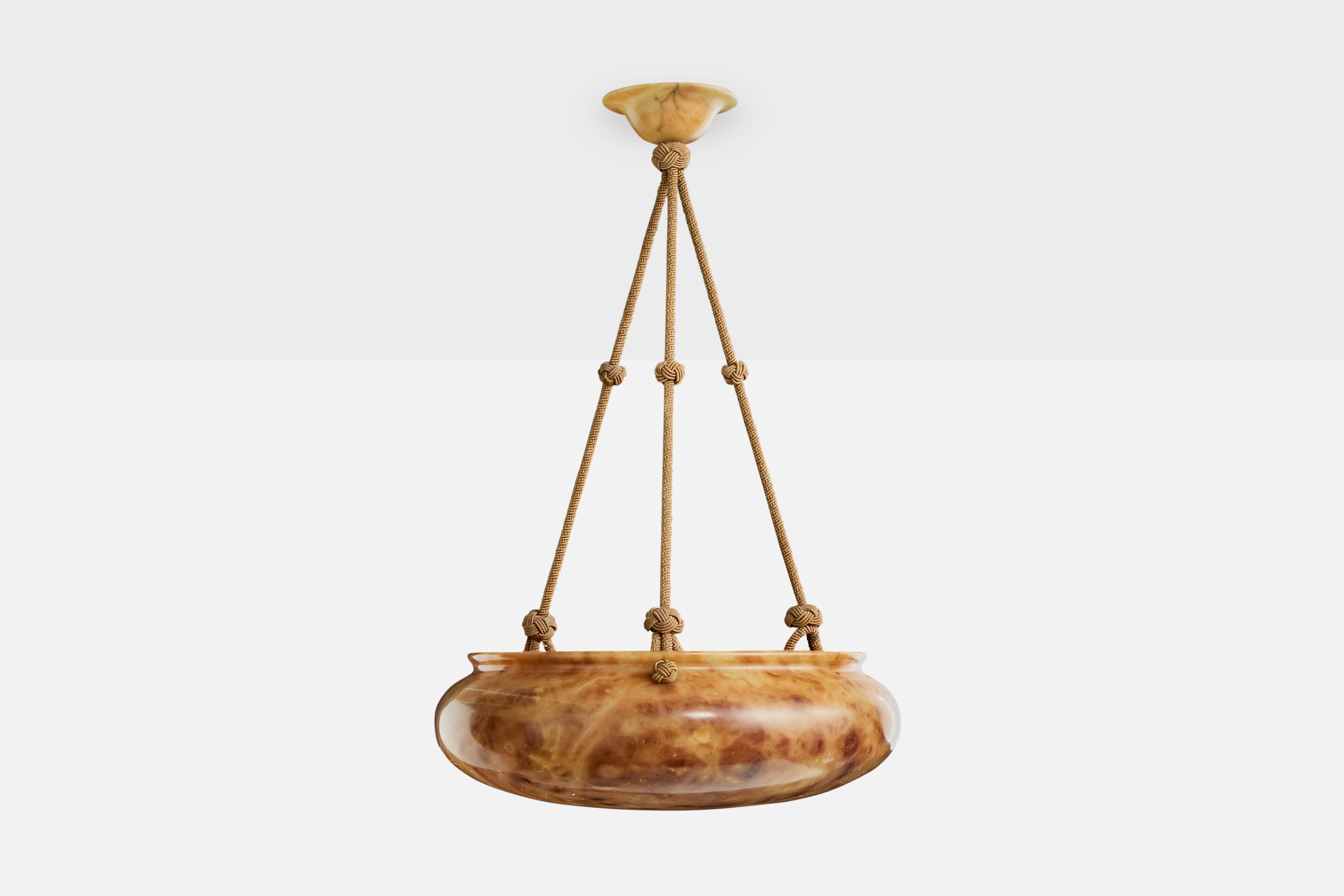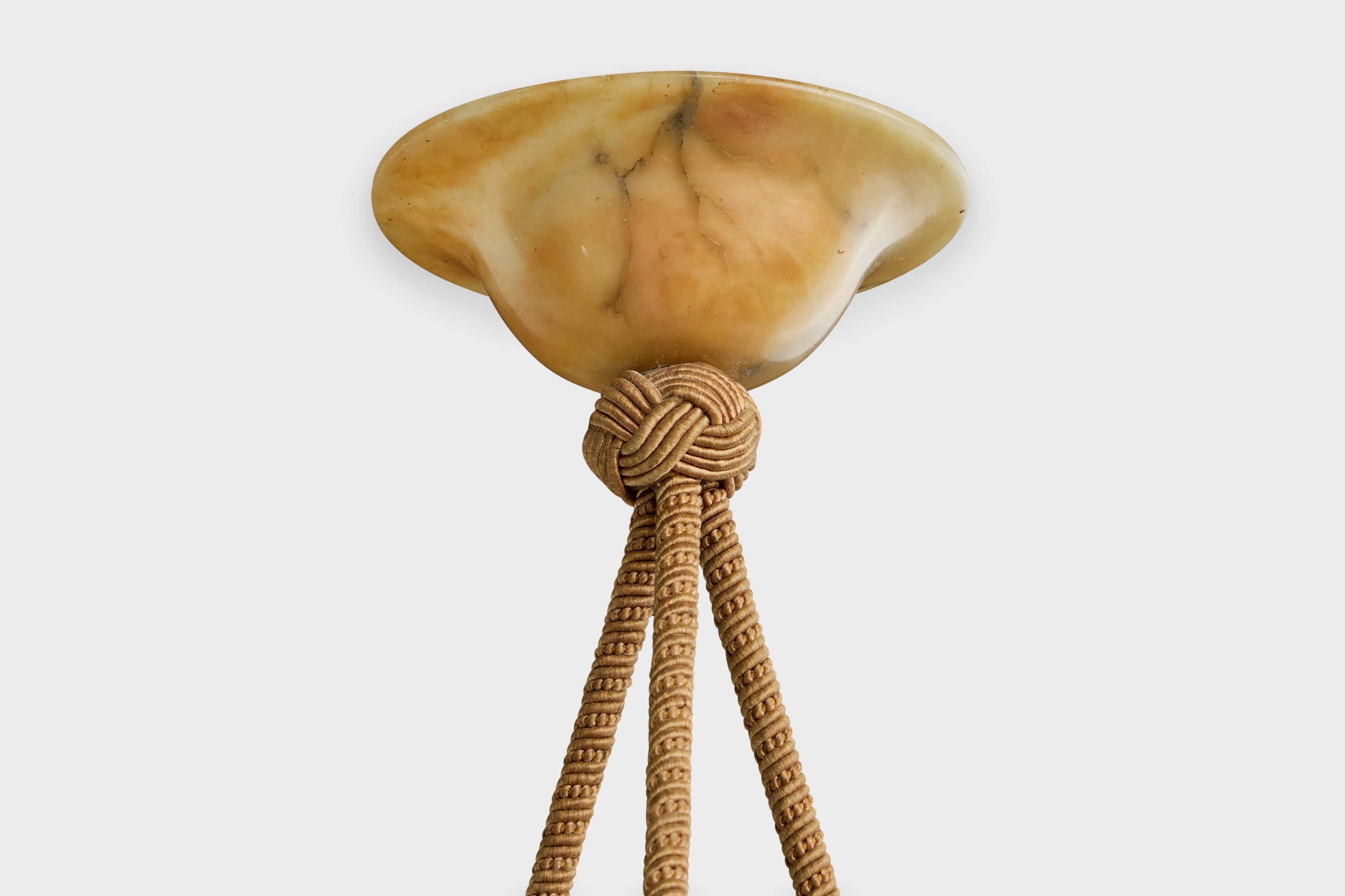 An alabaster and brown rope pendant light likely designed and produced in Sweden, c. 1930s.