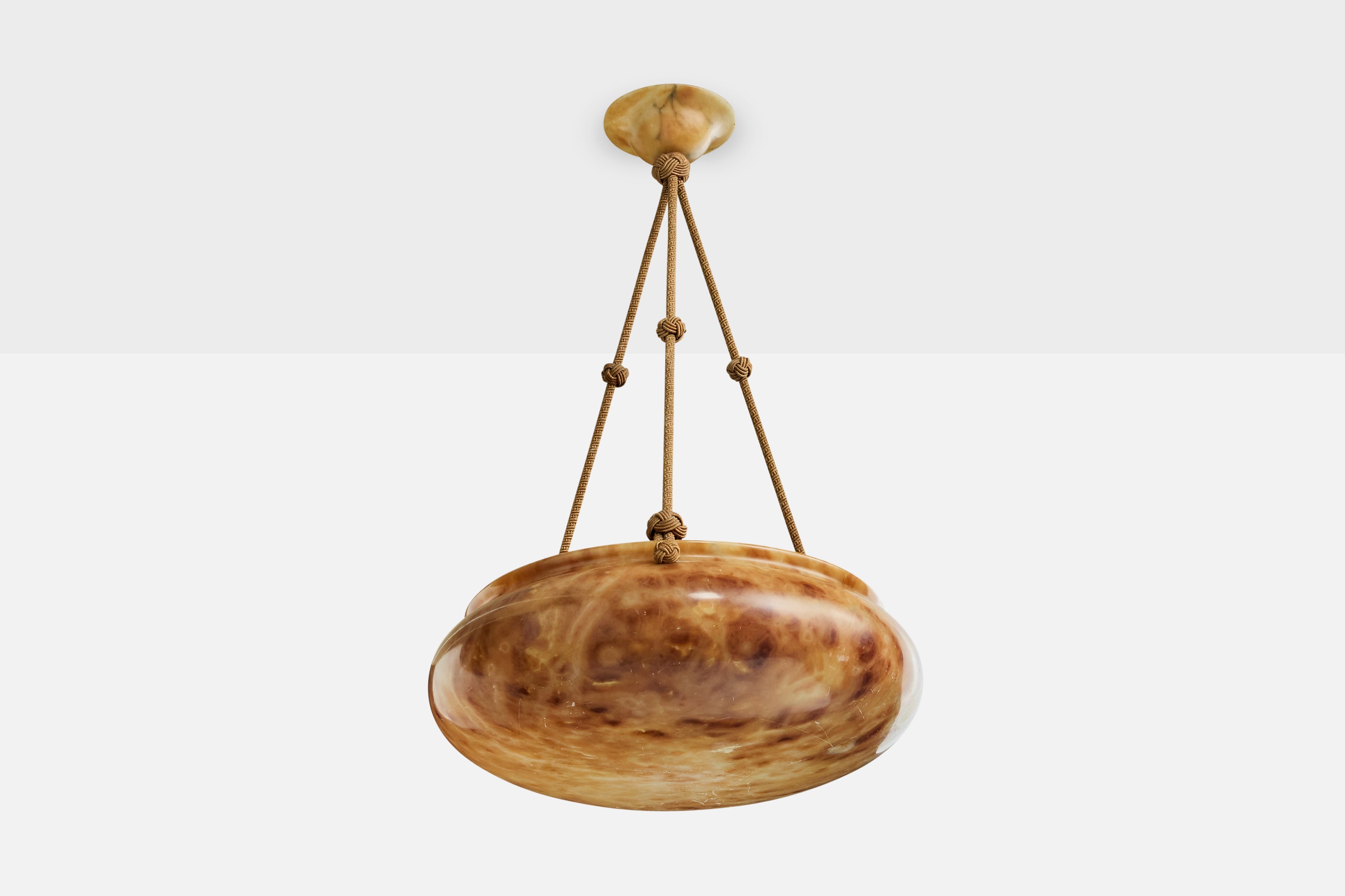 Swedish Designer, Pendant Light, Alabaster, Rope, Sweden, 1930s